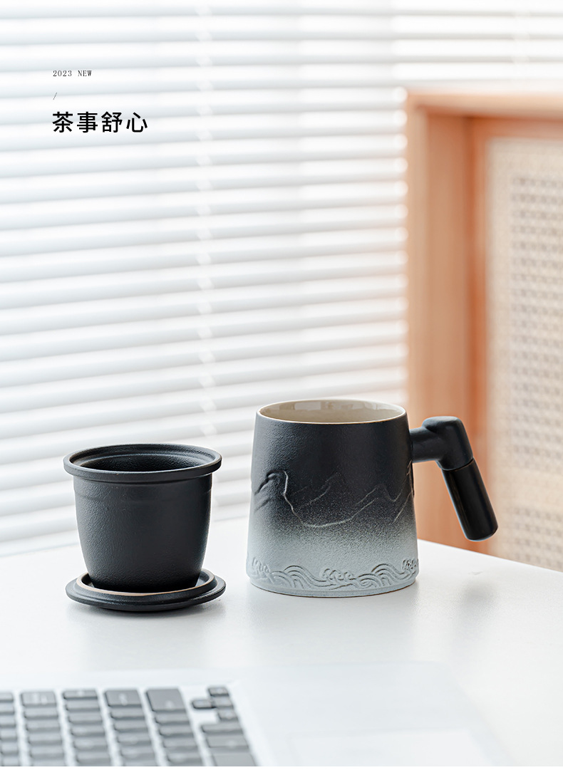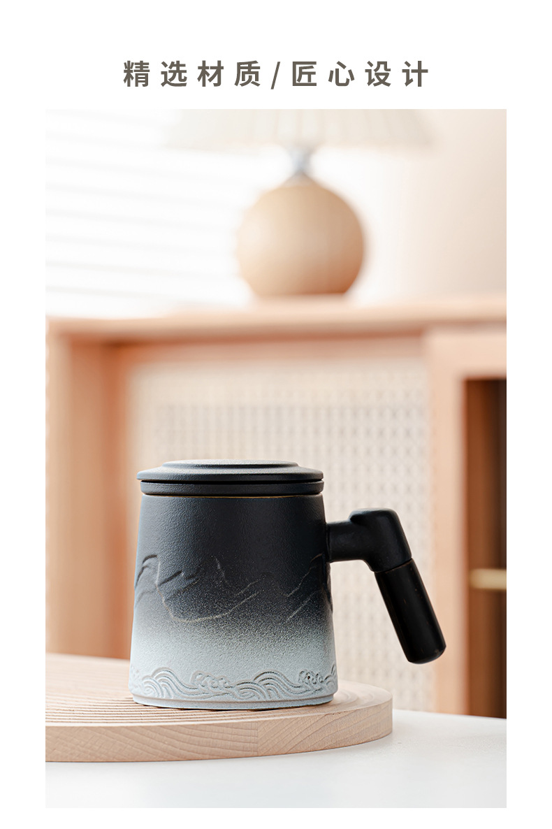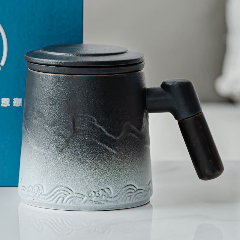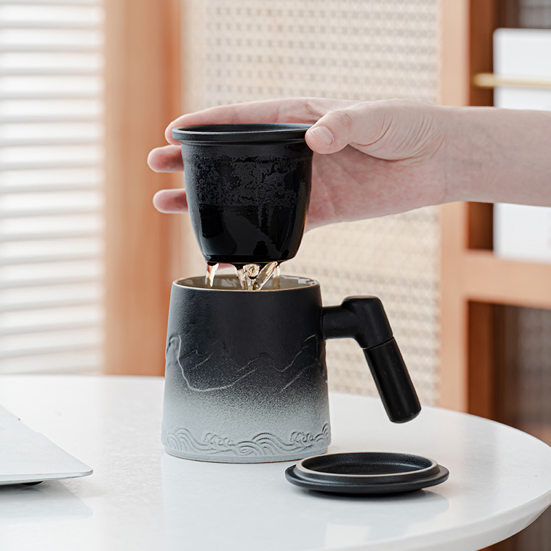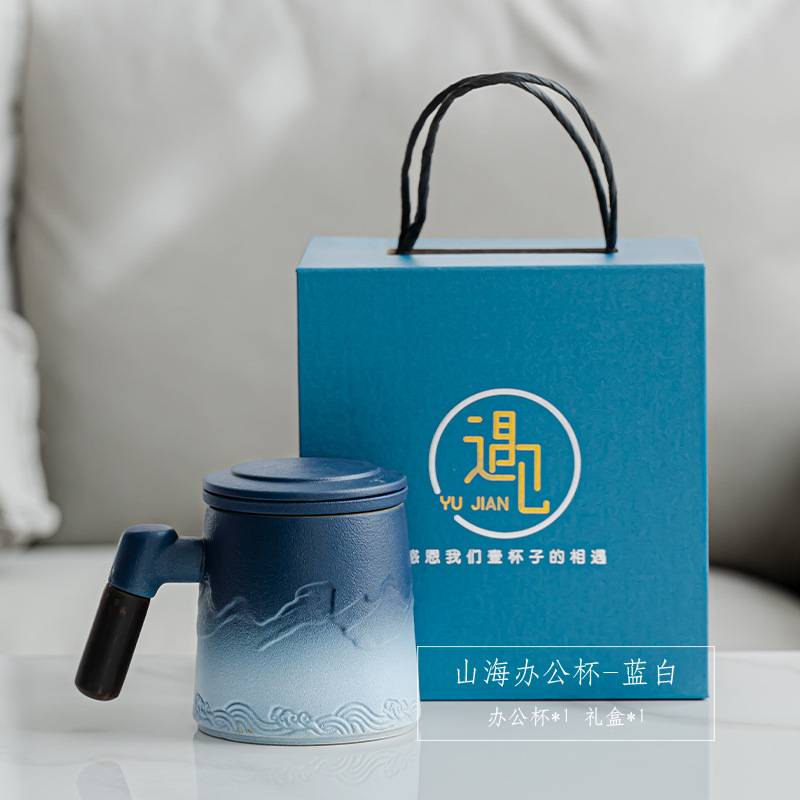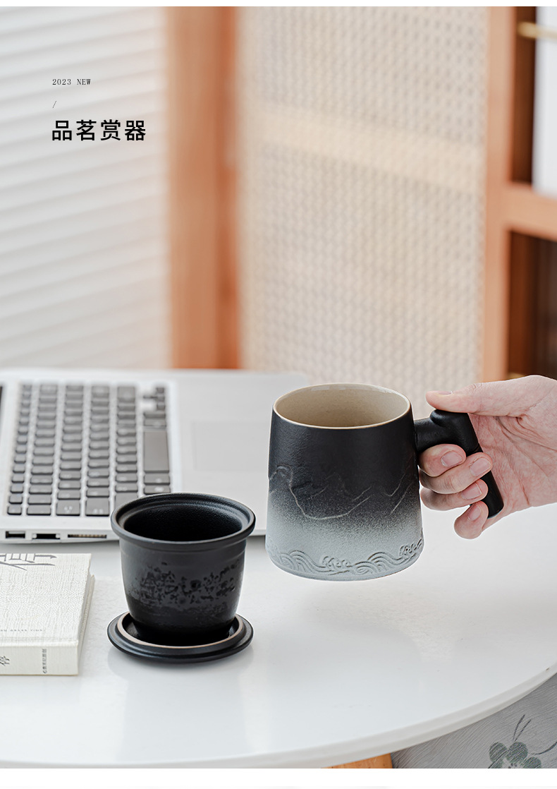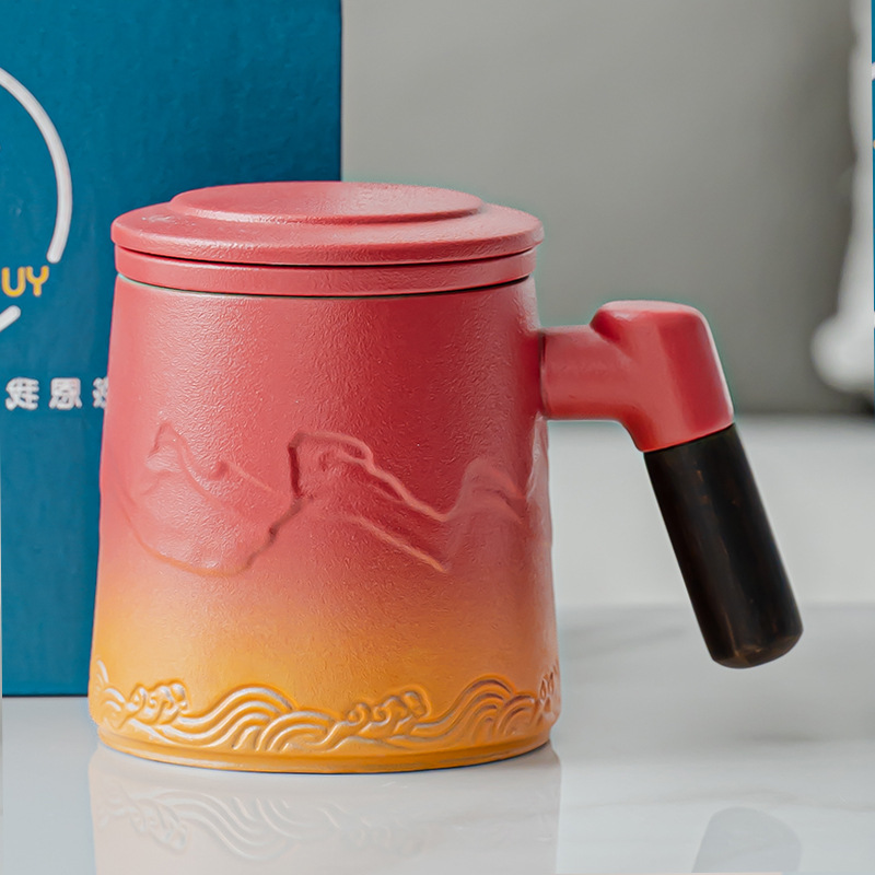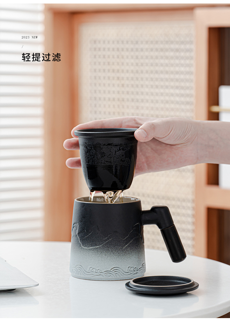 渐变色陶瓷马克杯办公杯陶瓷杯过滤泡茶杯马克杯茶水分离杯子带盖