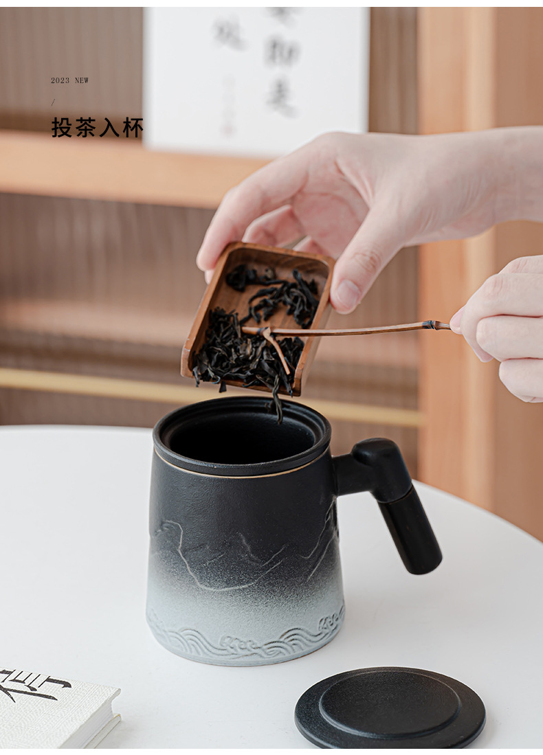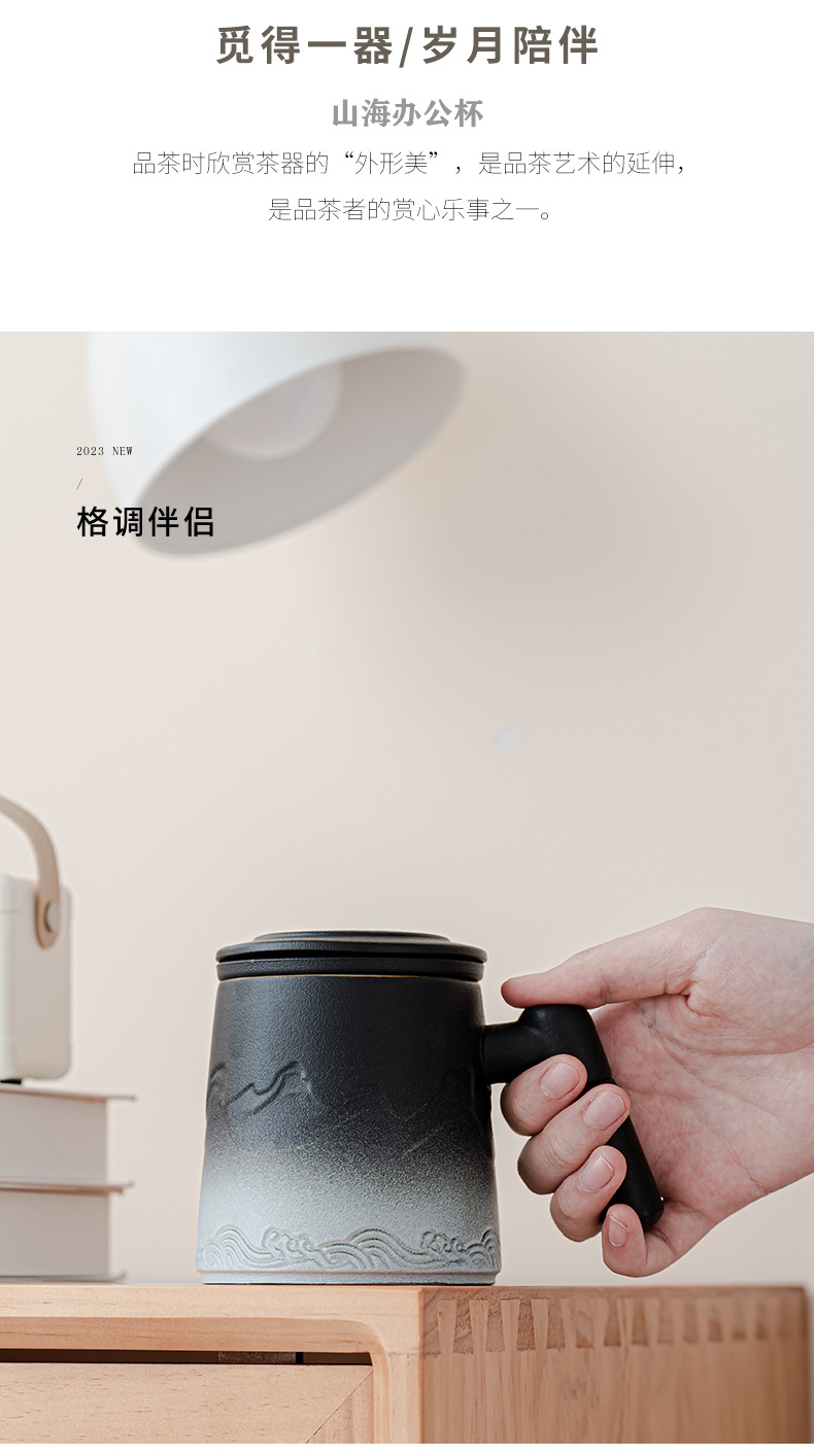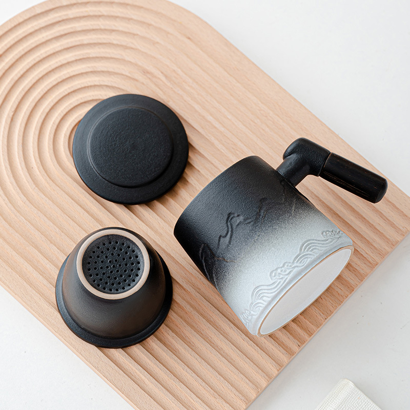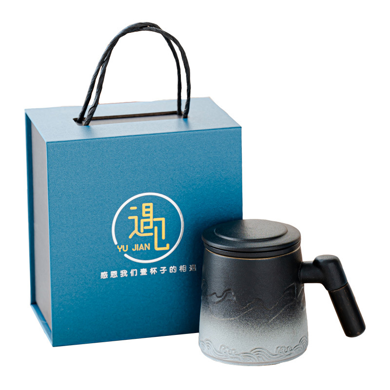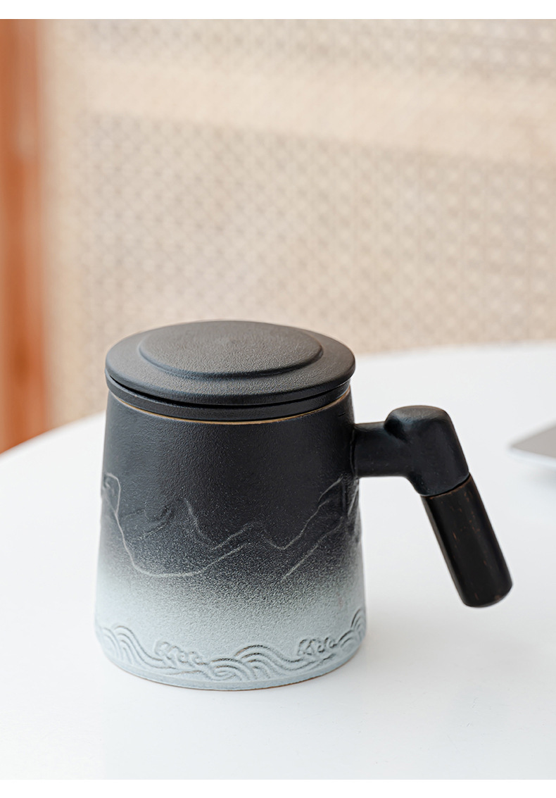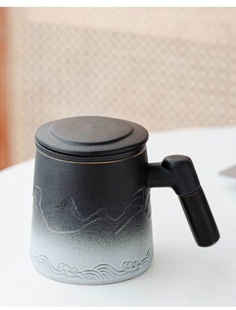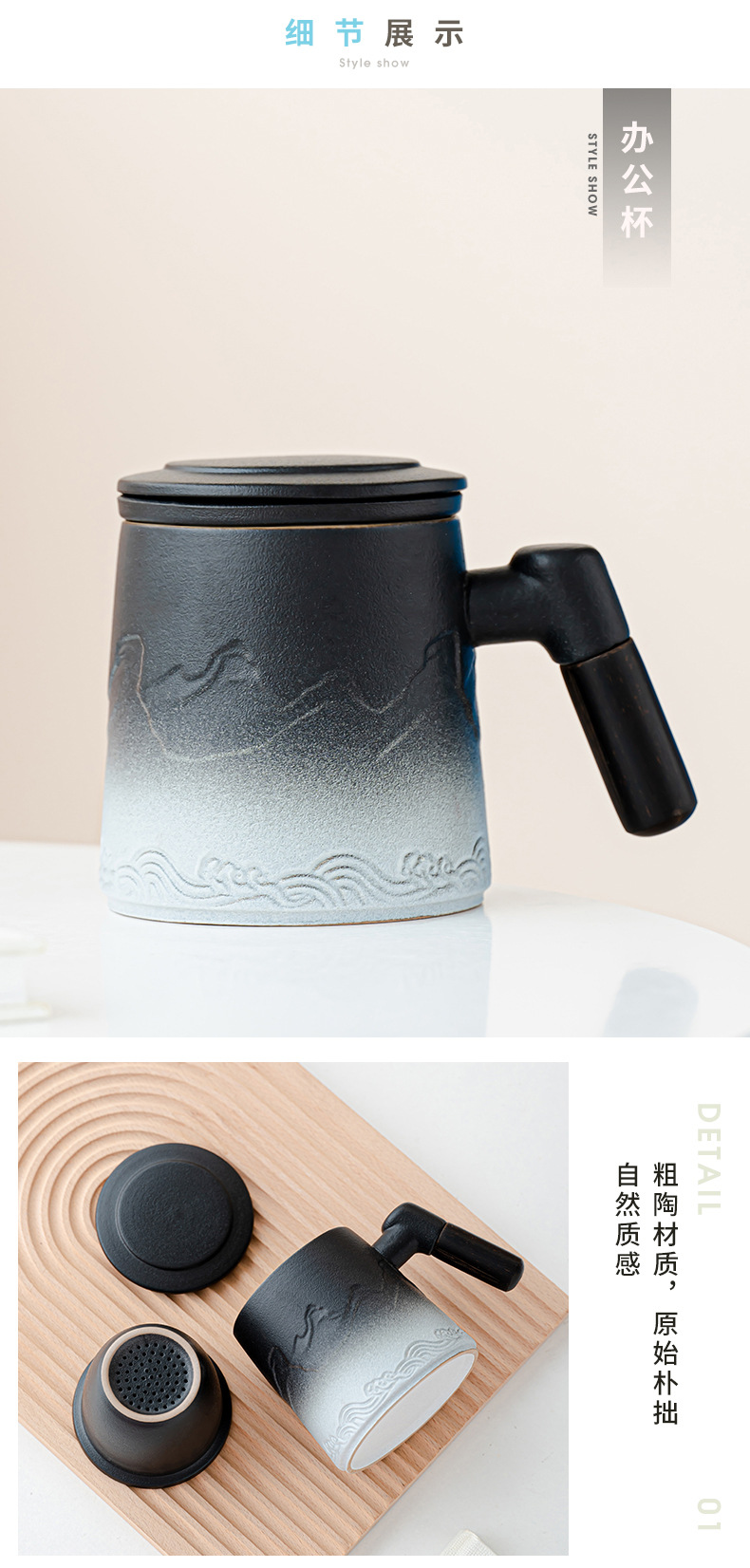 渐变色陶瓷马克杯办公杯陶瓷杯过滤泡茶杯马克杯茶水分离杯子带盖