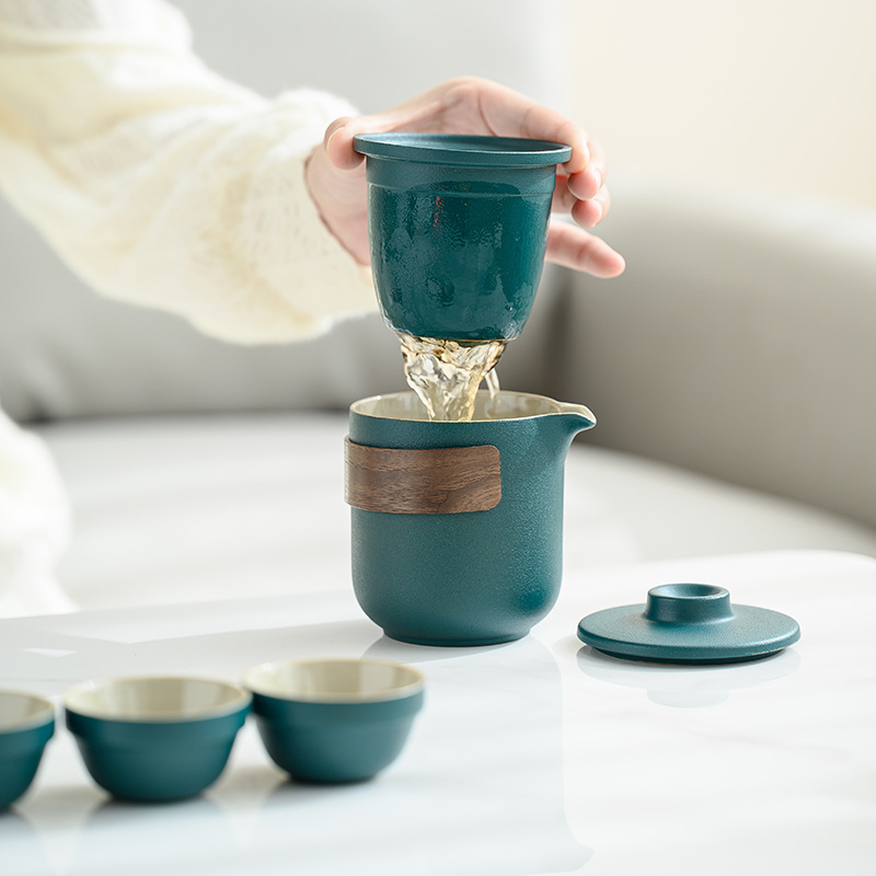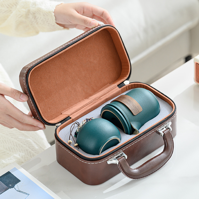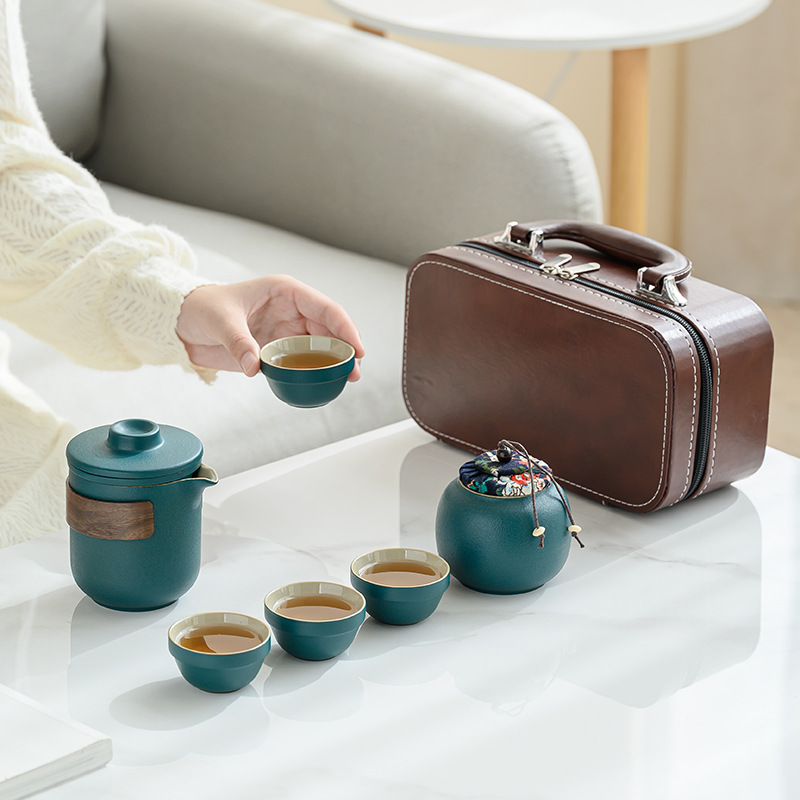 旅行茶具套装带茶叶罐陶瓷快客杯家用简约便携一壶二杯四杯随身泡