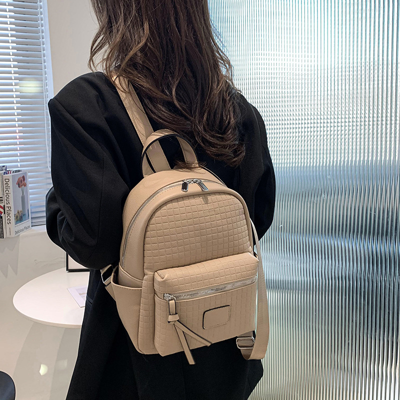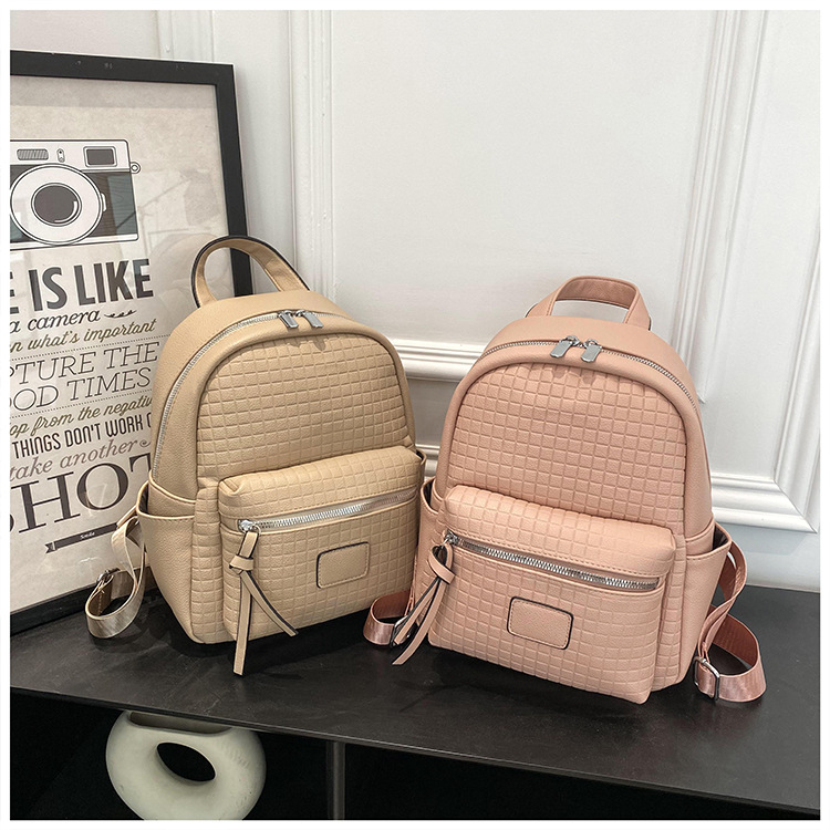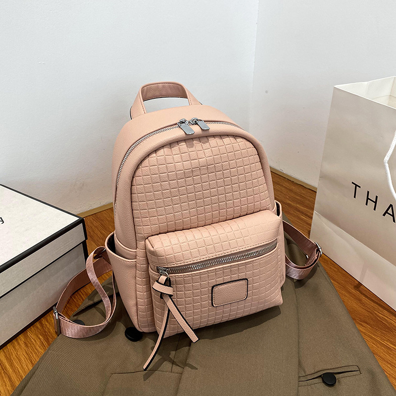 纯色休闲包女新款时尚简约清新背包潮流轻便双肩包