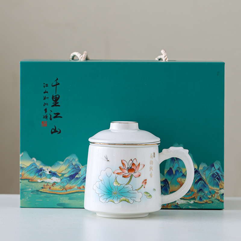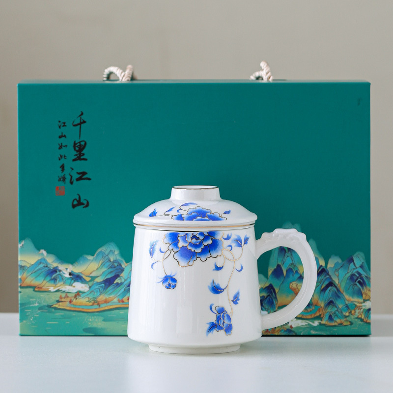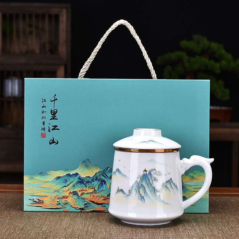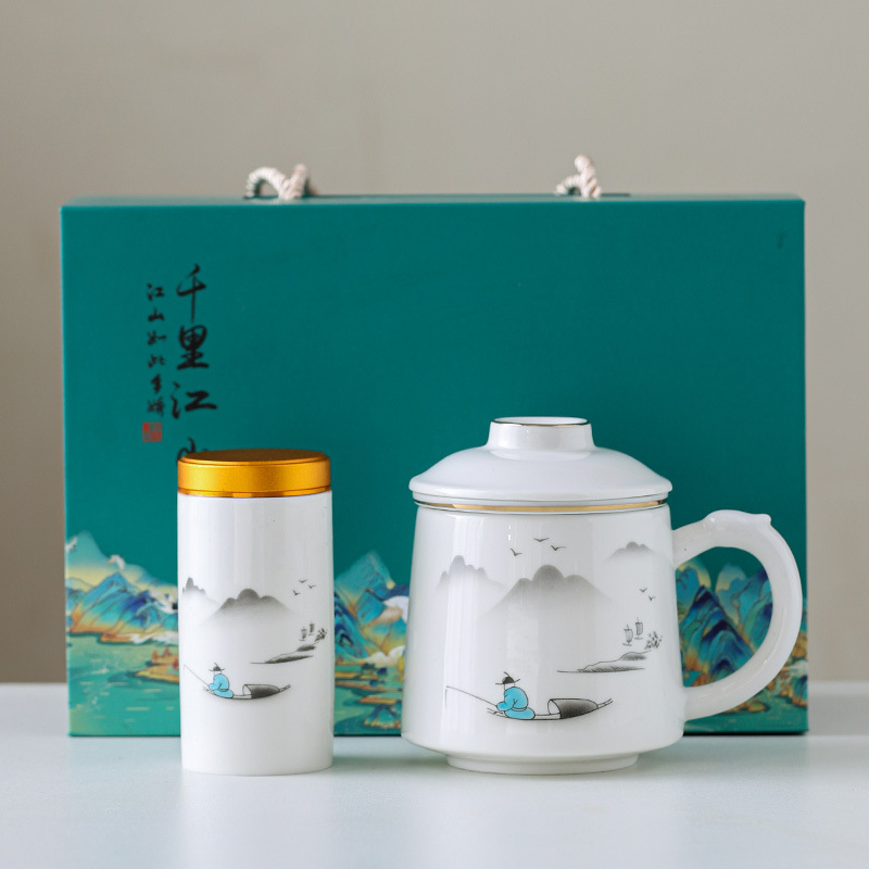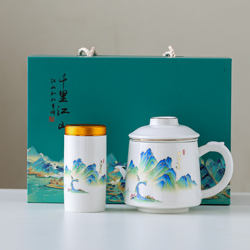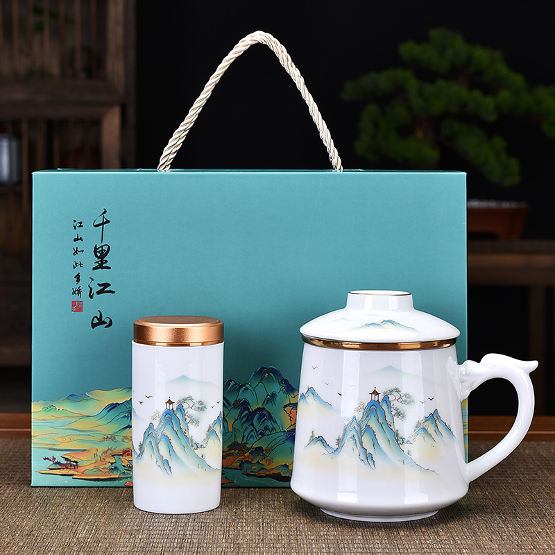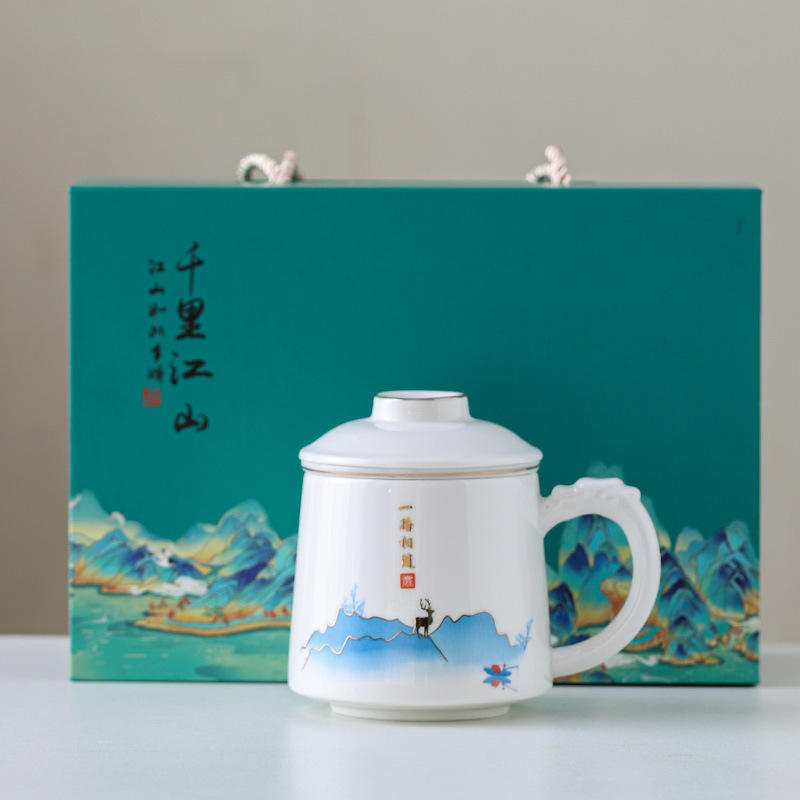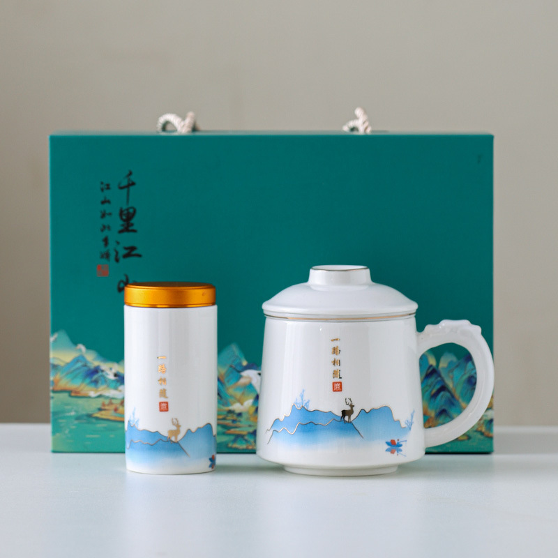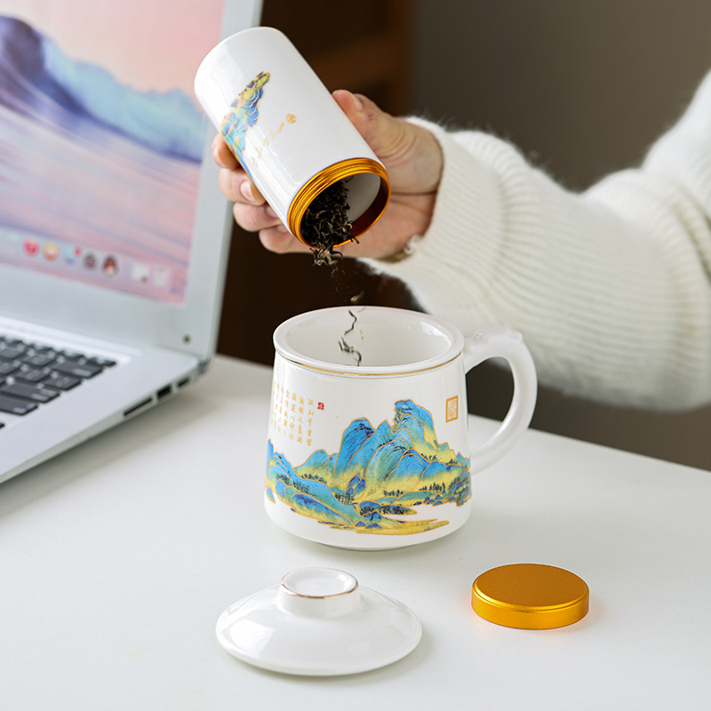 茶水分离杯套装陶瓷办公杯杯子马克杯含内胆商务活动伴手礼品水杯