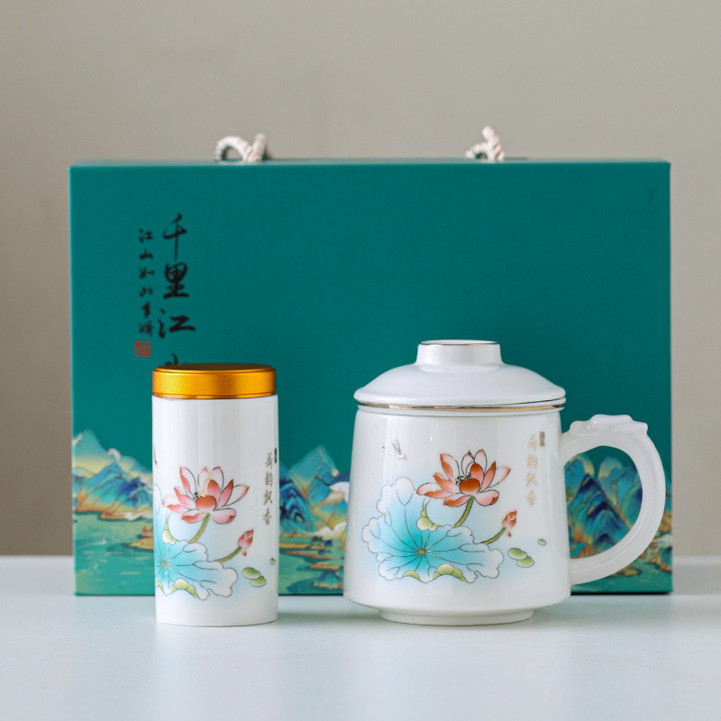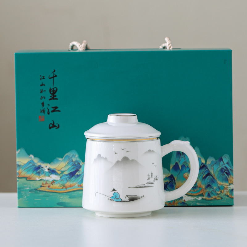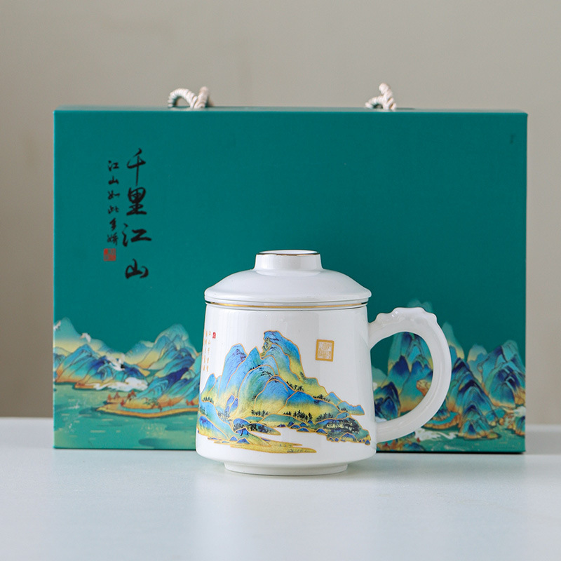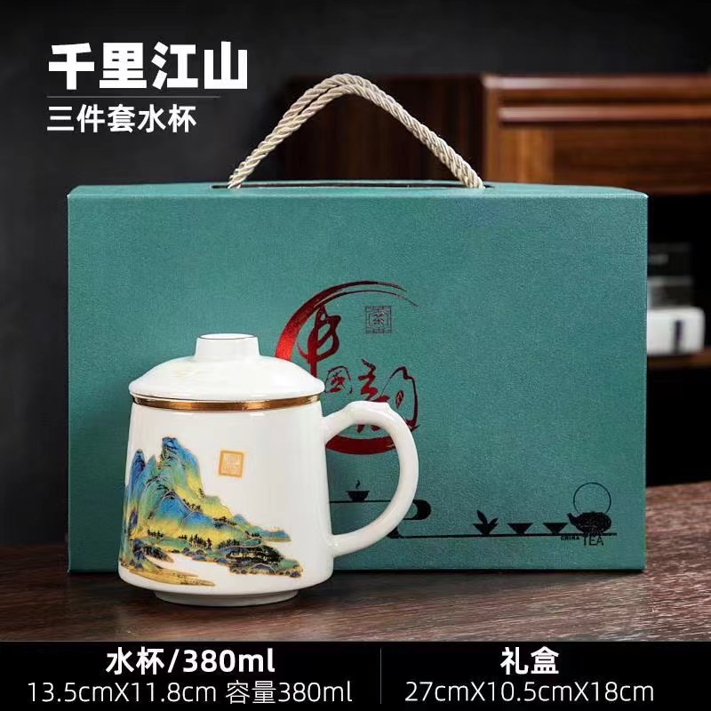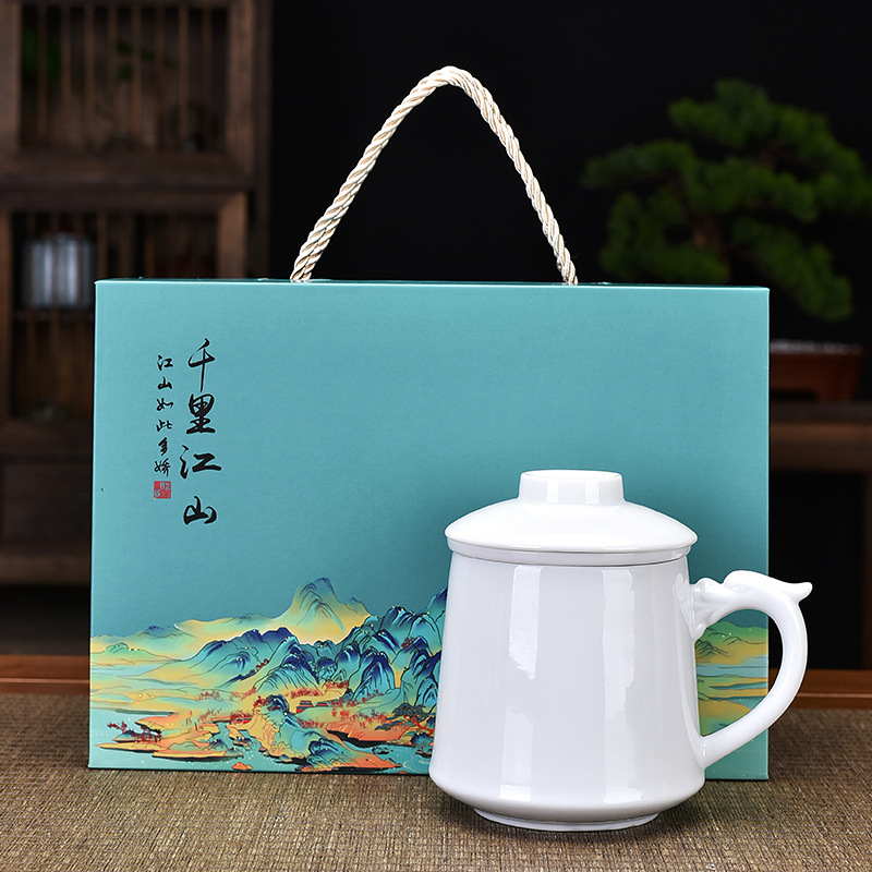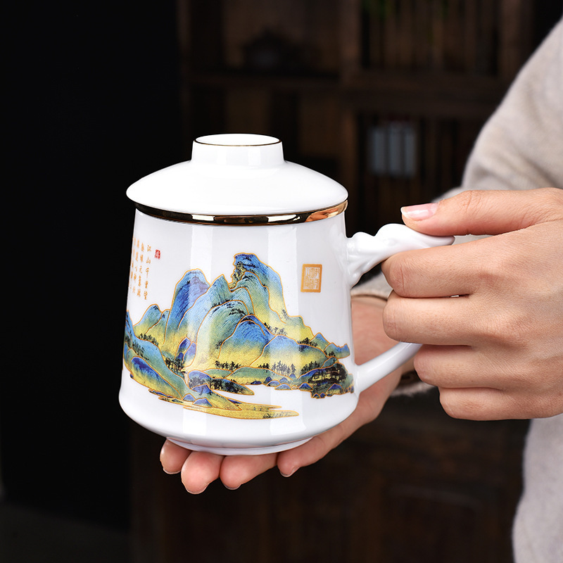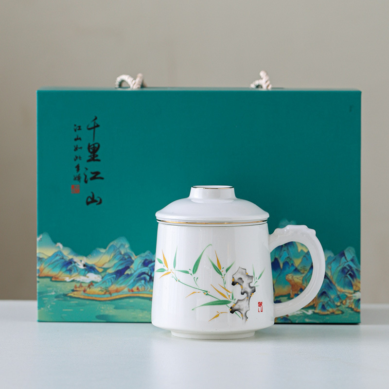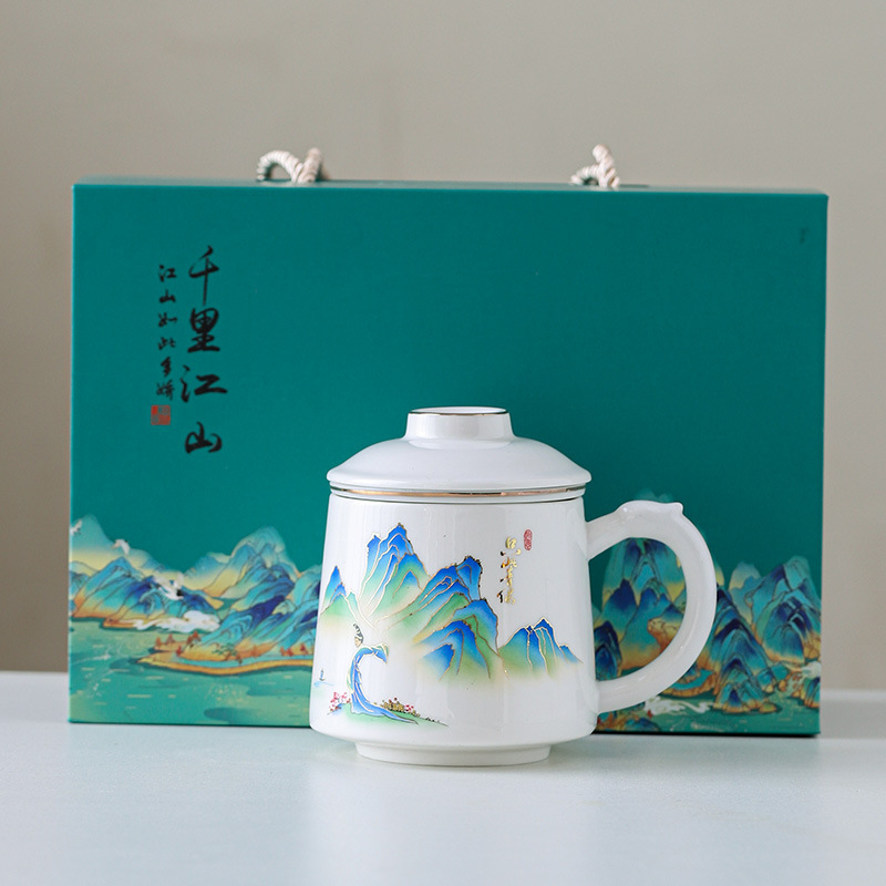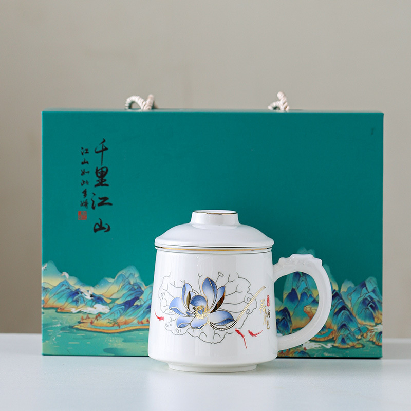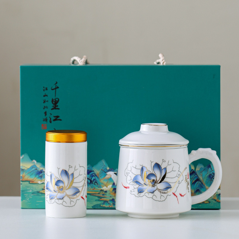茶水分离杯套装陶瓷办公杯杯子马克杯含内胆商务活动伴手礼品水杯
