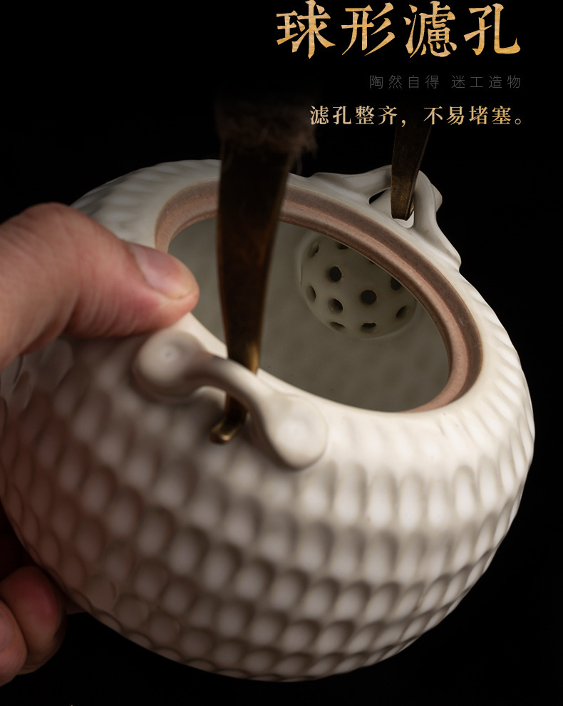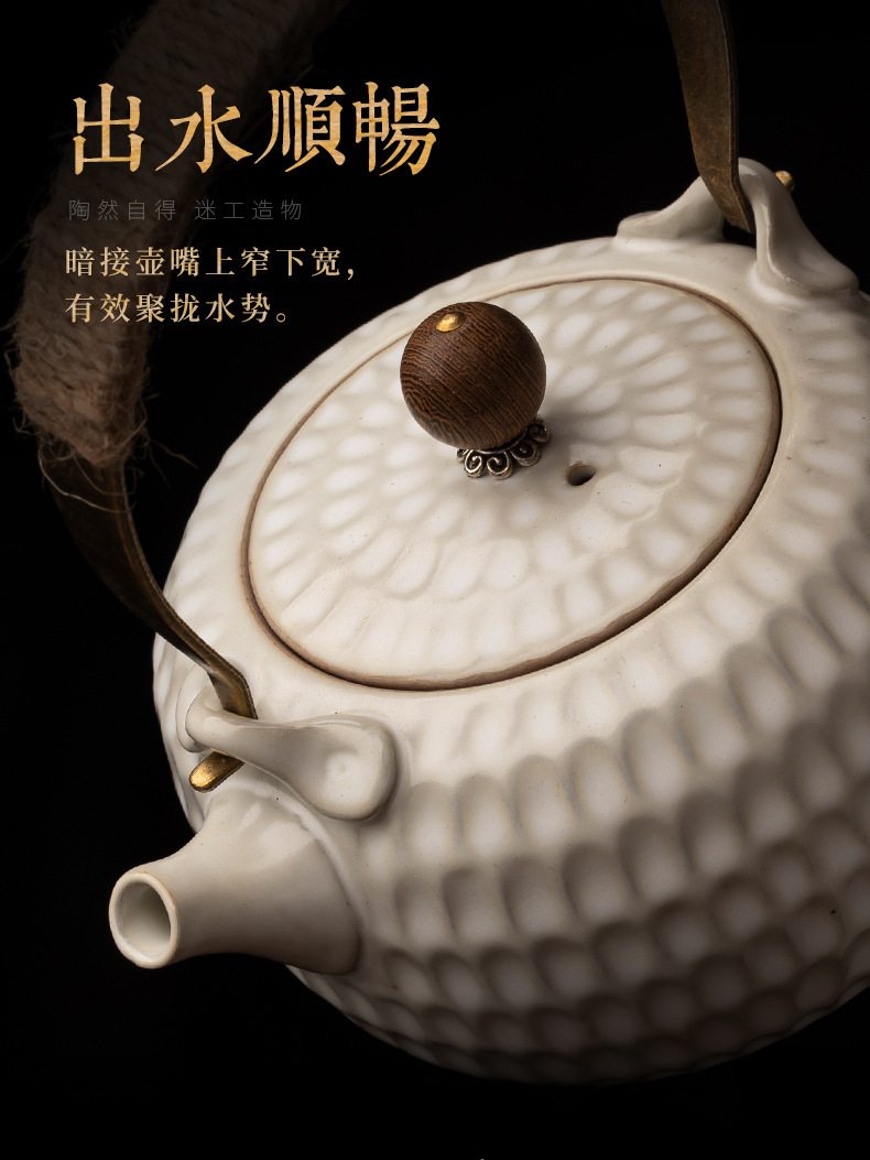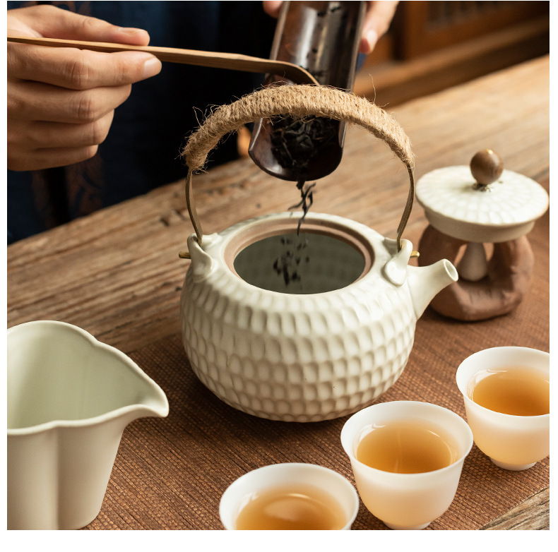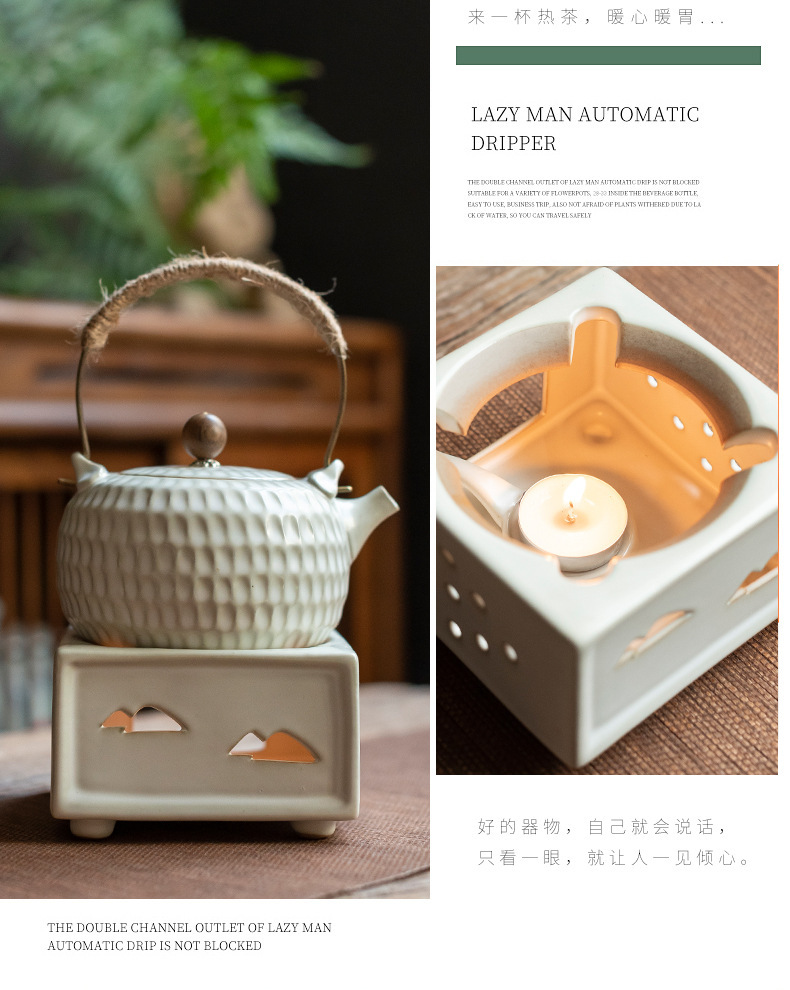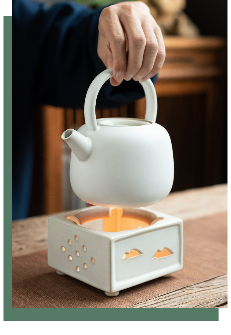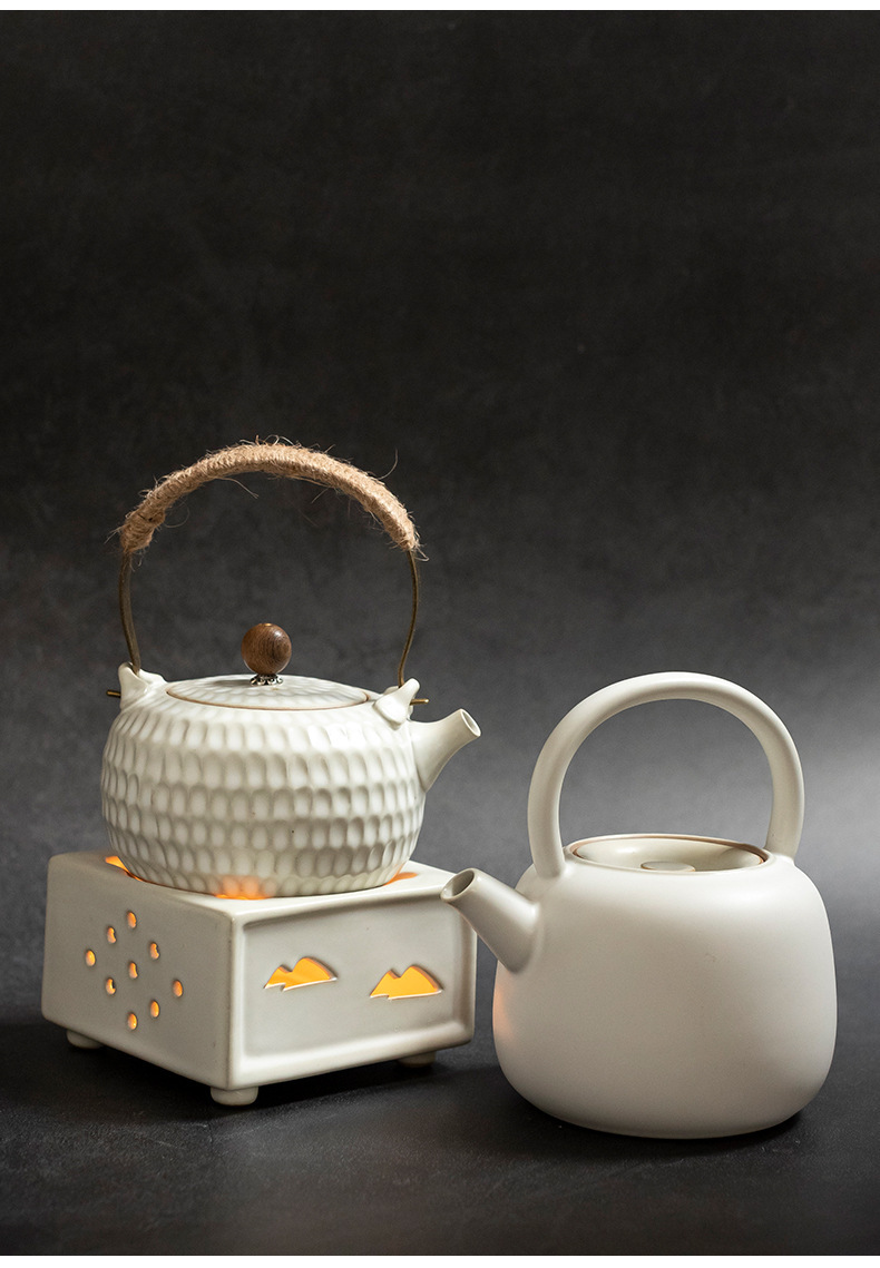 仿古月白日式蜡烛煮茶温茶炉轻奢花茶果茶泡茶器耐热锤纹提梁壶