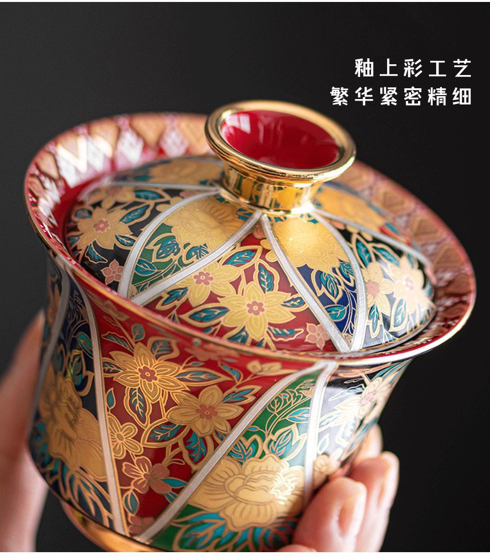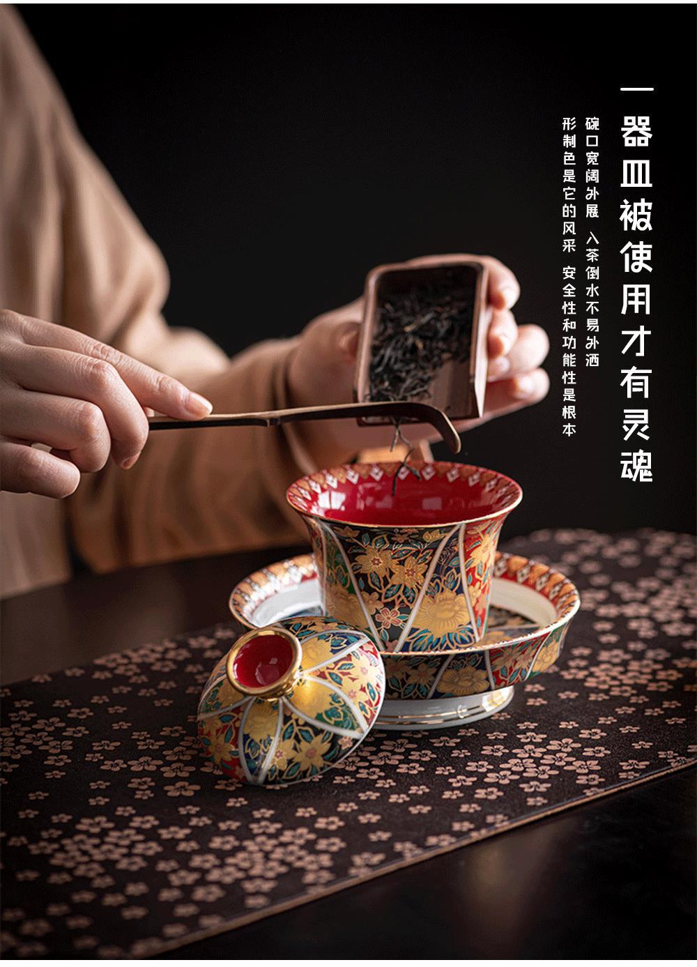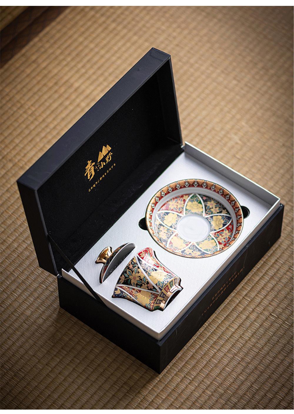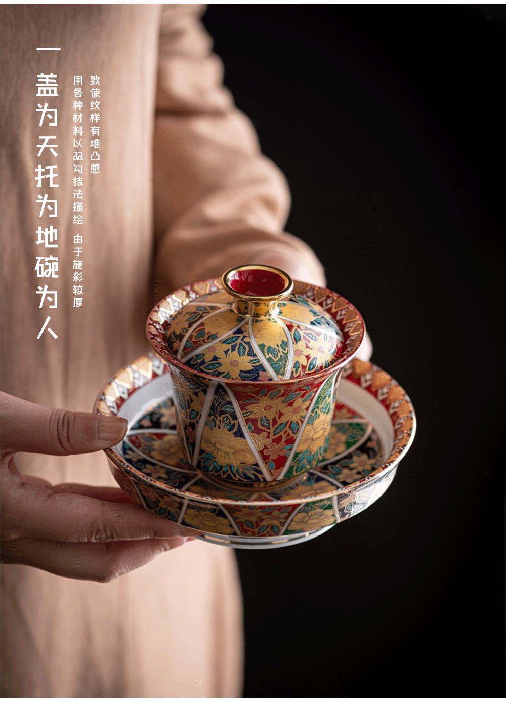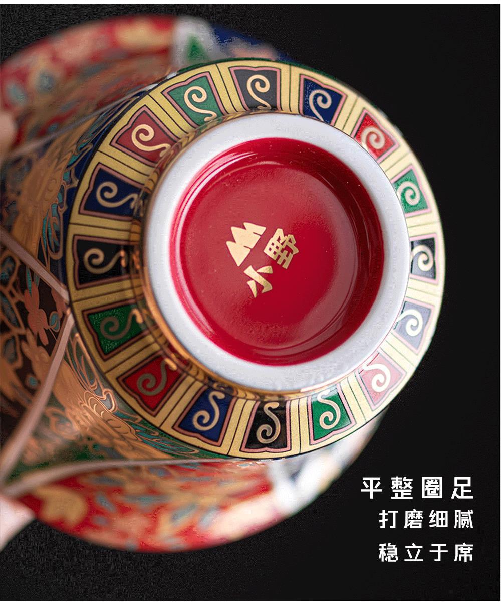 青山小野珐琅彩精工扒花轻奢茶杯盖碗宫廷风主人杯ml圆形欧式