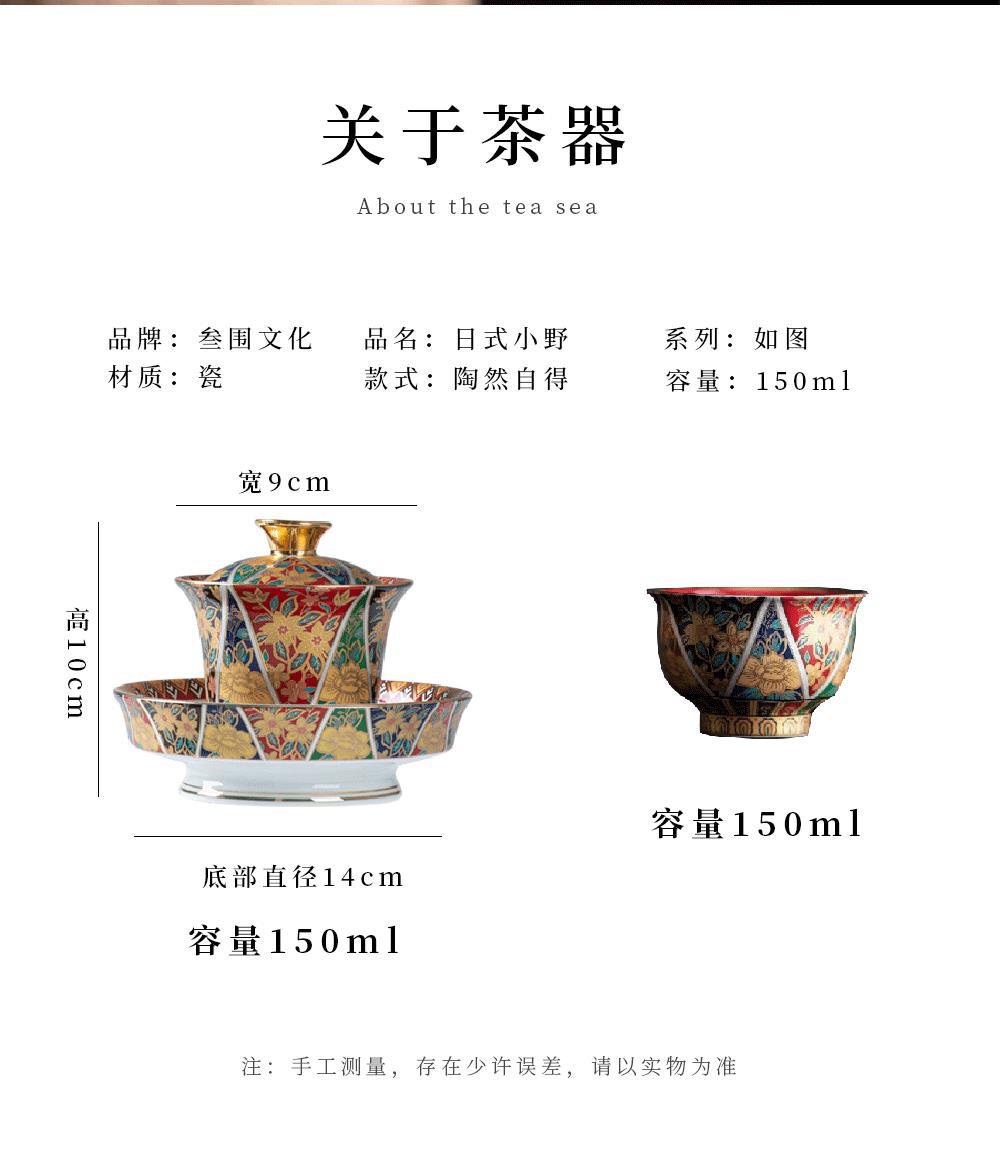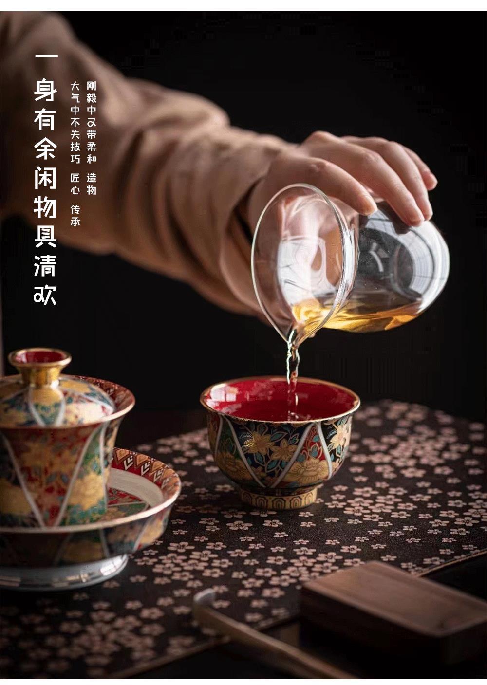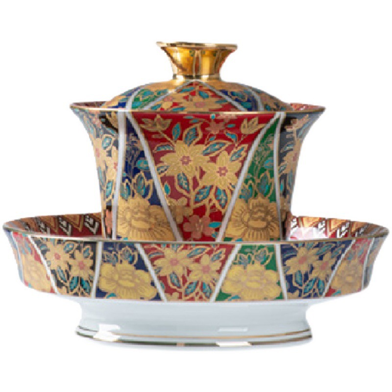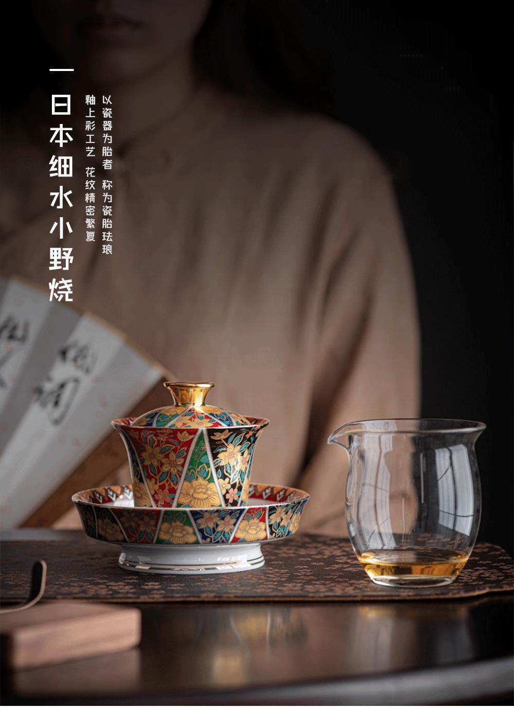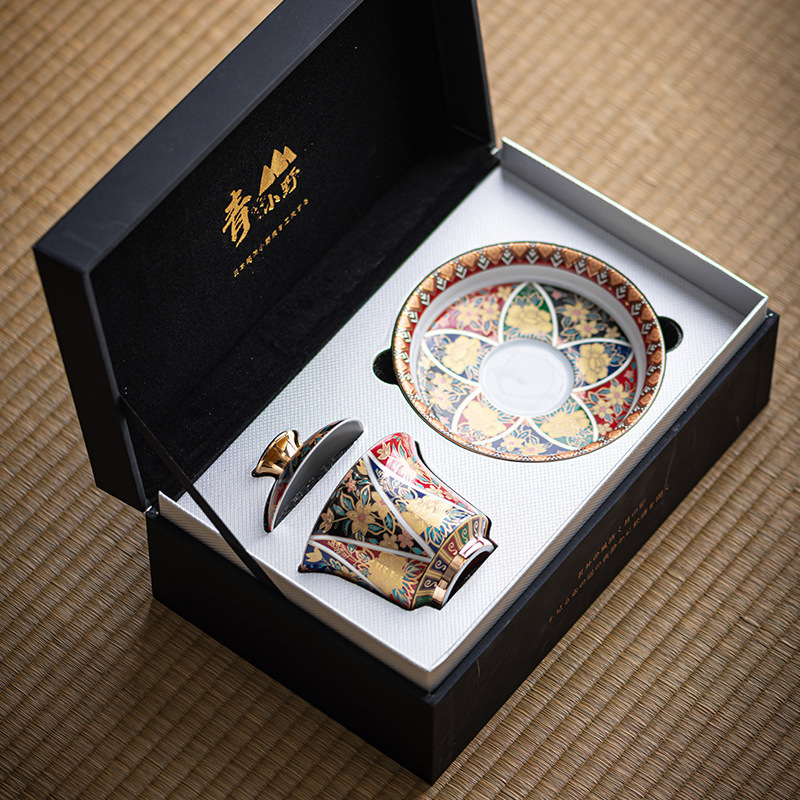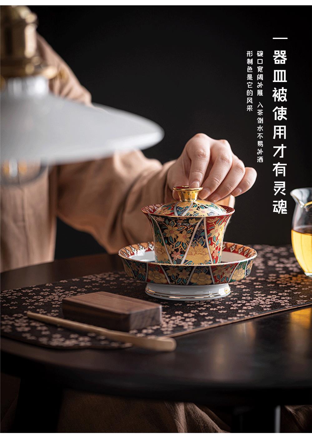青山小野珐琅彩精工扒花轻奢茶杯盖碗宫廷风主人杯ml圆形欧式