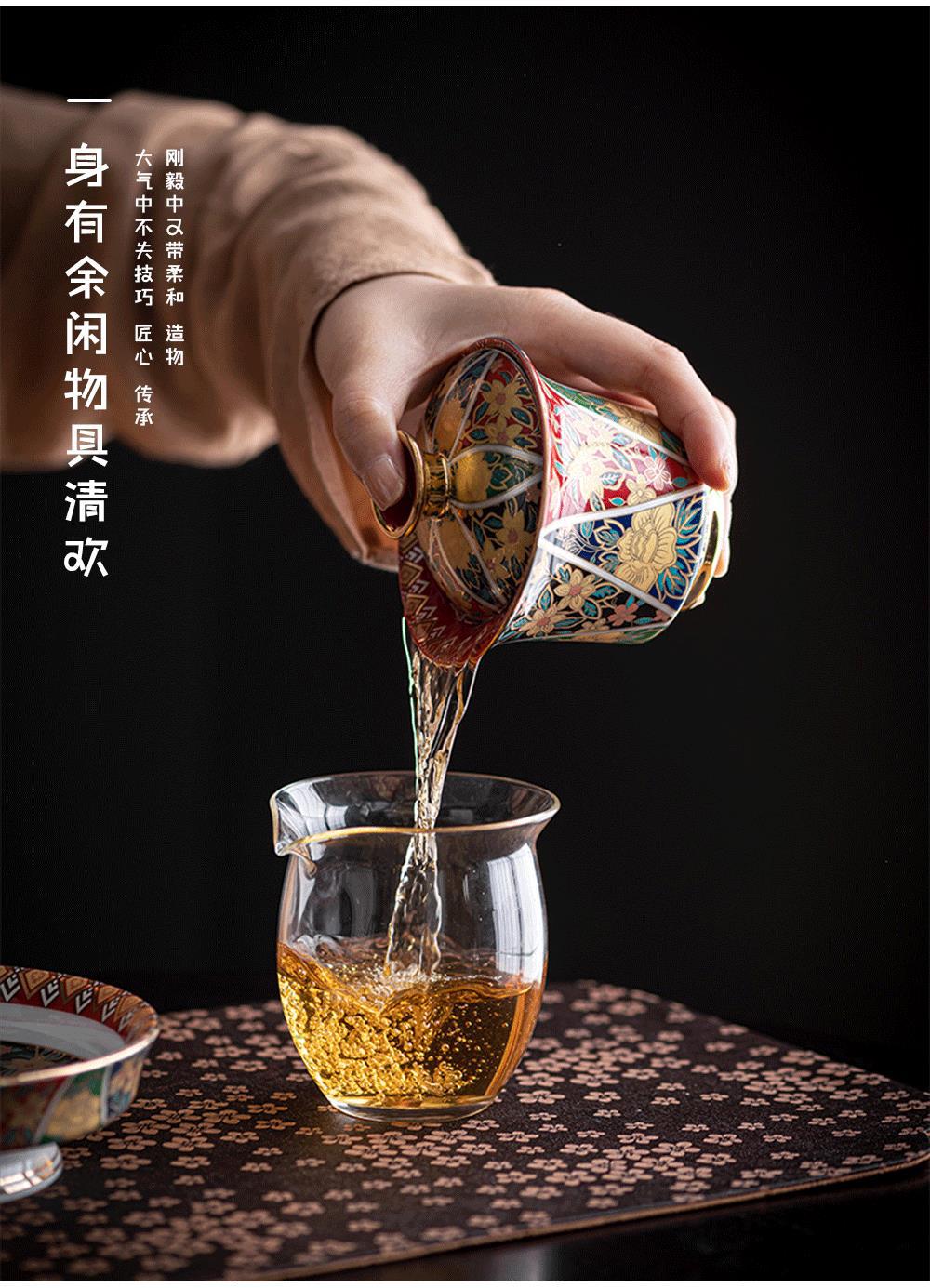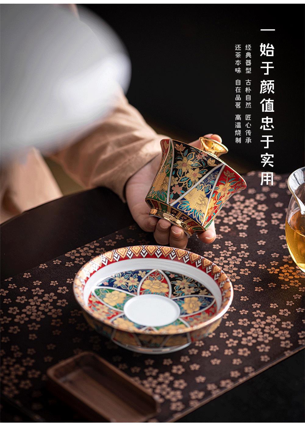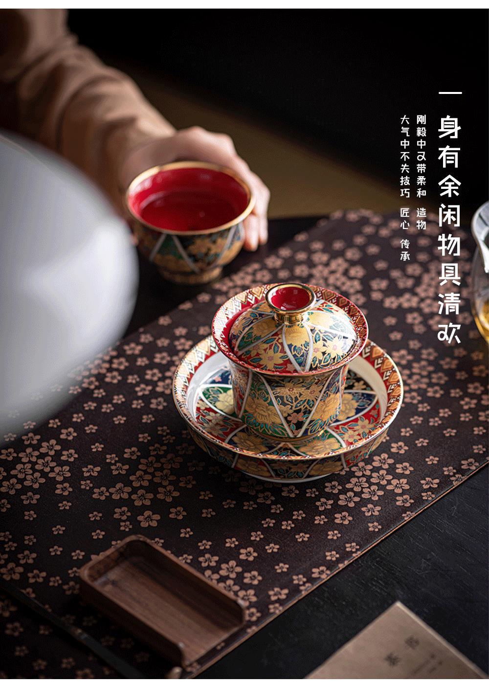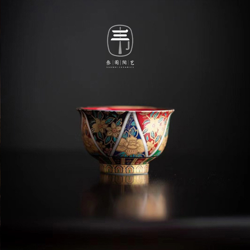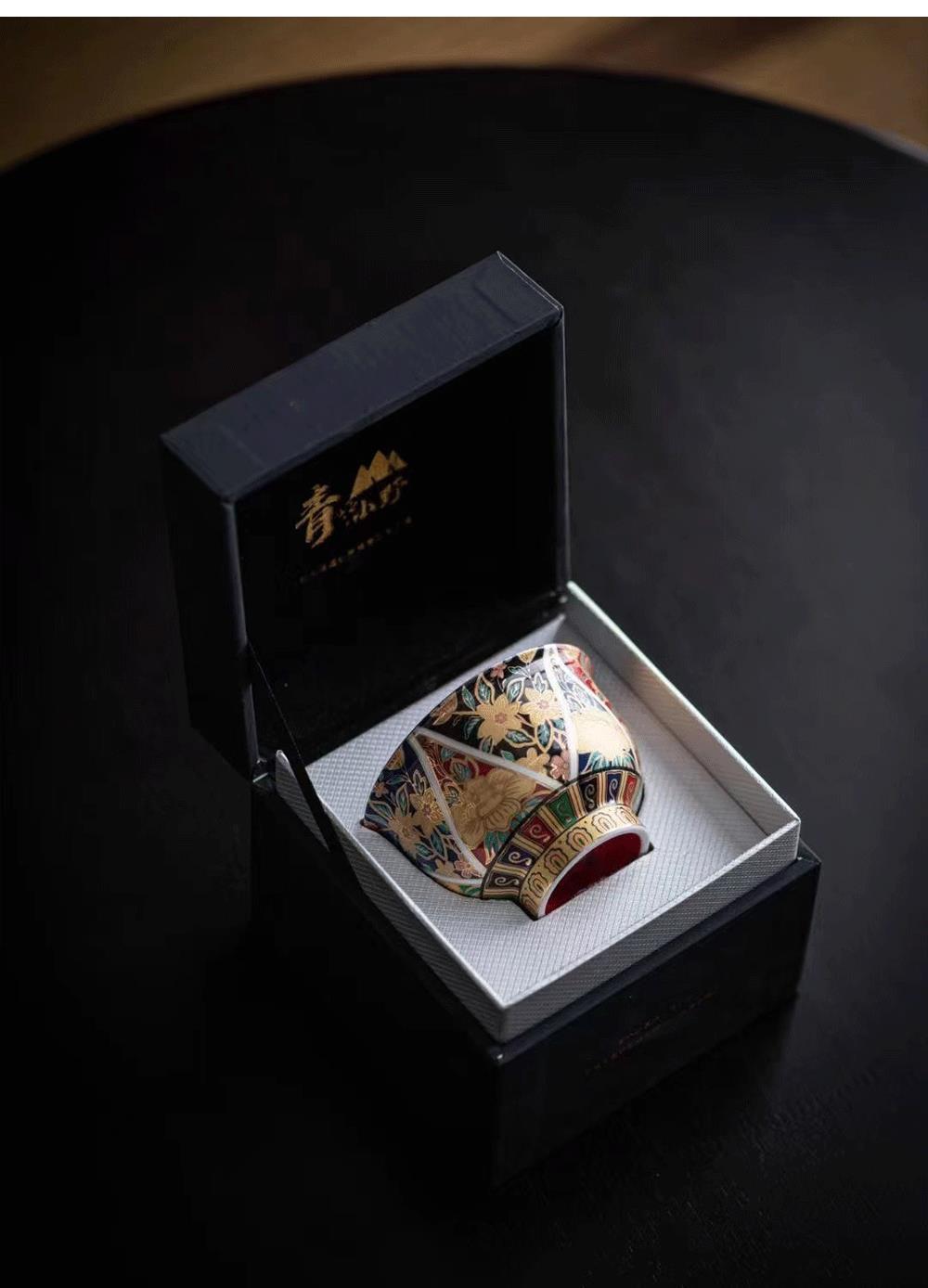 青山小野珐琅彩精工扒花轻奢茶杯盖碗宫廷风主人杯ml圆形欧式
