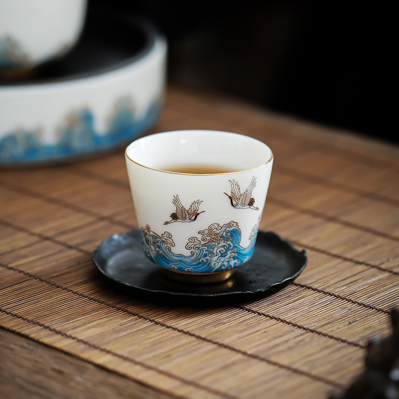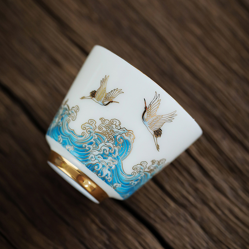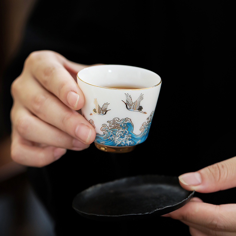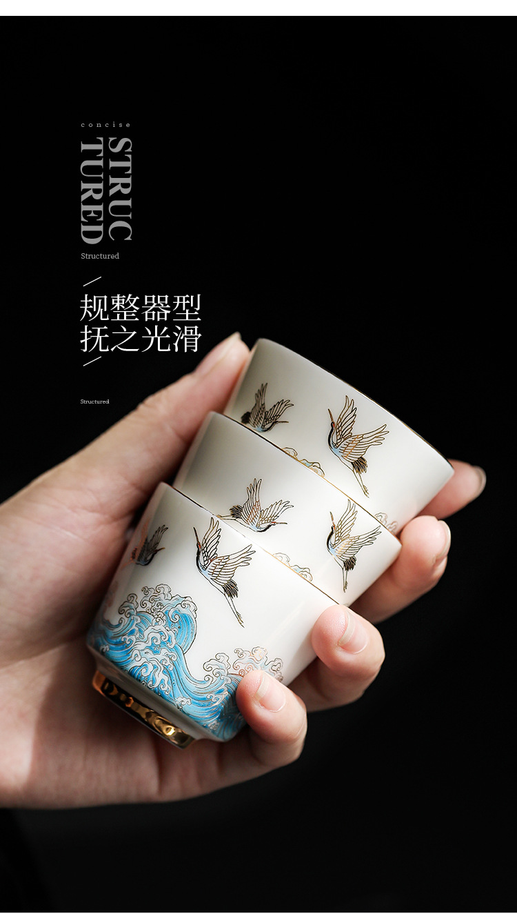 陶瓷茶杯羊脂玉品茗杯家用功夫茶具喝待客单个高白瓷主人杯子轻奢