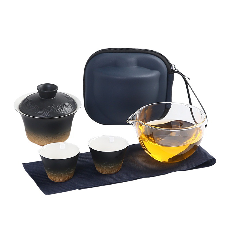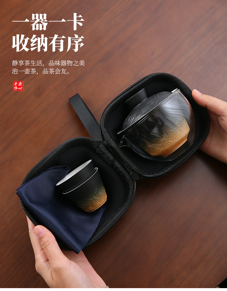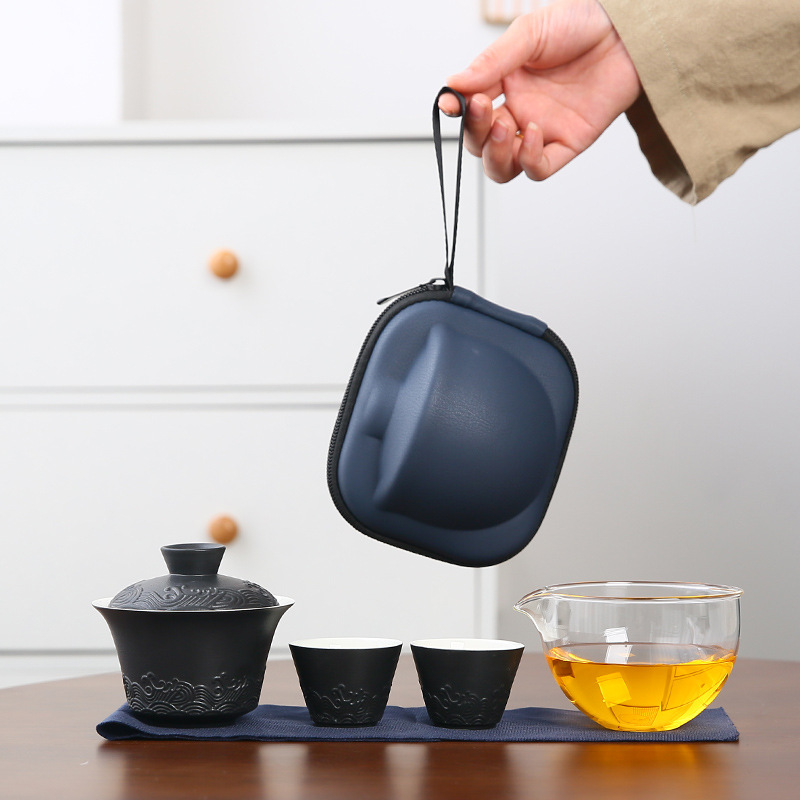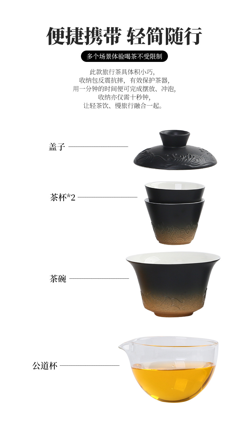陶瓷复古快客杯一壶两杯便携旅行茶具户外露营泡茶具