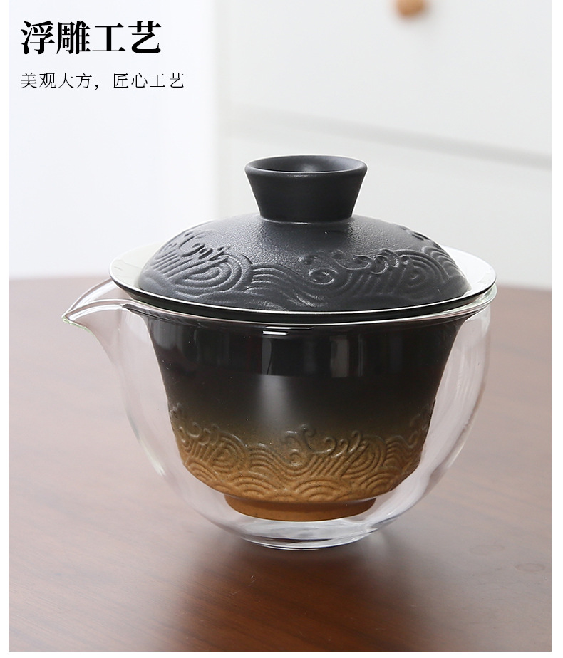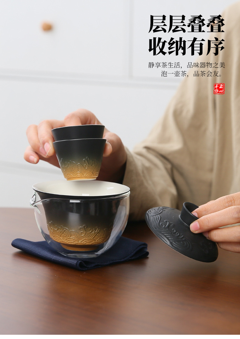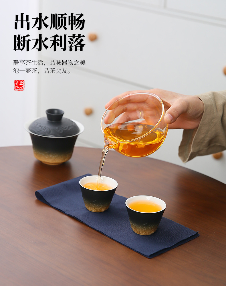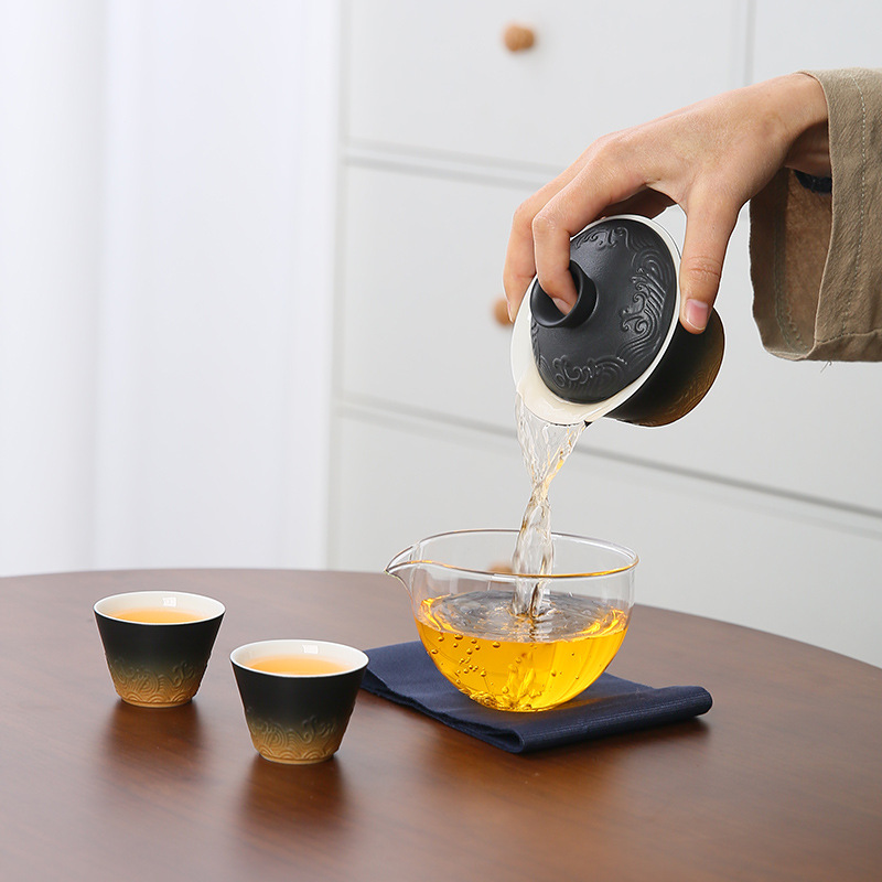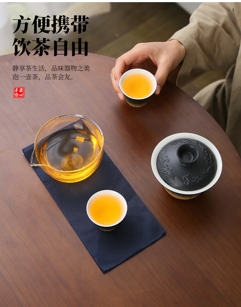 陶瓷复古快客杯一壶两杯便携旅行茶具户外露营泡茶具