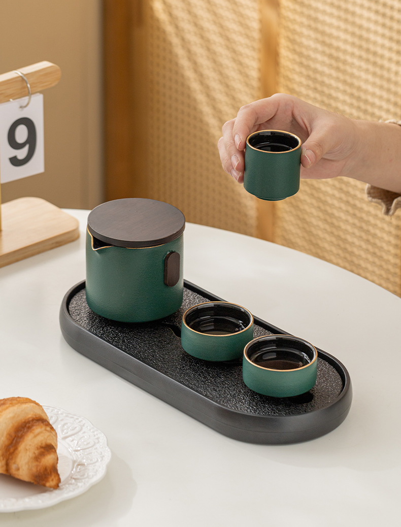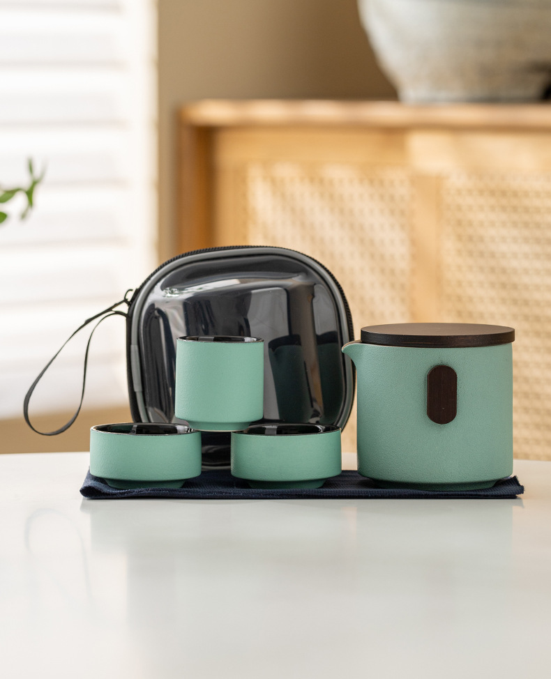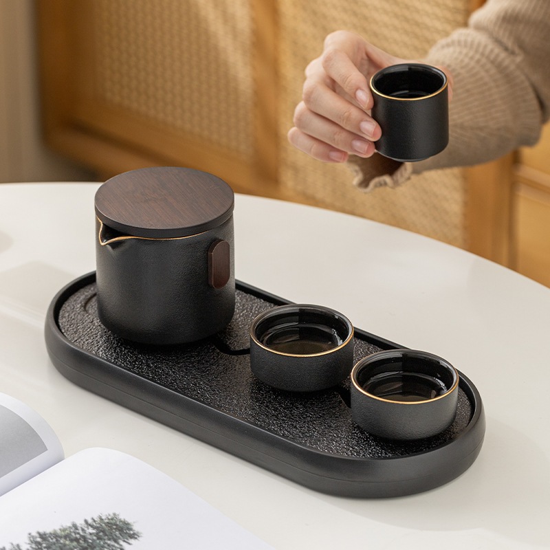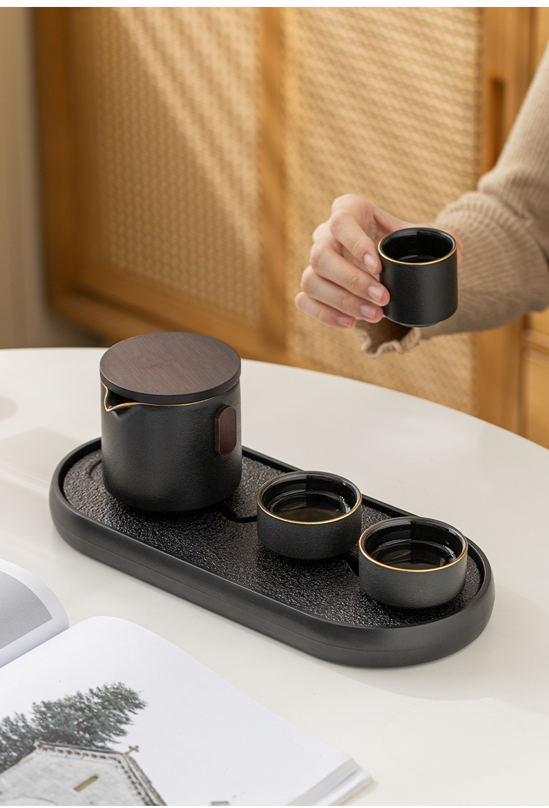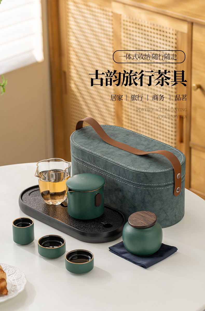 旅行茶具茶杯套装陶瓷快客杯车载户外露营便携式一壶三杯礼品定写