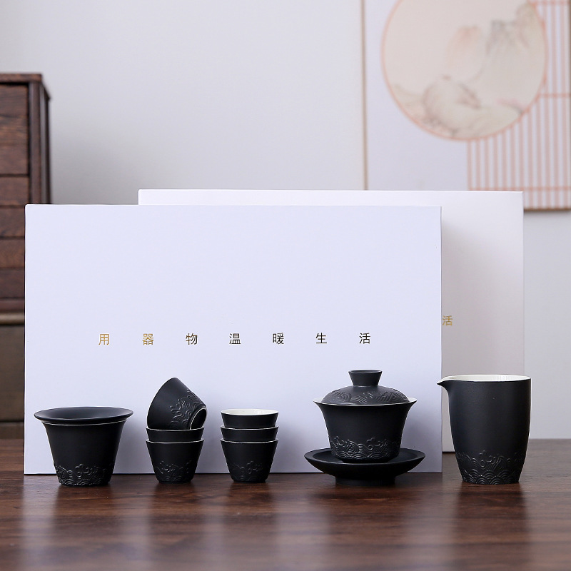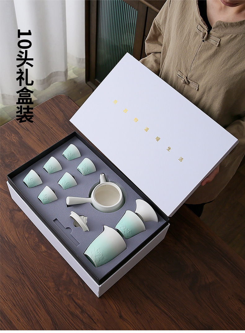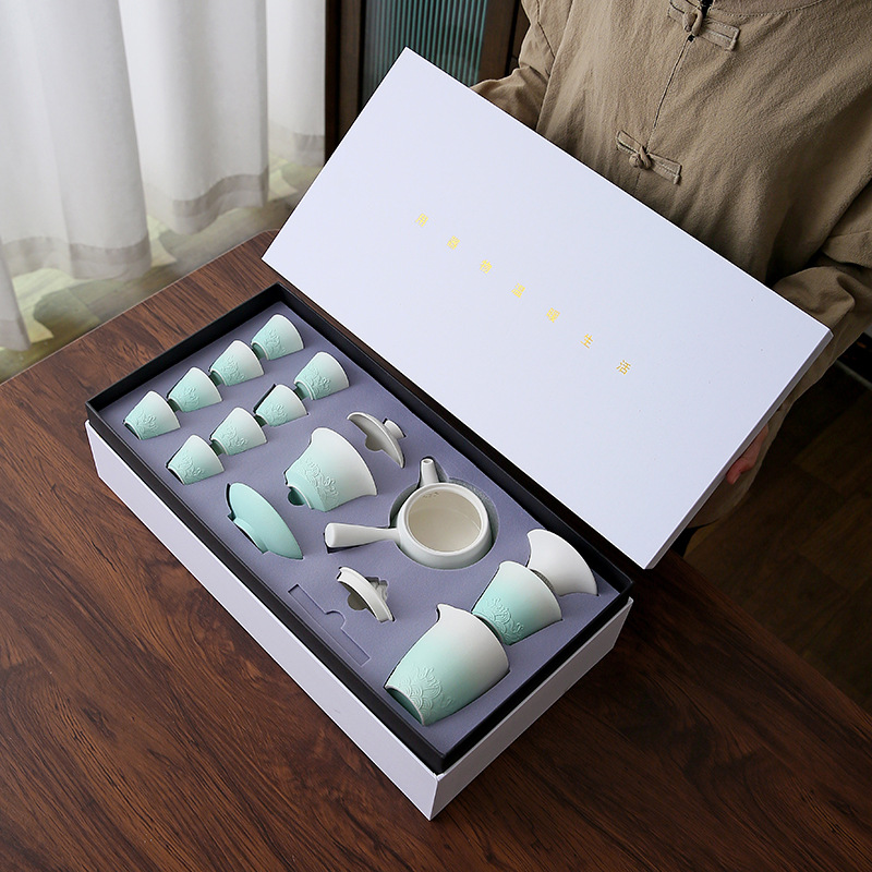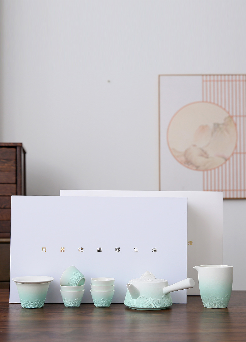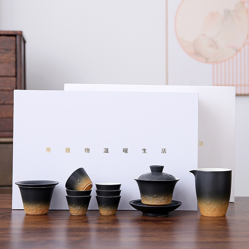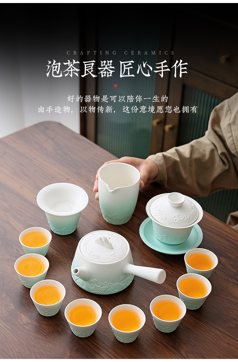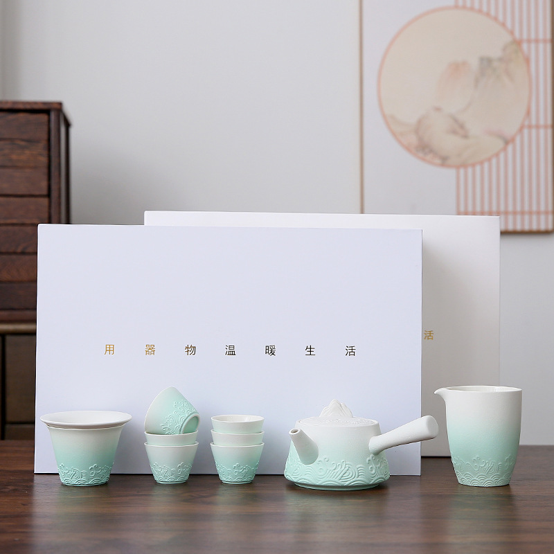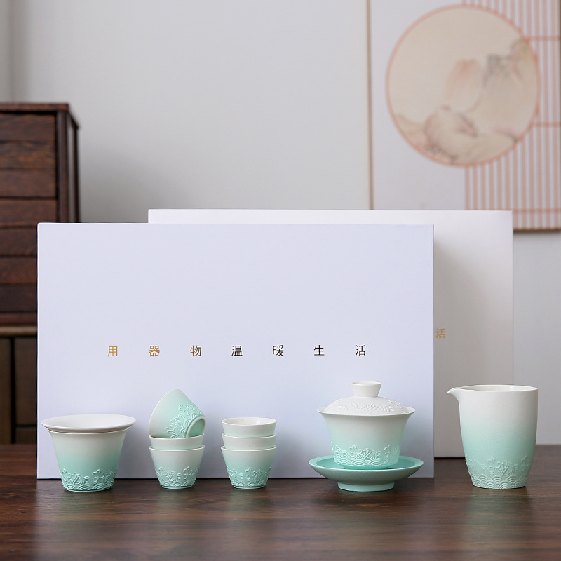 2024新款德化功夫茶具套装礼盒装盖碗测把套装整套路宝沧海渐变釉