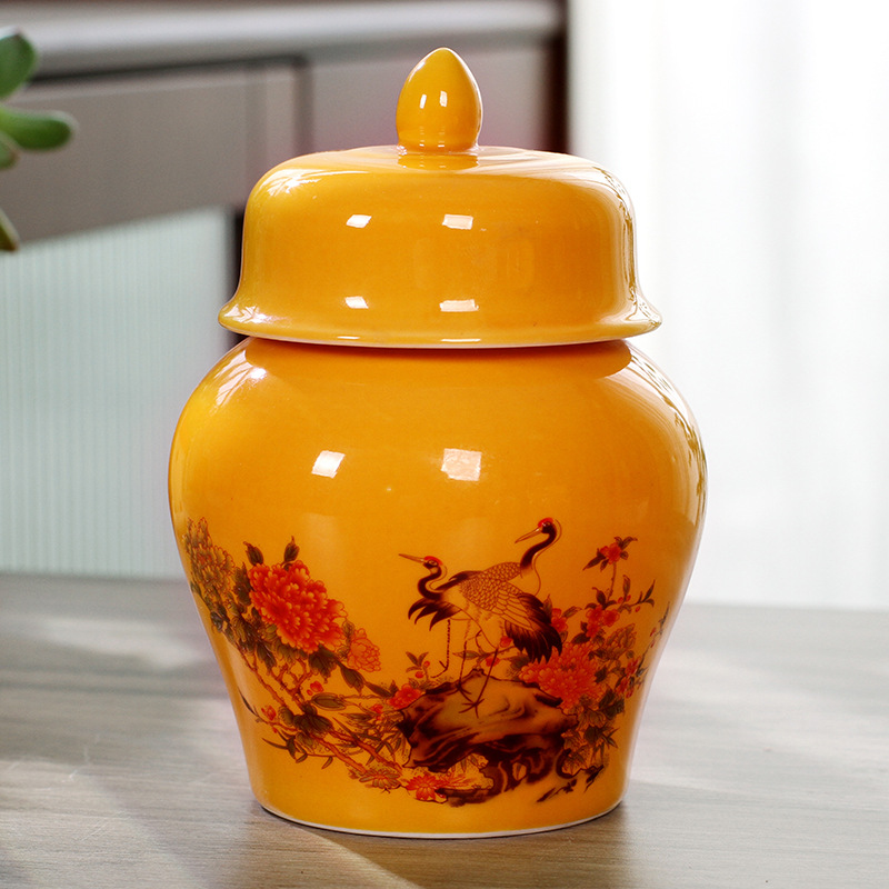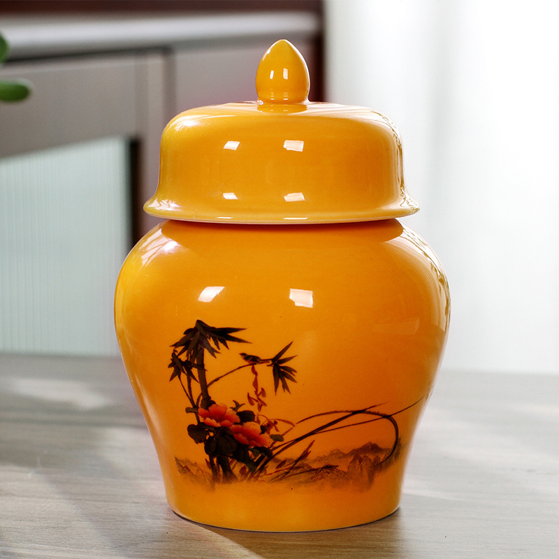 将军罐新中式螺旋密封茶叶罐陶瓷蜂蜜罐一斤装便携式旅行储存罐