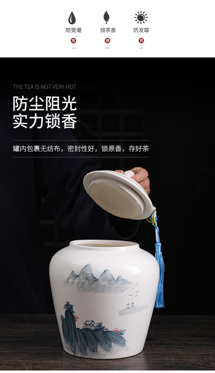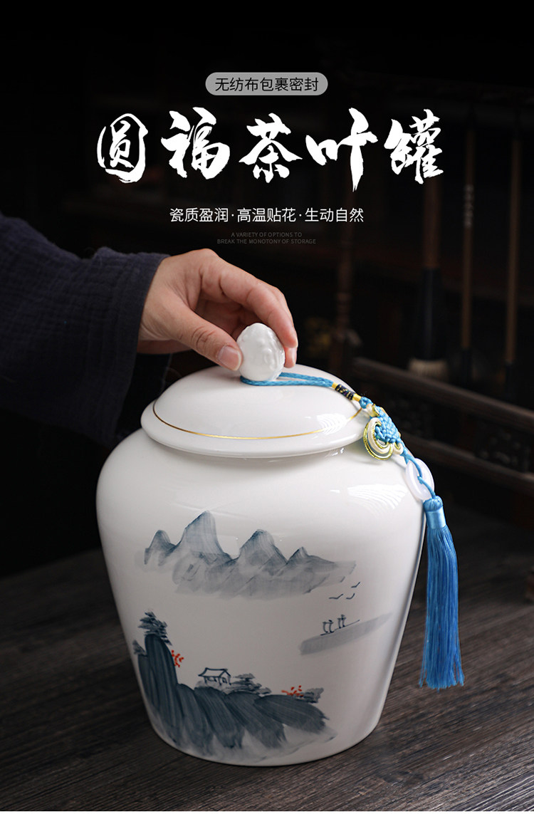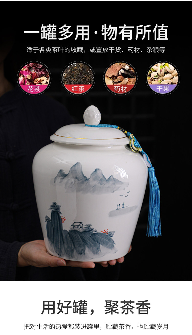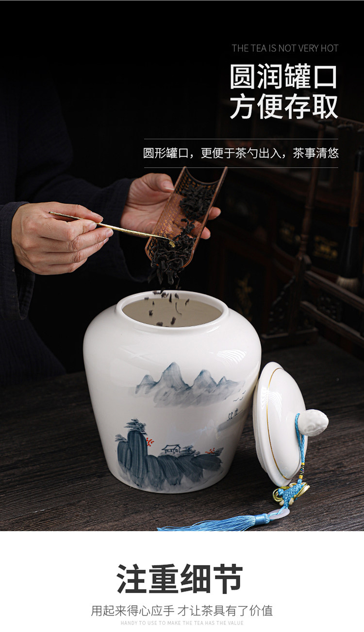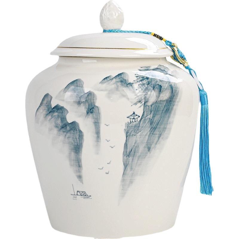 陶瓷茶叶罐大号五斤装白瓷手绘陶瓷罐普洱醒茶将军罐散茶密封防潮
