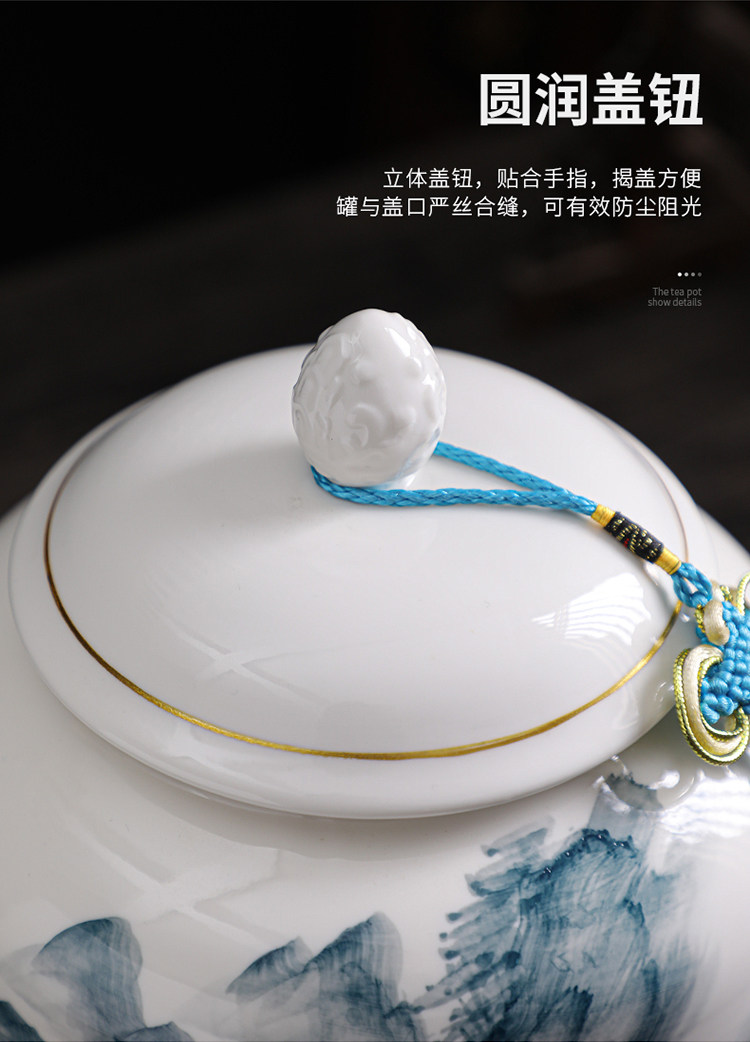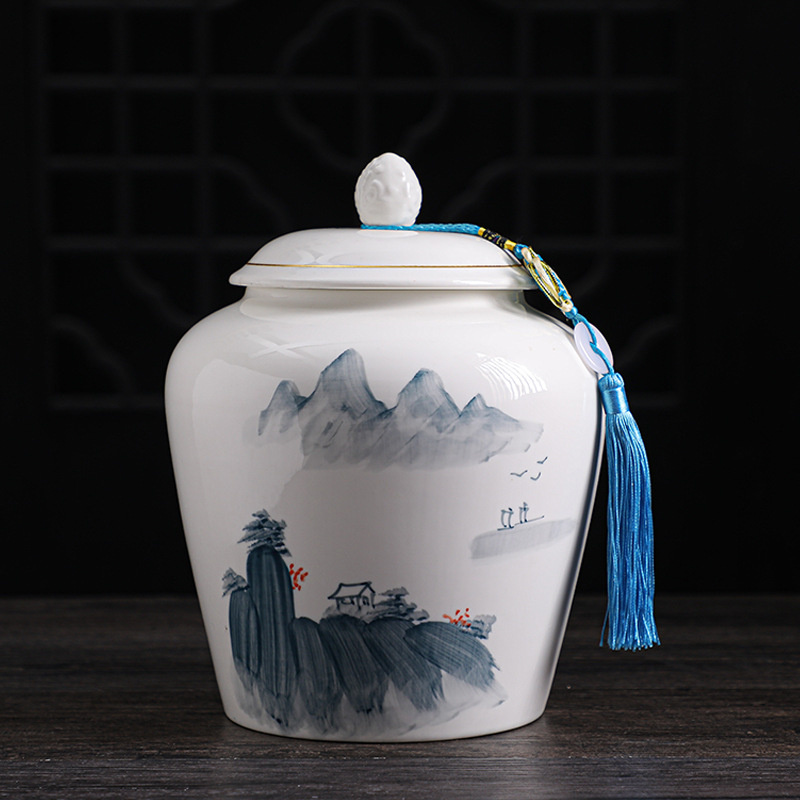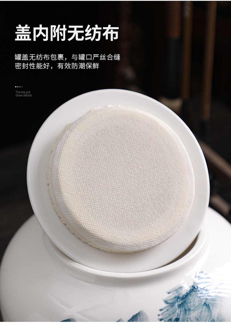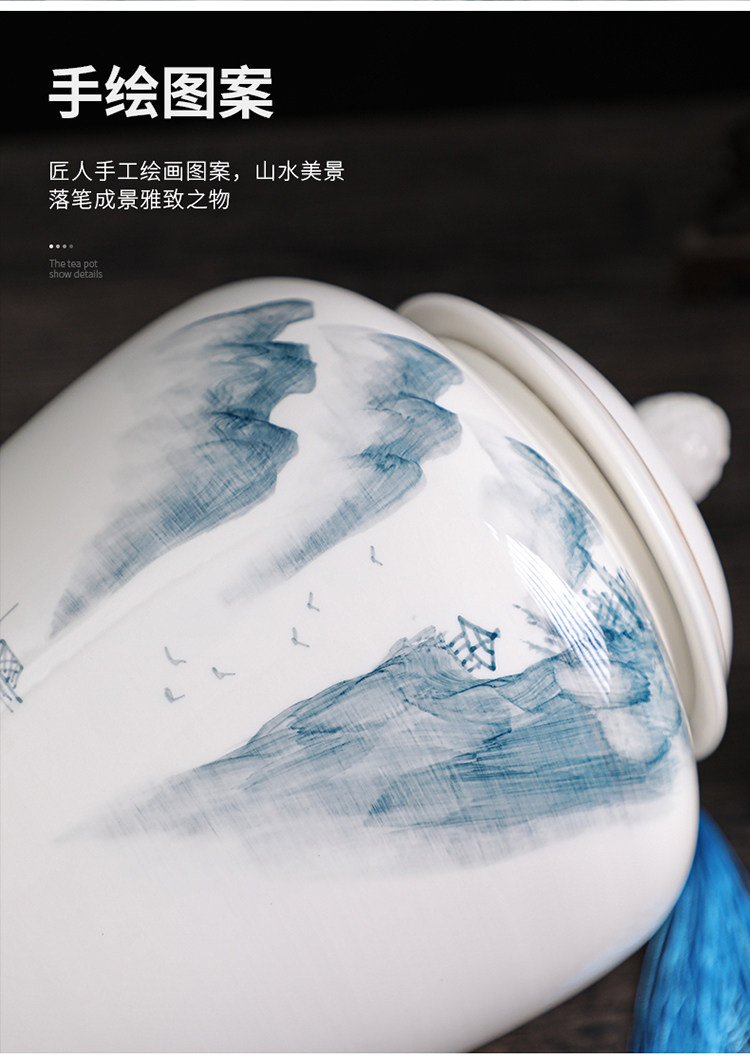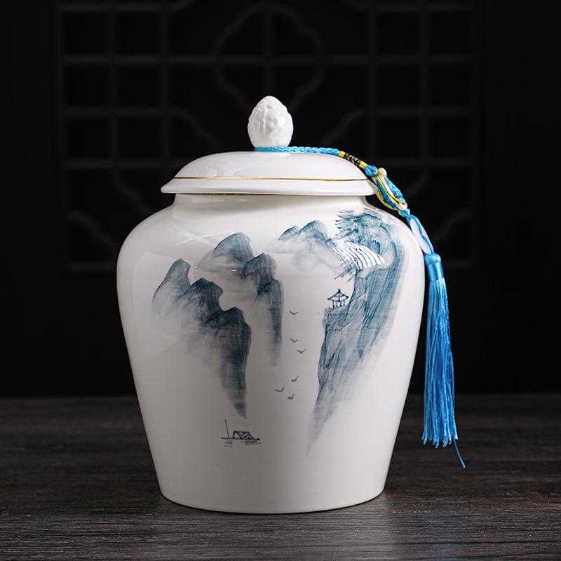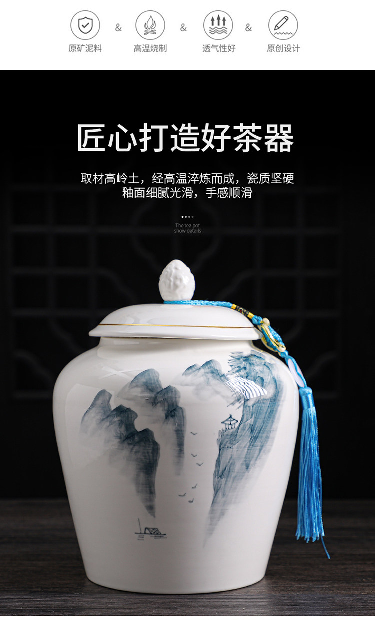 陶瓷茶叶罐大号五斤装白瓷手绘陶瓷罐普洱醒茶将军罐散茶密封防潮