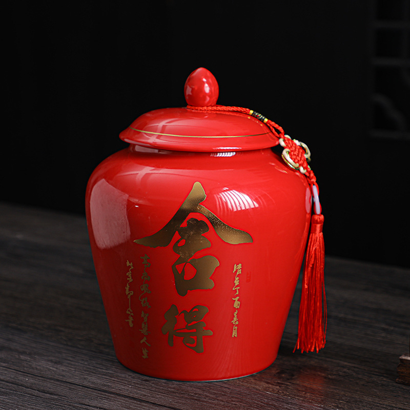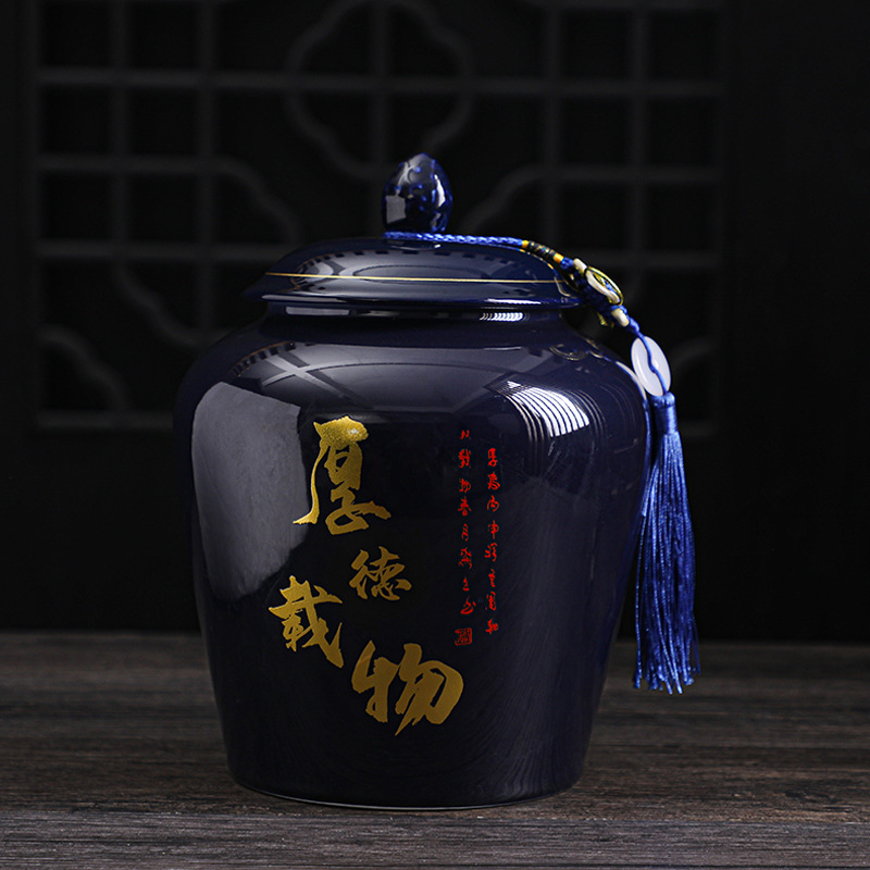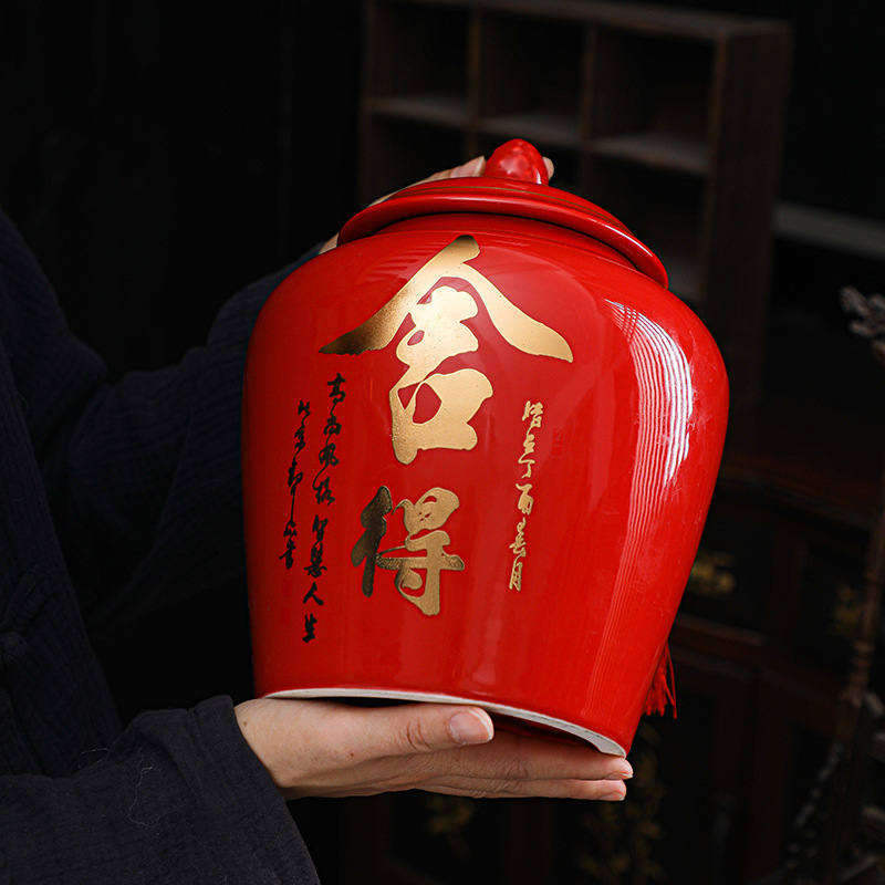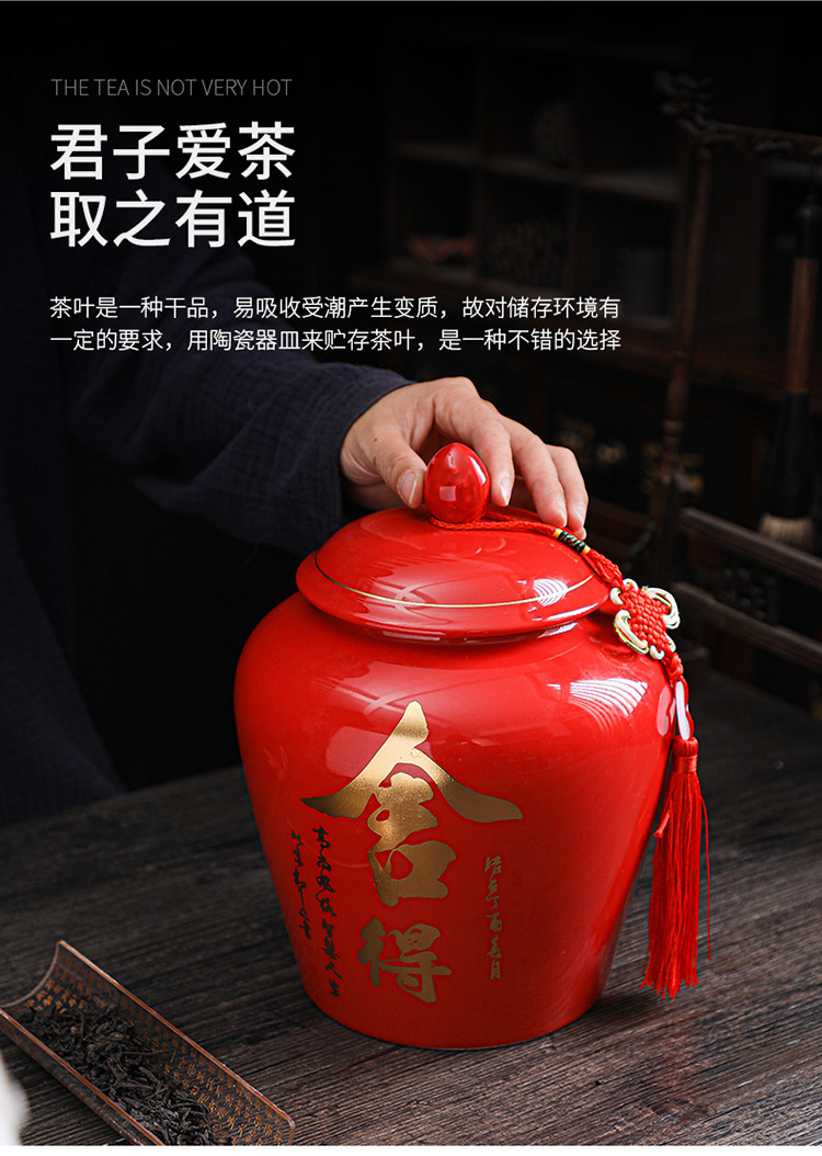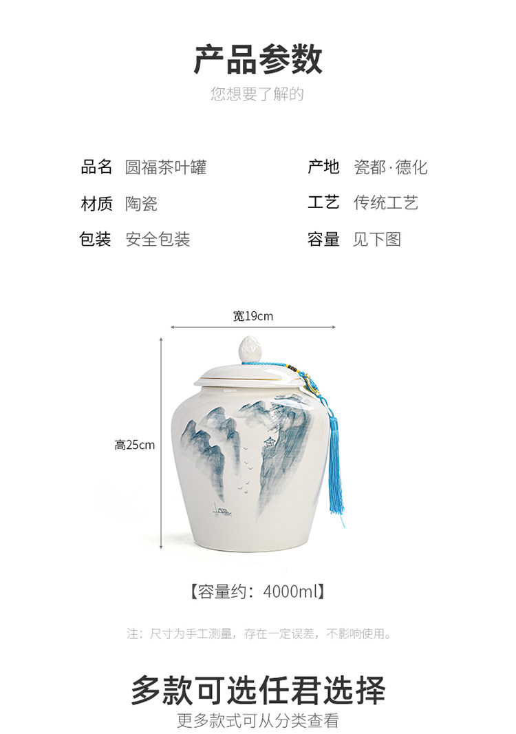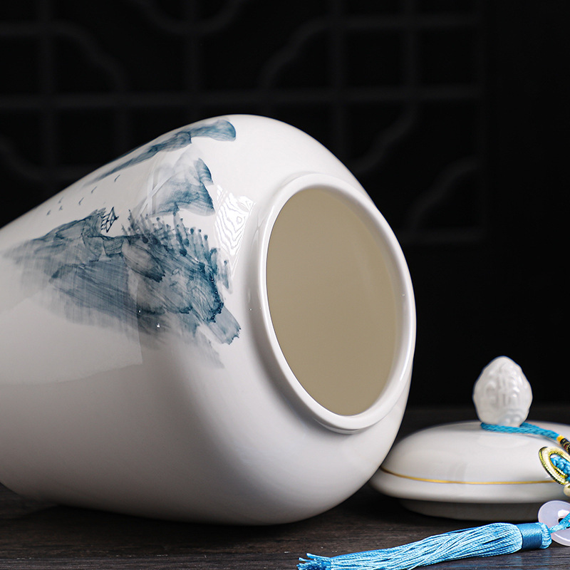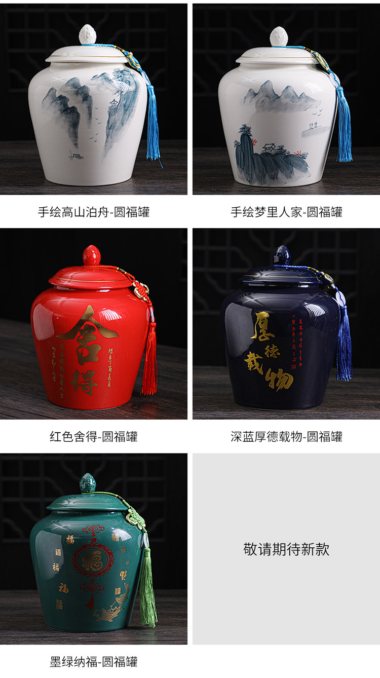 陶瓷茶叶罐大号五斤装白瓷手绘陶瓷罐普洱醒茶将军罐散茶密封防潮