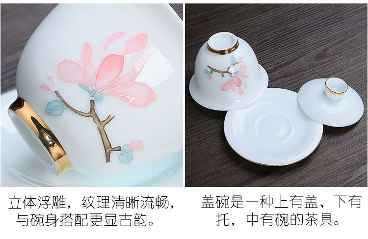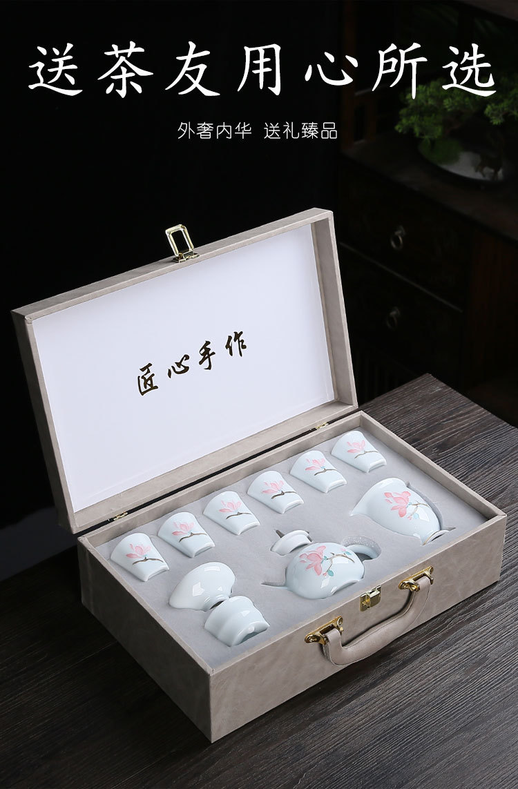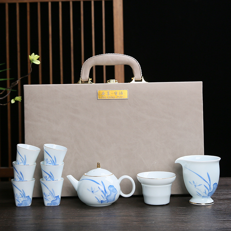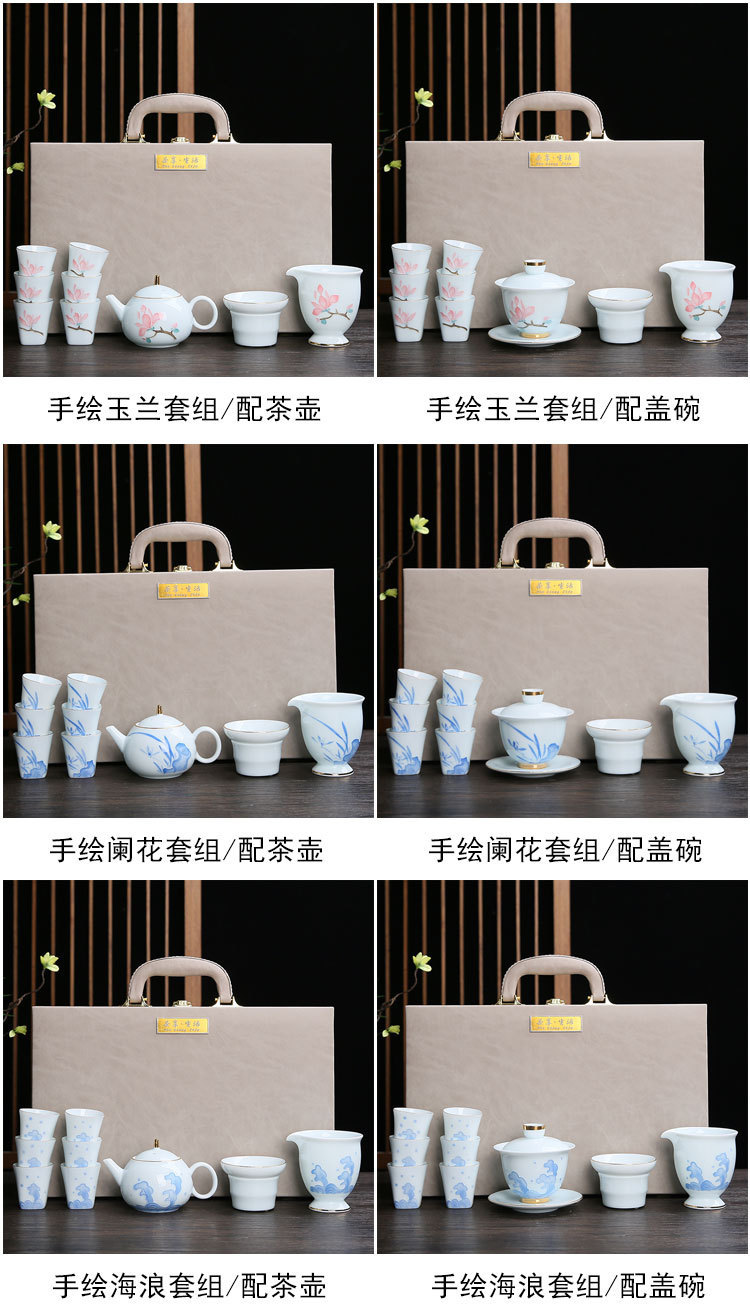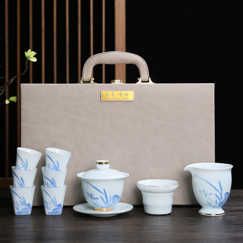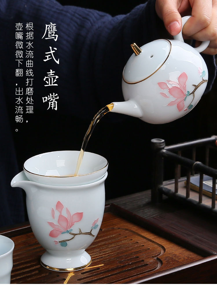 瓷制手绘影青瓷功夫茶具套装轻奢办公室用高端泡茶壶盖碗礼盒套装