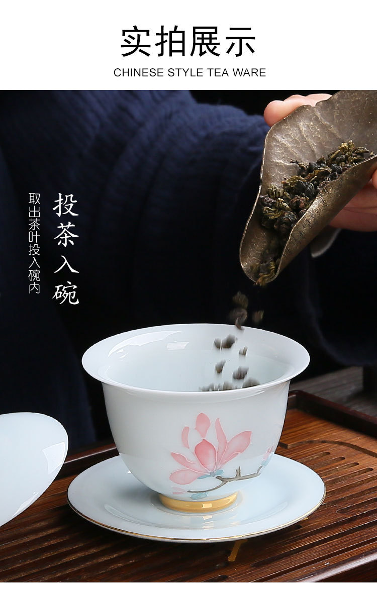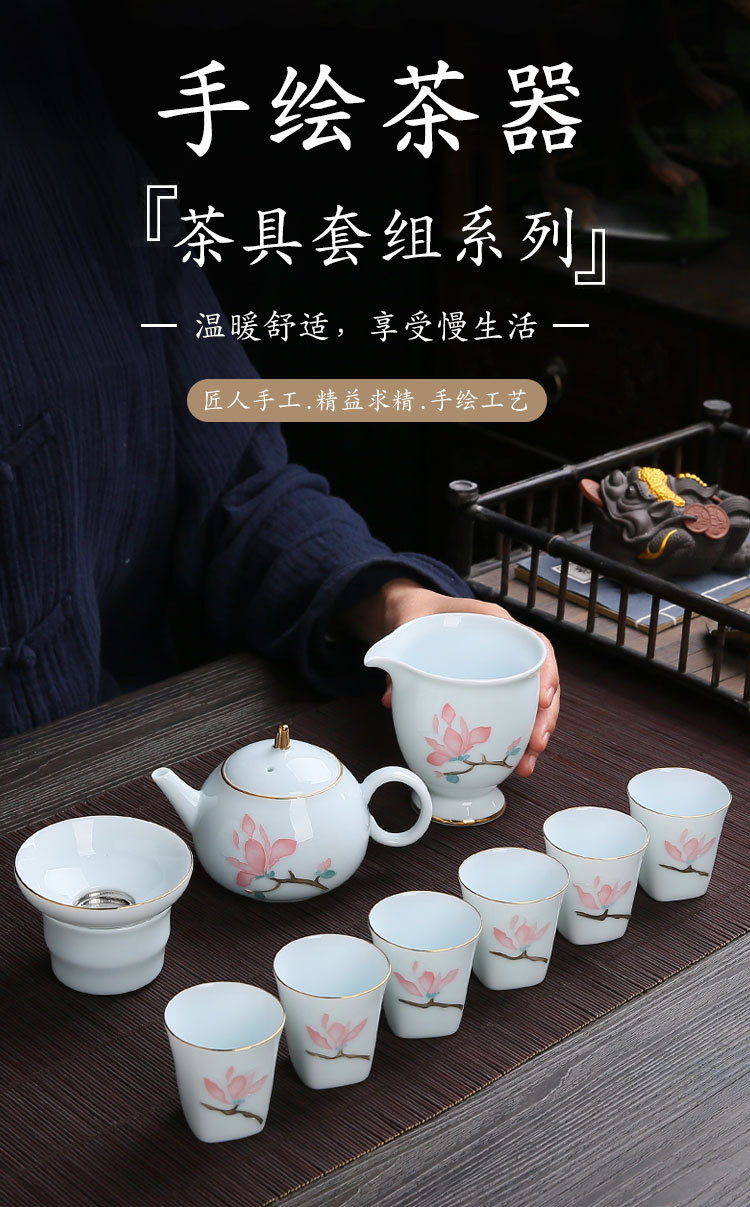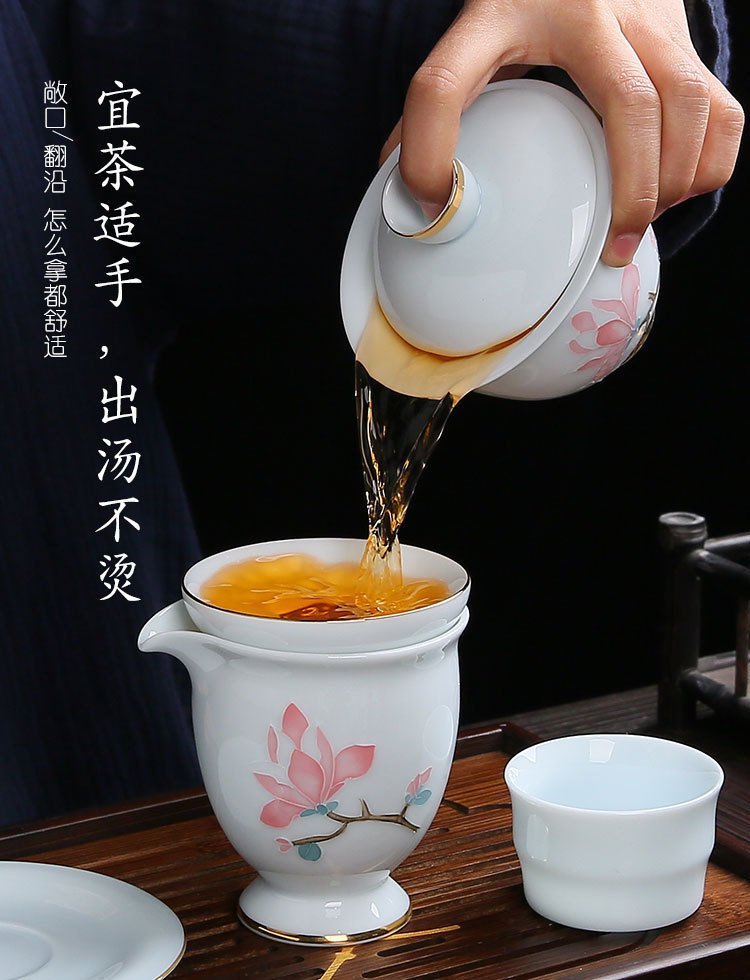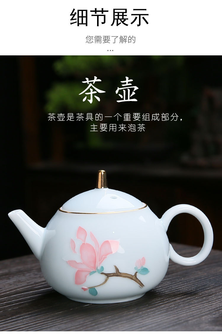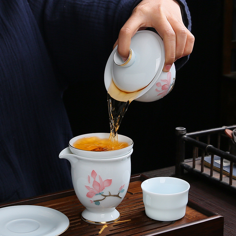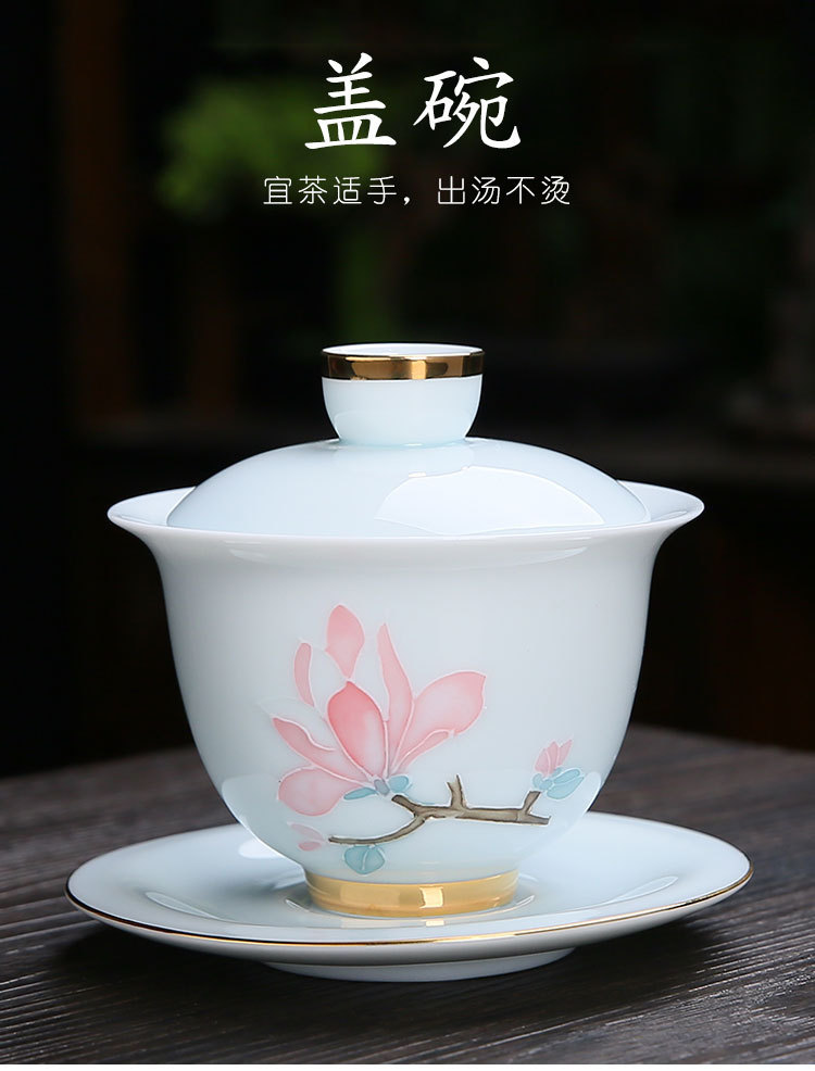 瓷制手绘影青瓷功夫茶具套装轻奢办公室用高端泡茶壶盖碗礼盒套装