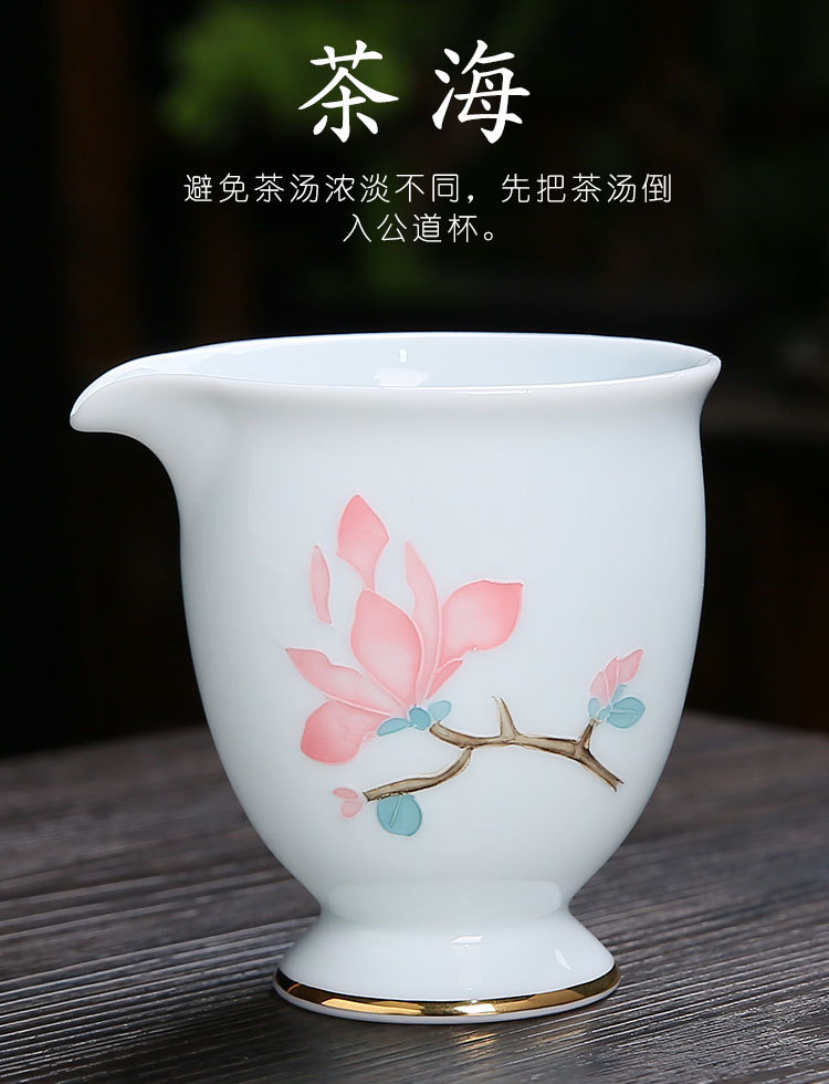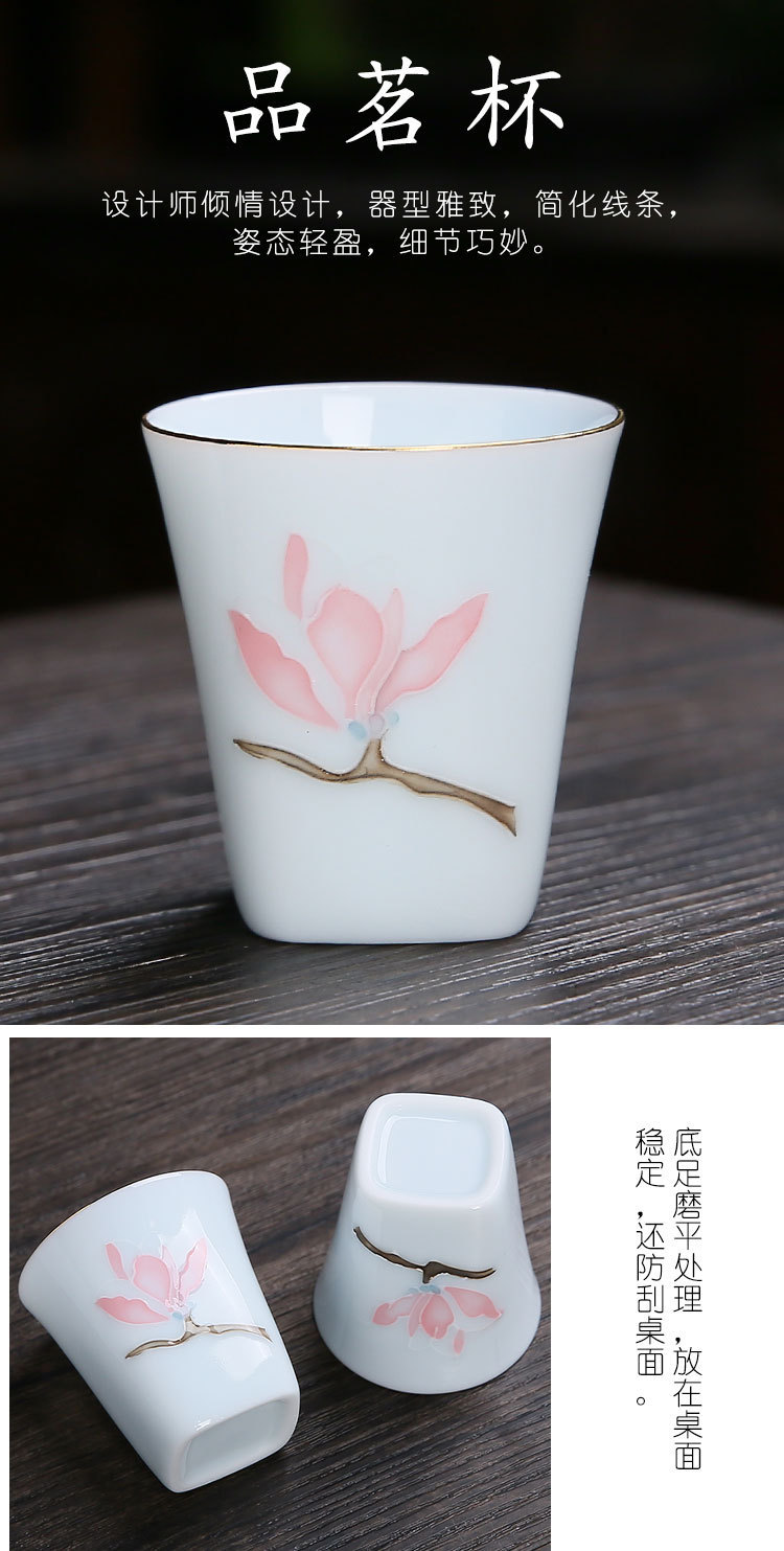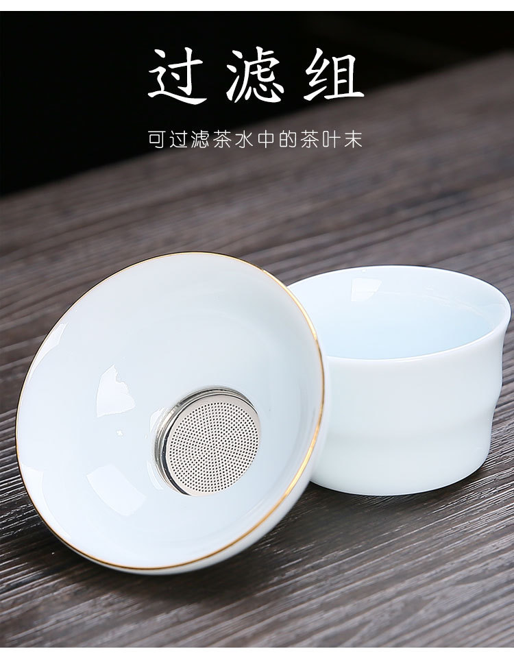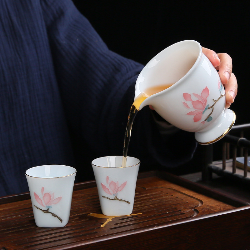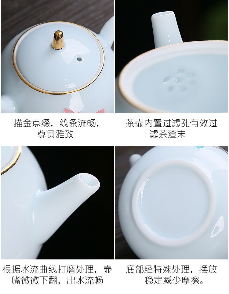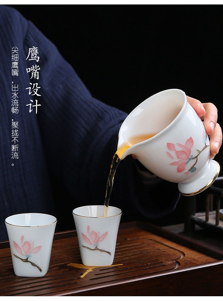 瓷制手绘影青瓷功夫茶具套装轻奢办公室用高端泡茶壶盖碗礼盒套装