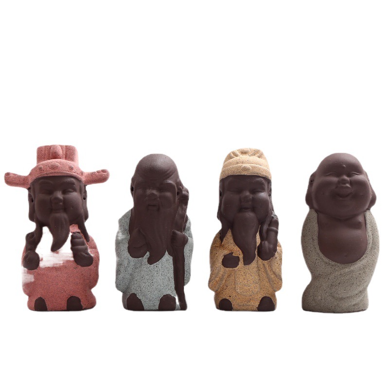 紫砂创意茶宠 福禄寿 小和尚 紫砂彩砂汽车饰品 小沙弥厂家直销