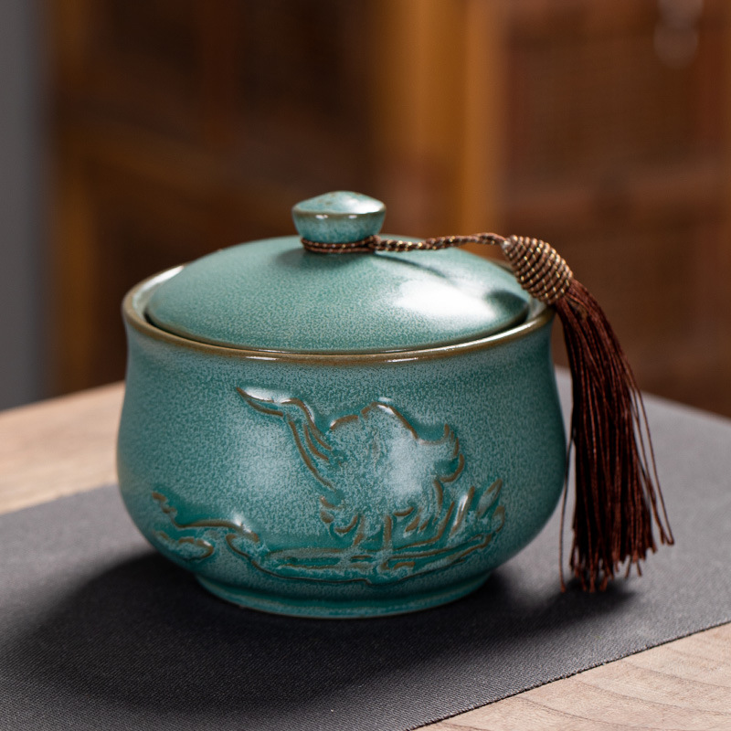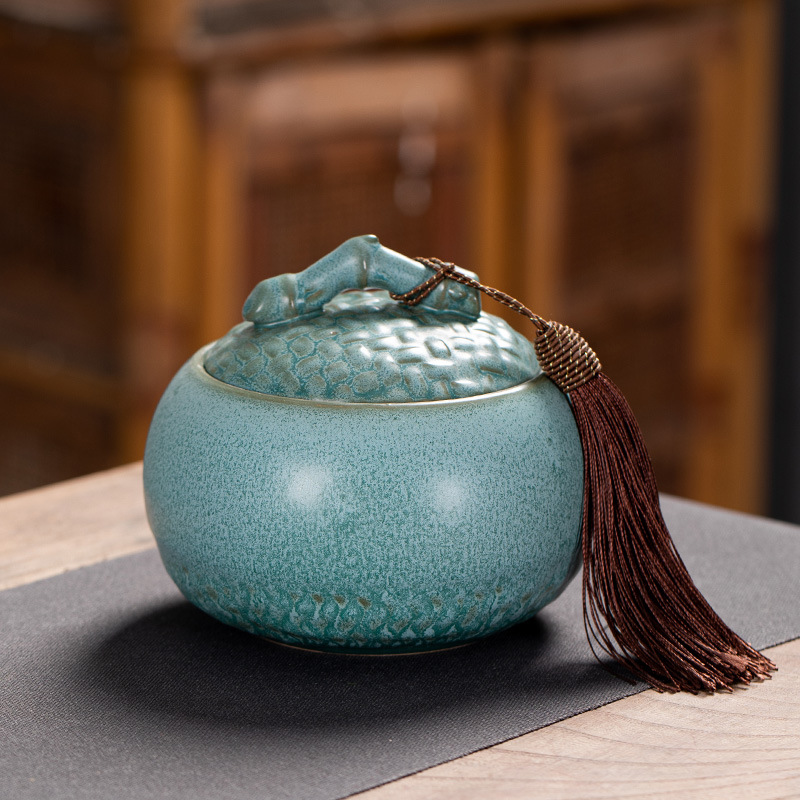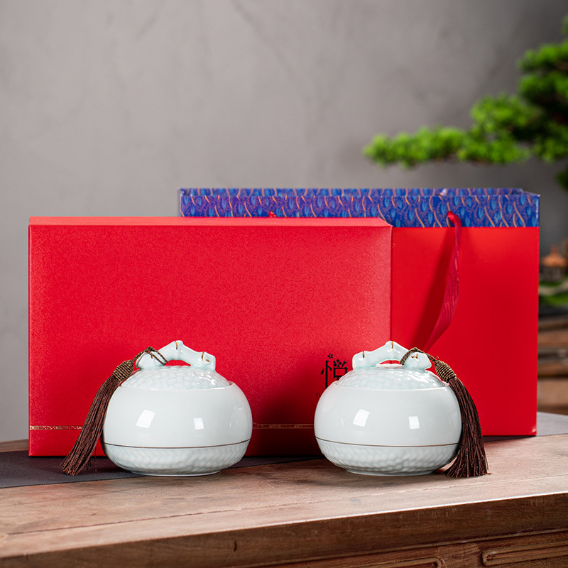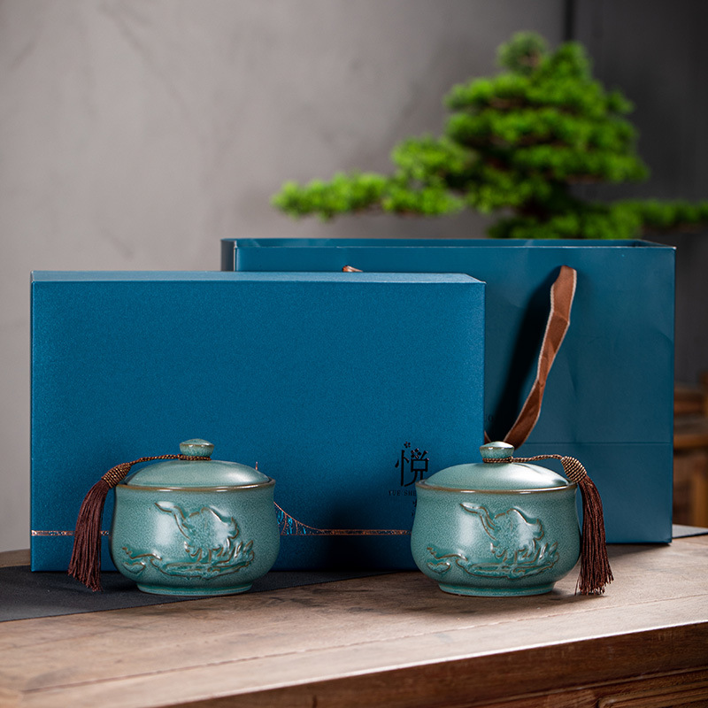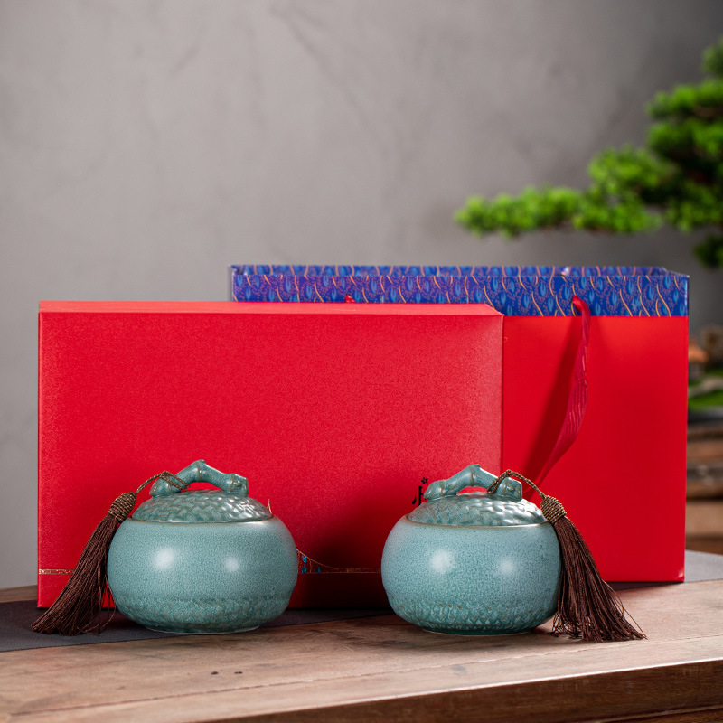 陶瓷黑枸杞描金茶叶罐套装粗陶礼品大号半斤装密封红茶罐中式礼盒
