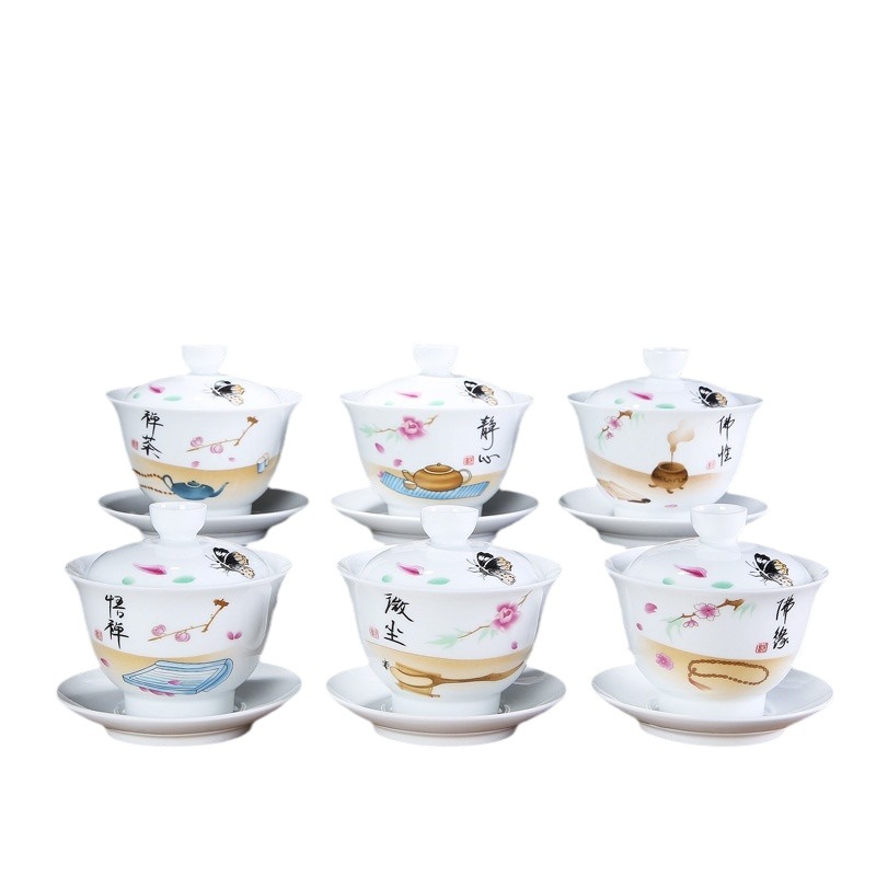 手工盖碗德化白瓷茶具三才盖碗玉瓷茶杯大号陶瓷茶碗定写批发LOGO