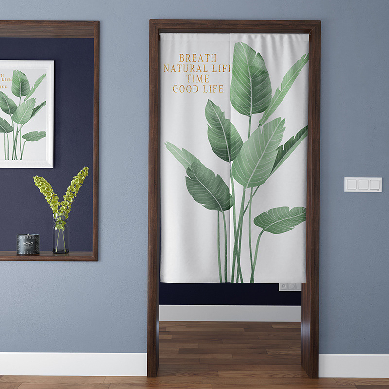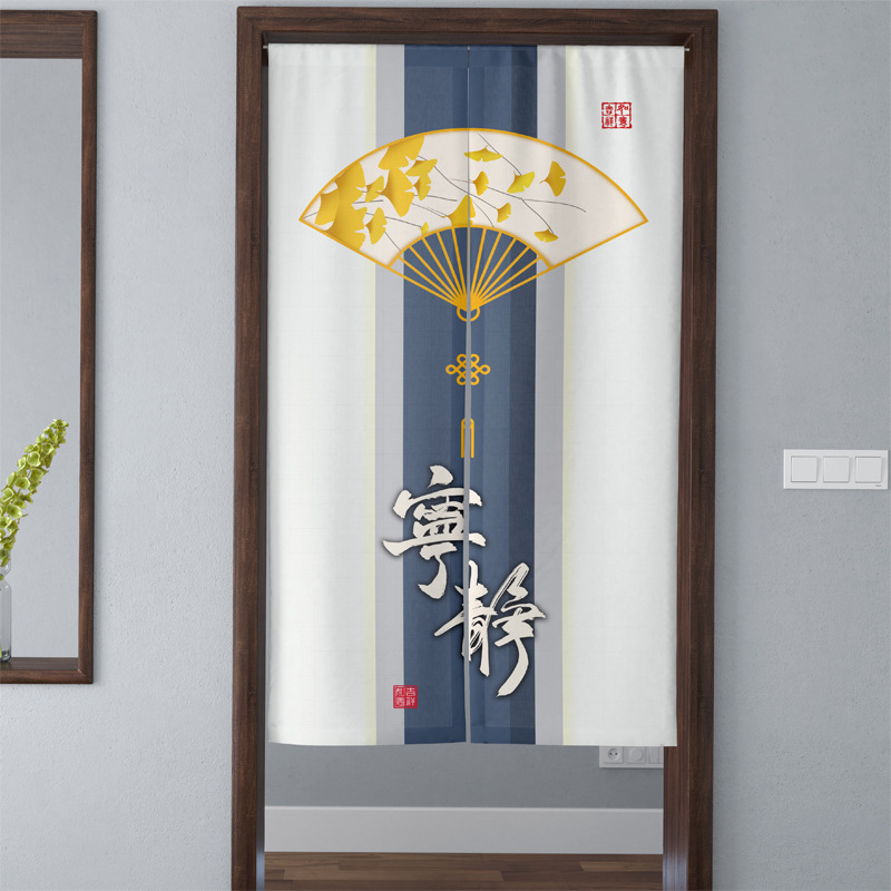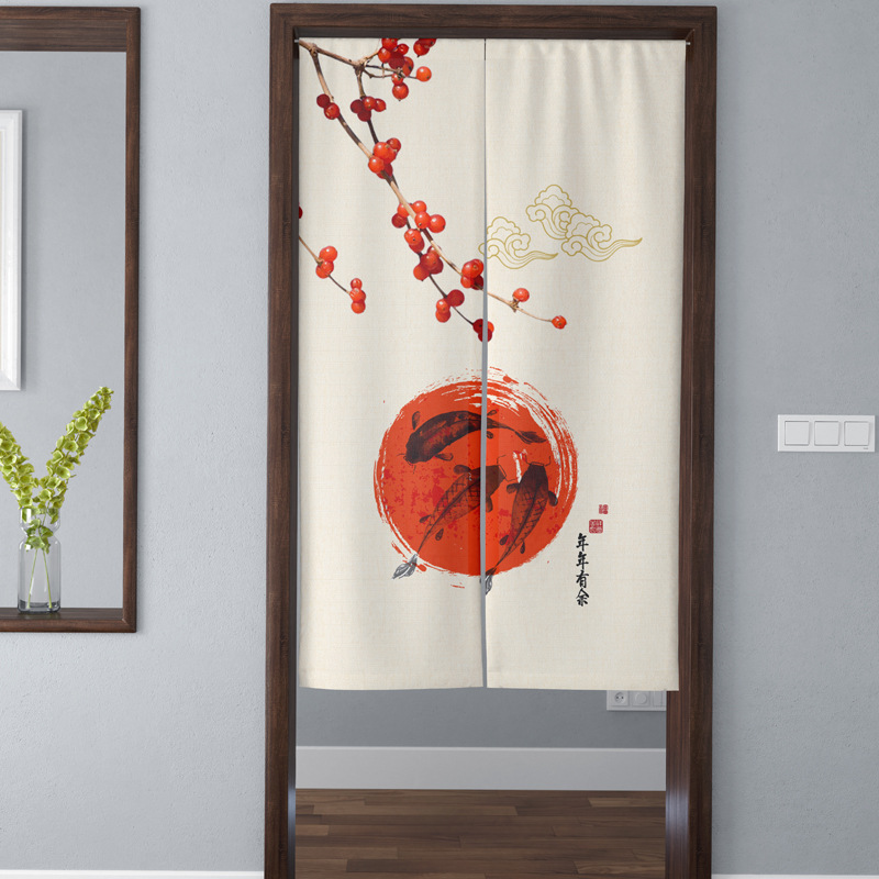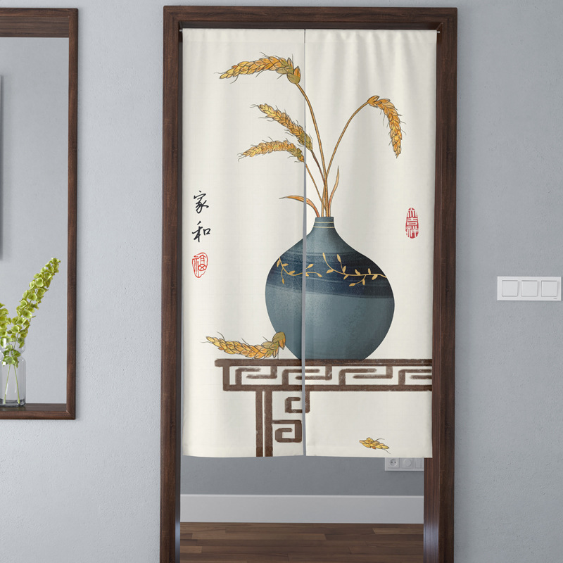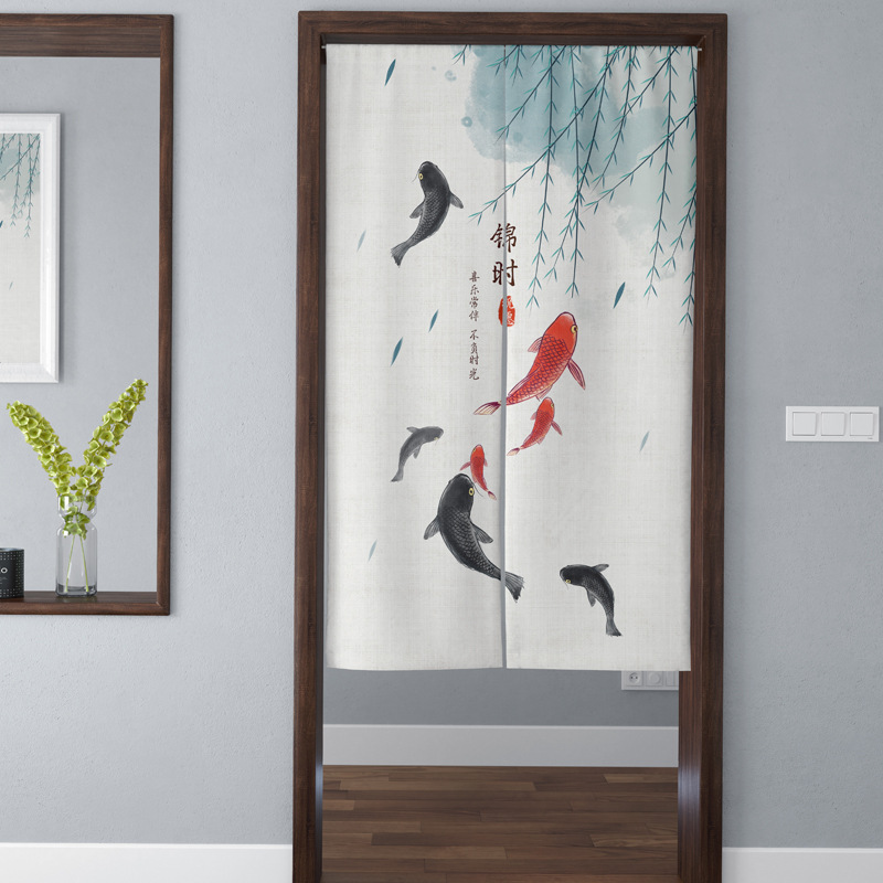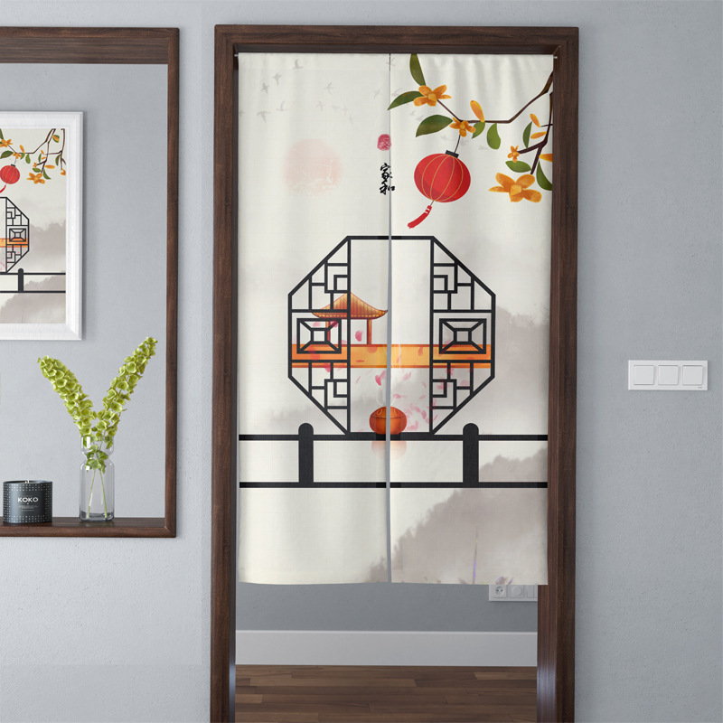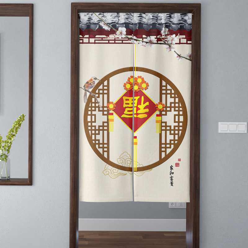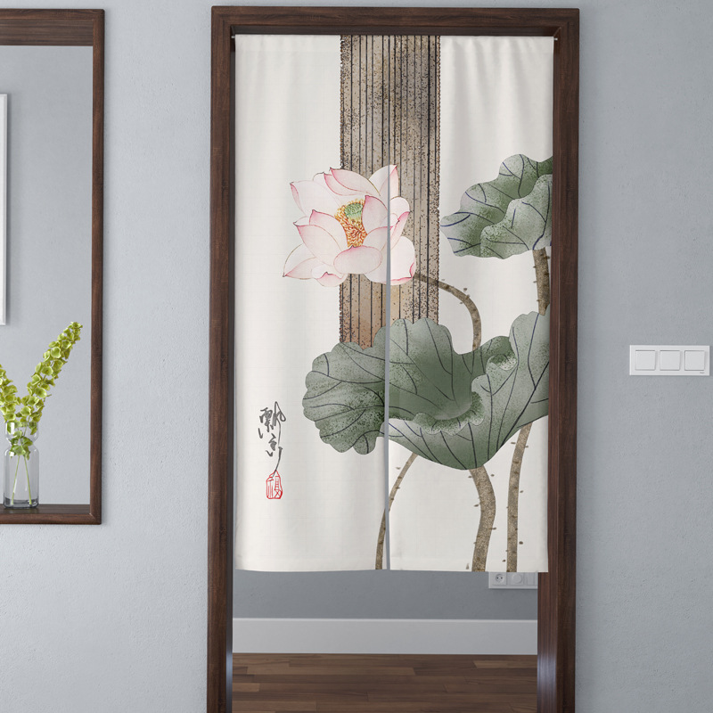 中式荷花布艺门帘卫生间门对门布帘厕所玄关隔断半截半帘
