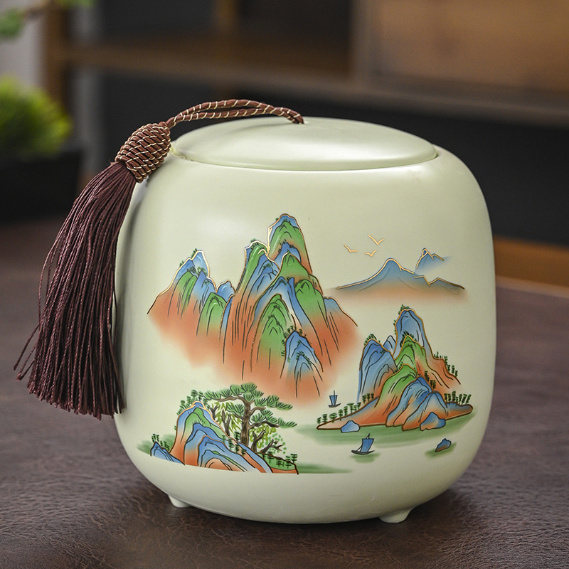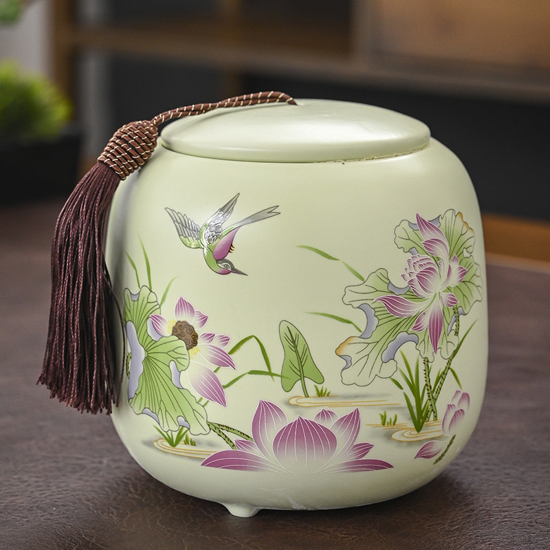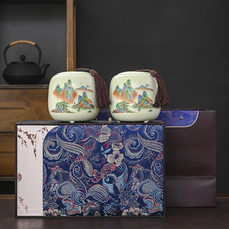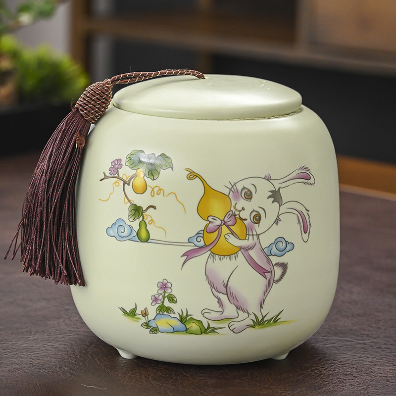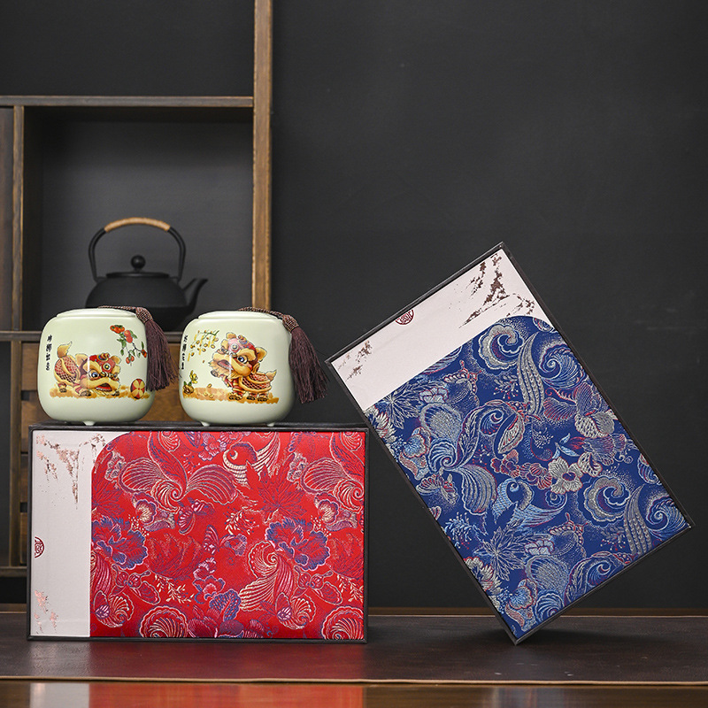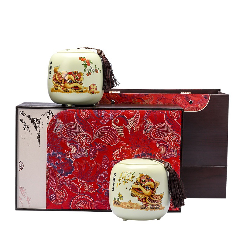 陶瓷精品高档茶仓礼盒陶瓷茶叶罐创意醒狮国潮风储存罐装茶罐茶缸