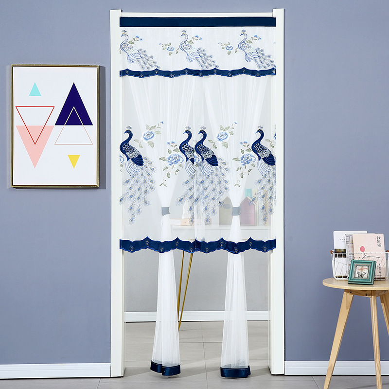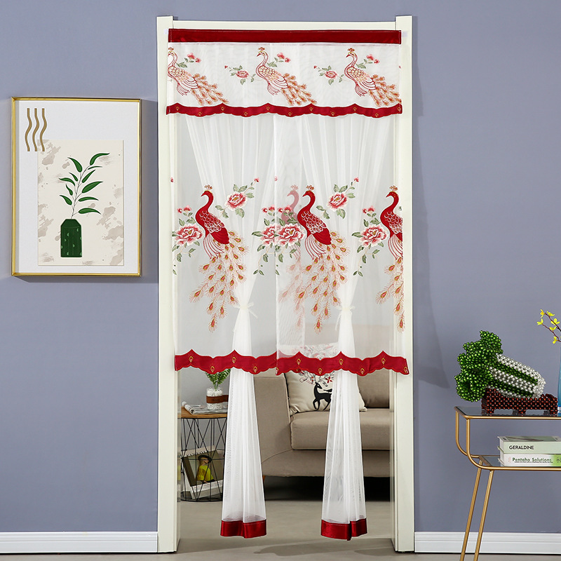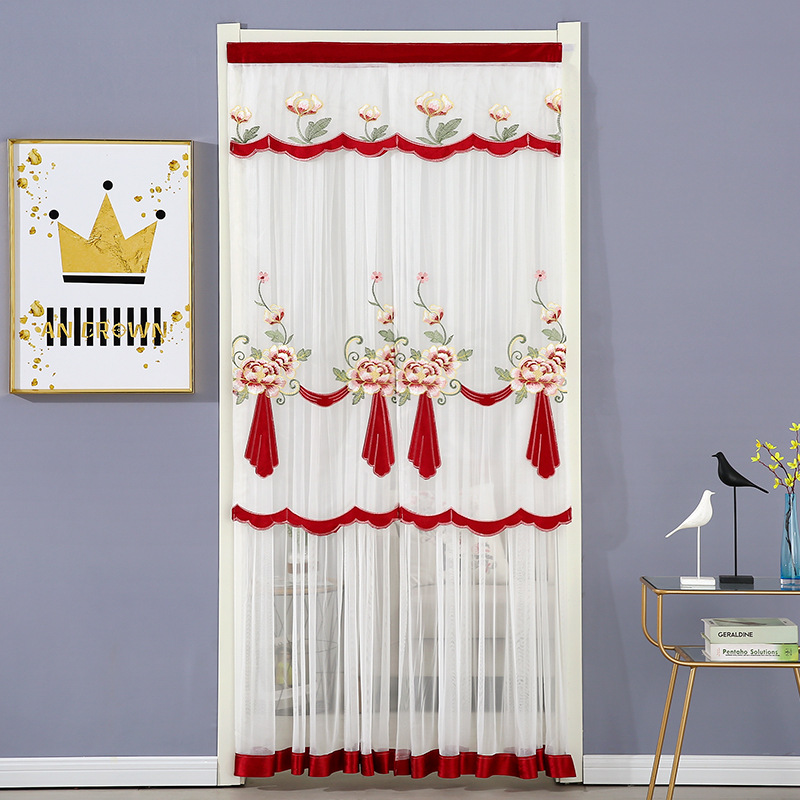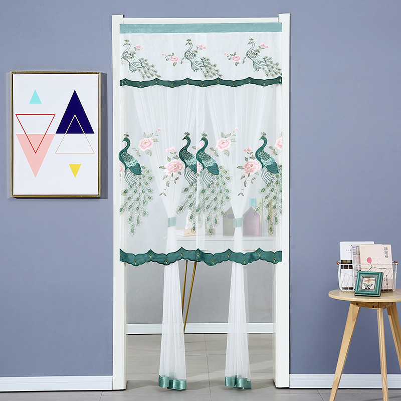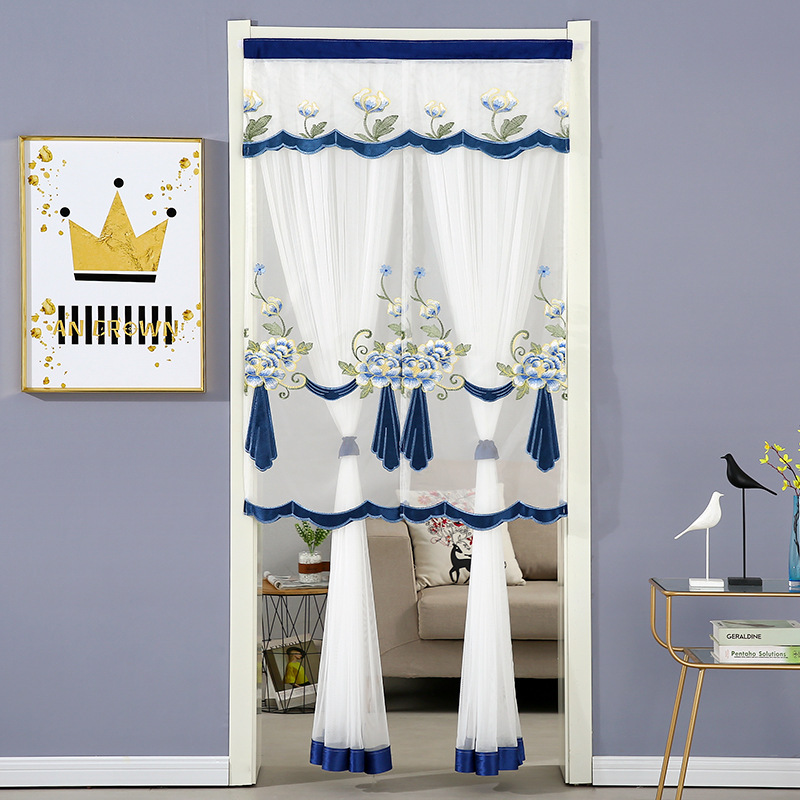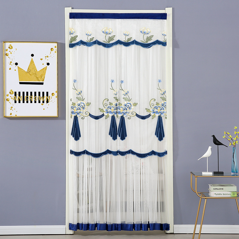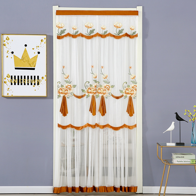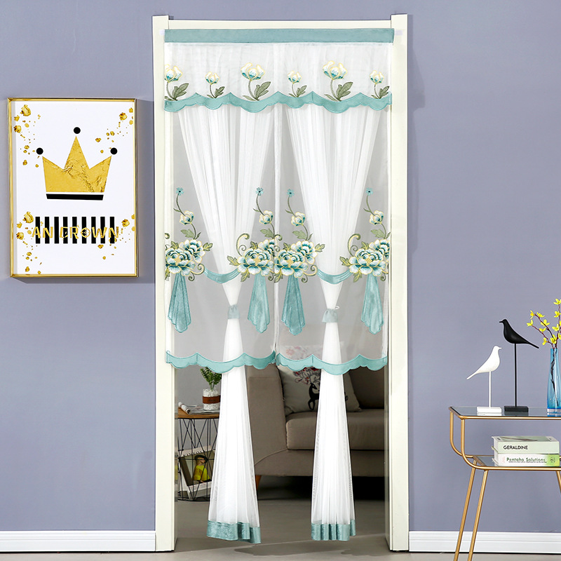 蕾丝门帘家用四季防蚊纱帘夏季通用双层隔断帘免打孔卧室纱门帘子