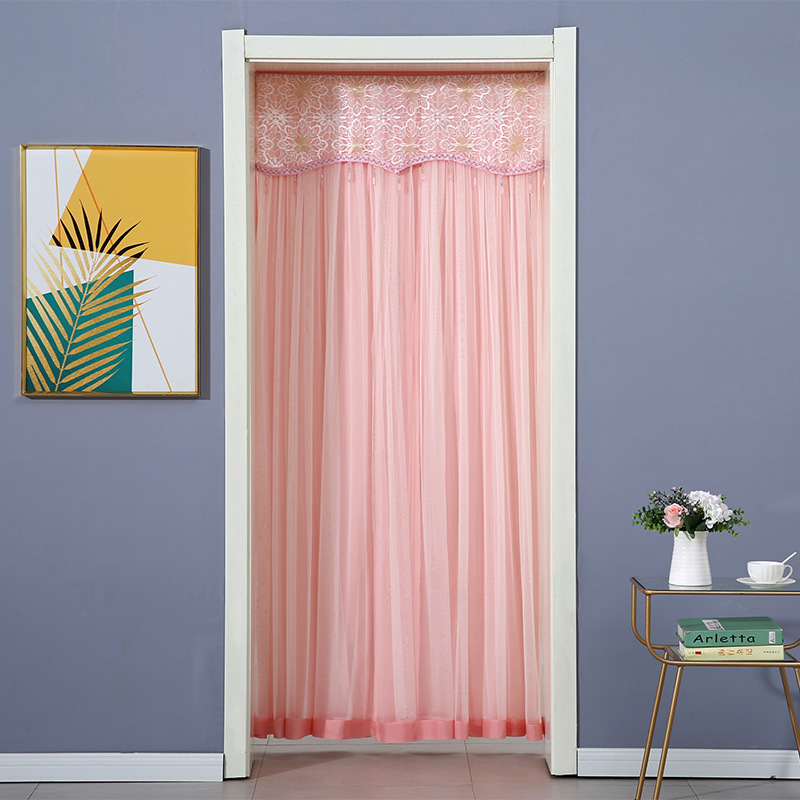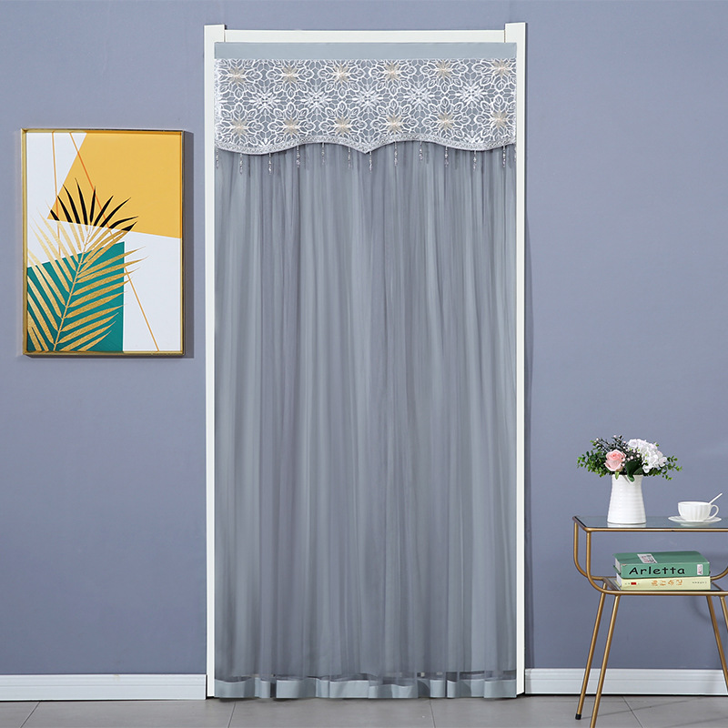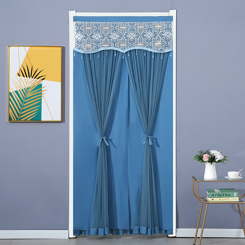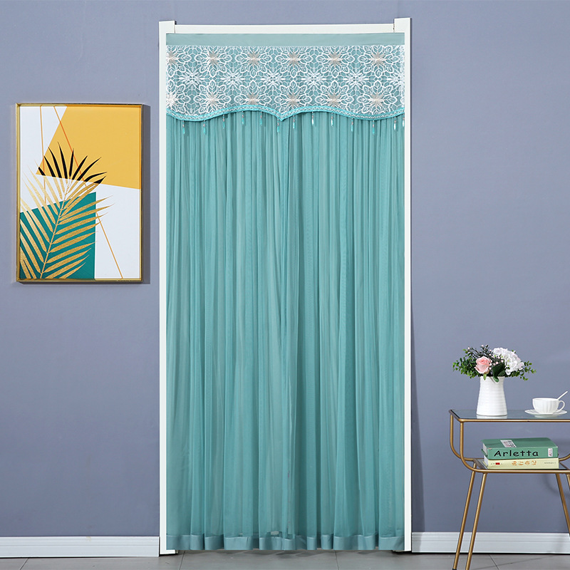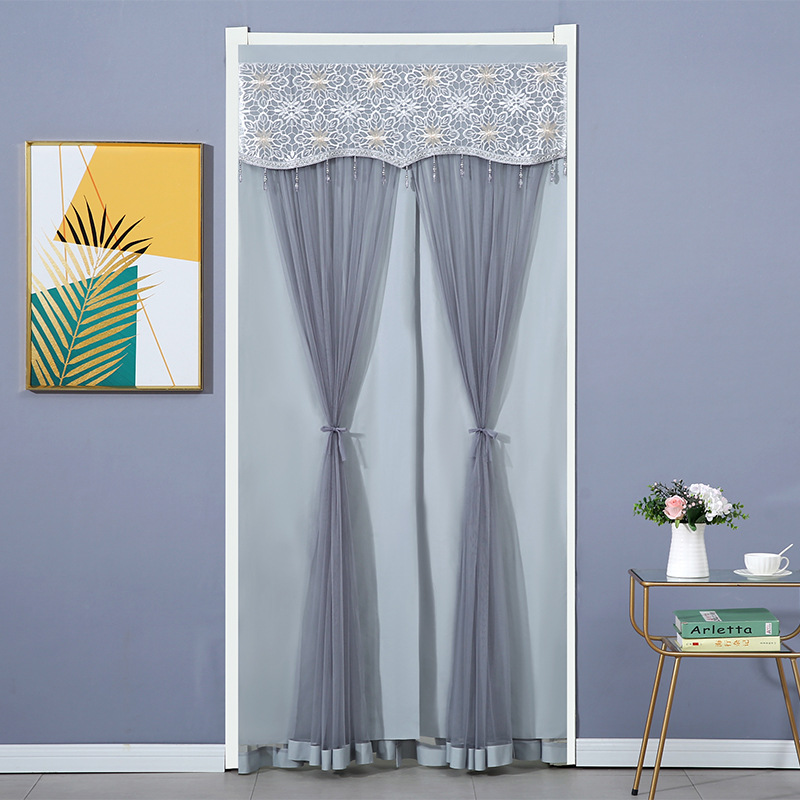 蕾丝门帘隔断帘家用免打孔卧室厨房双层不透纱帘防蚊挂帘夏季新款