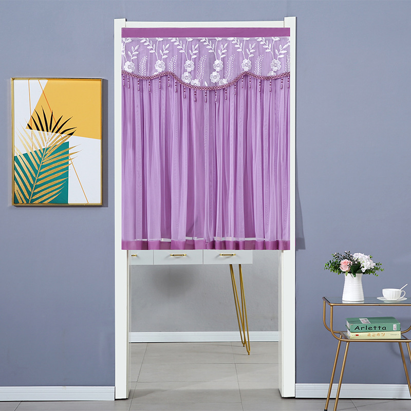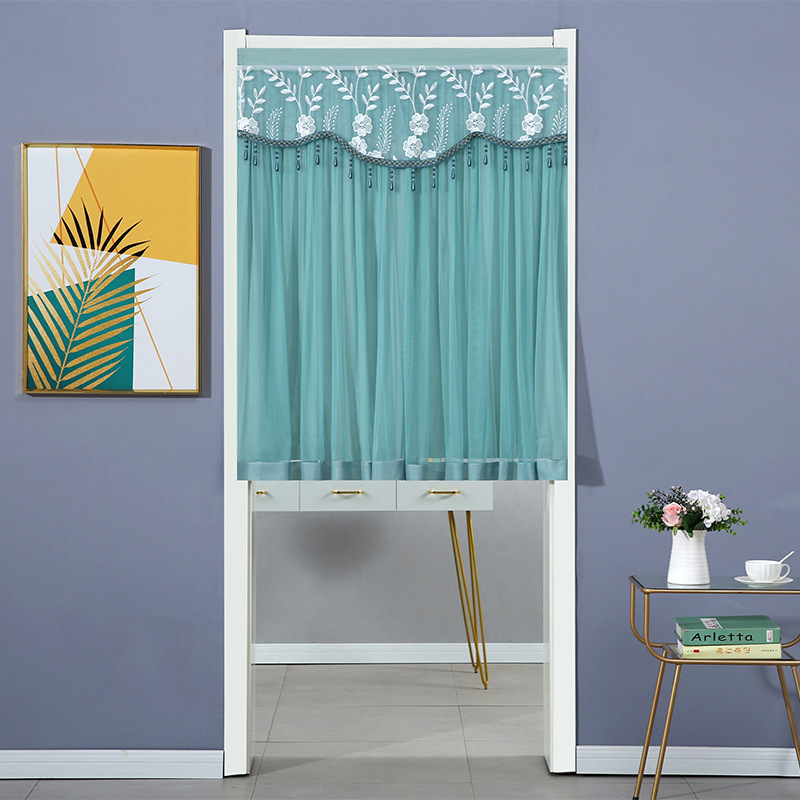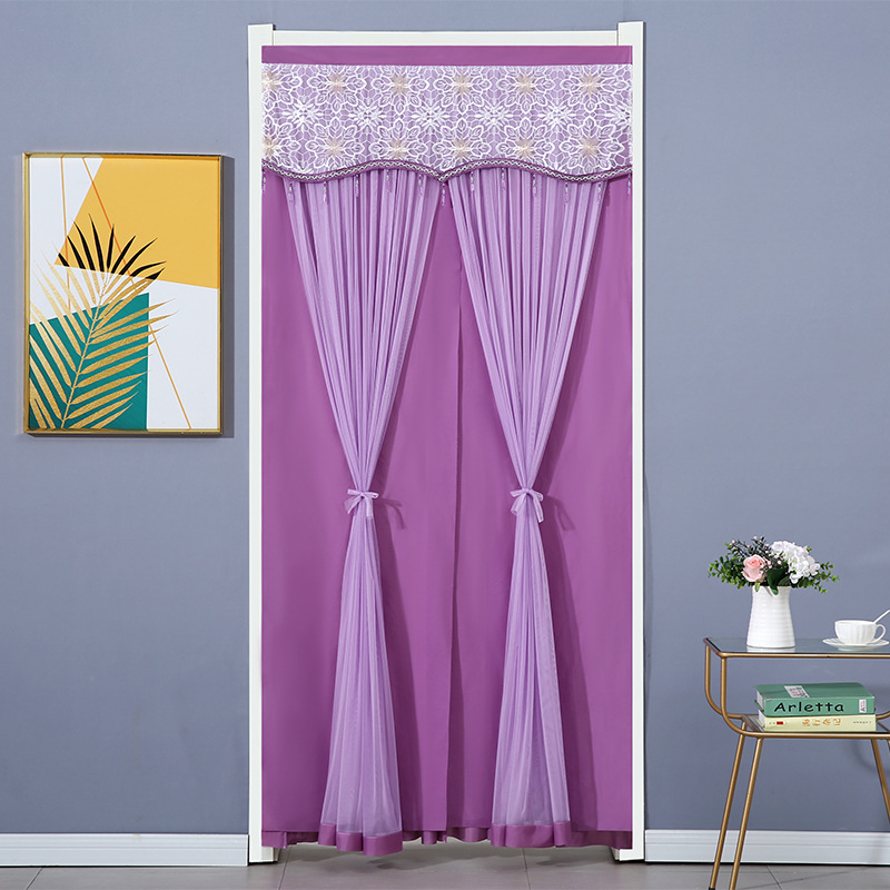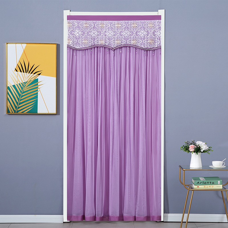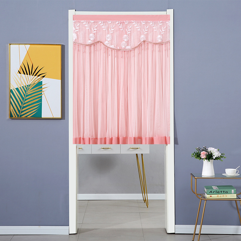 蕾丝门帘隔断帘家用免打孔卧室厨房双层不透纱帘防蚊挂帘夏季新款