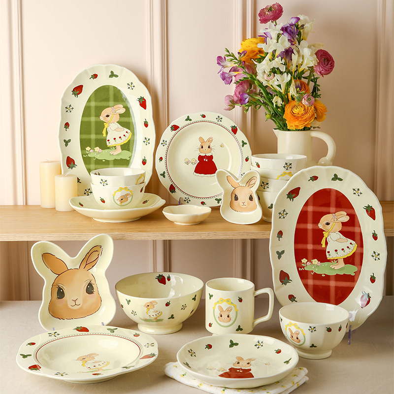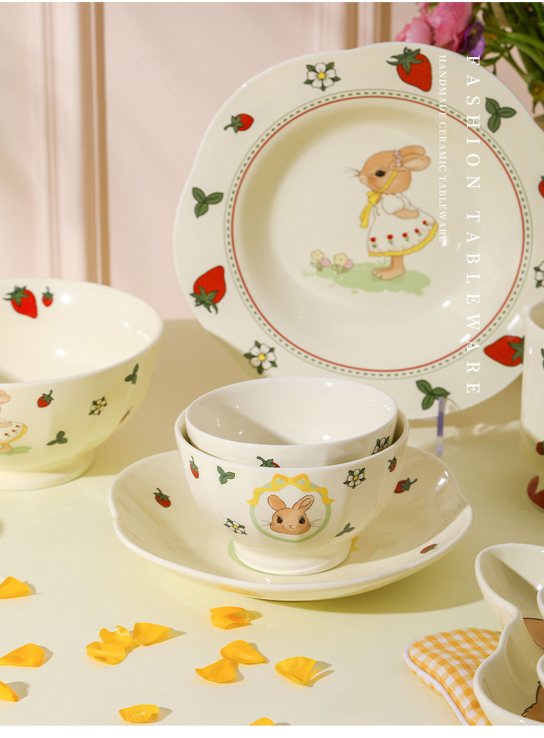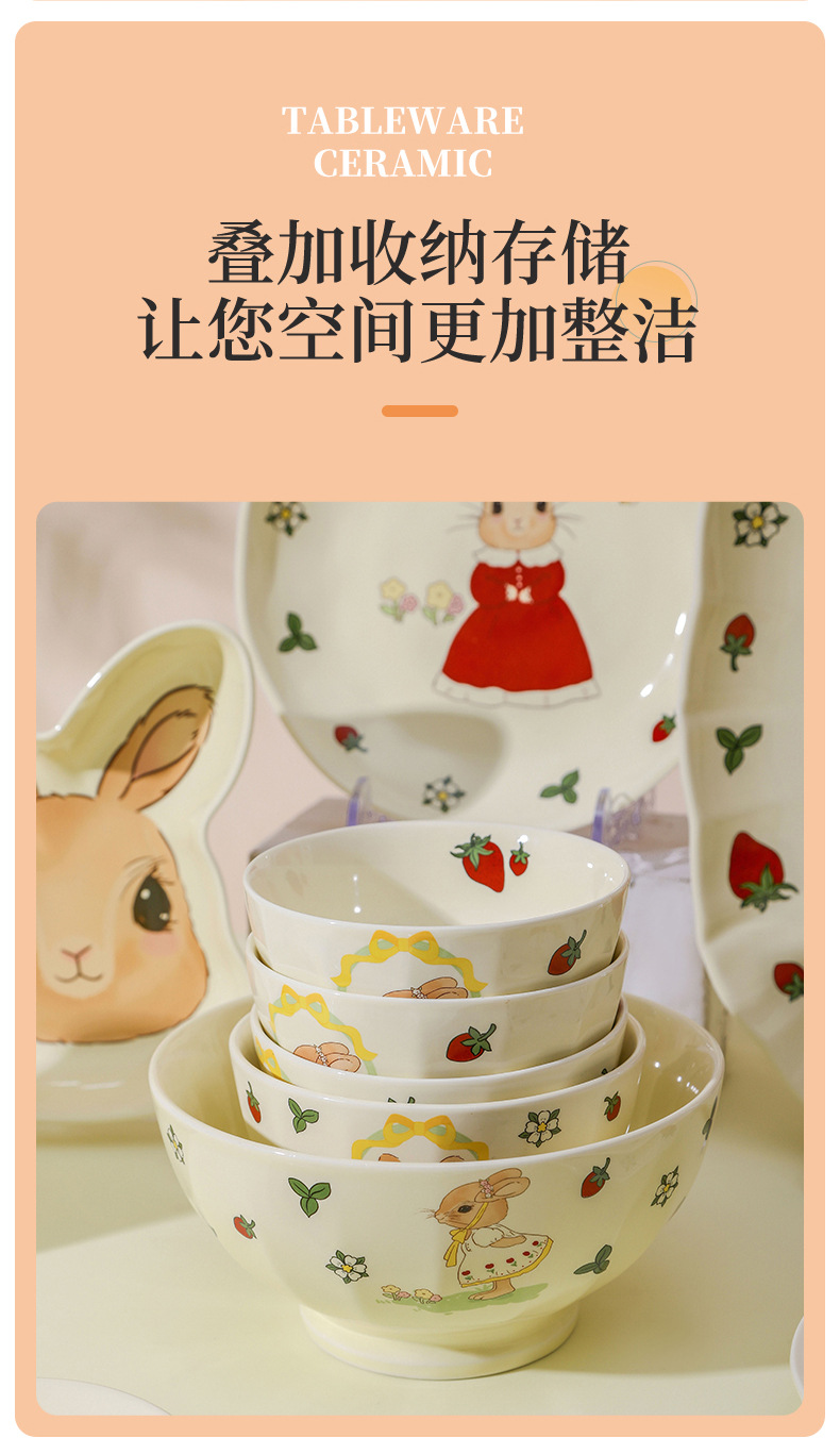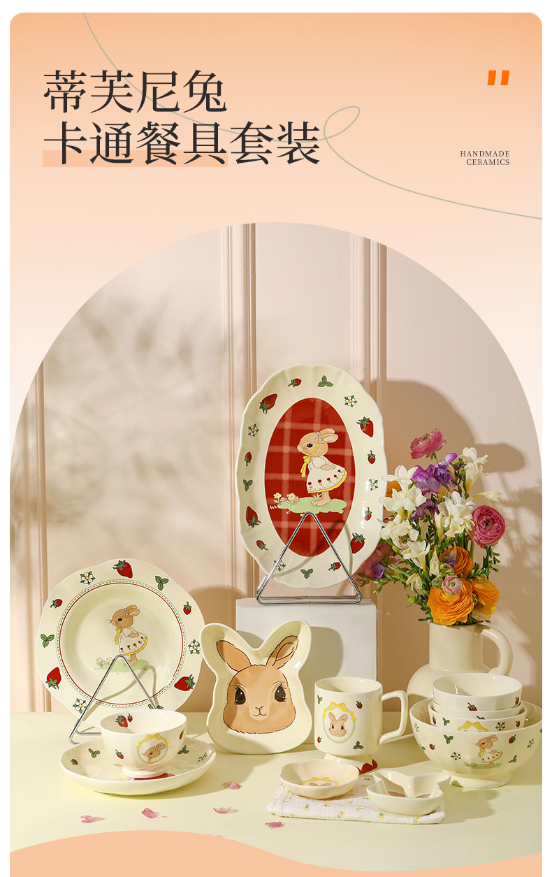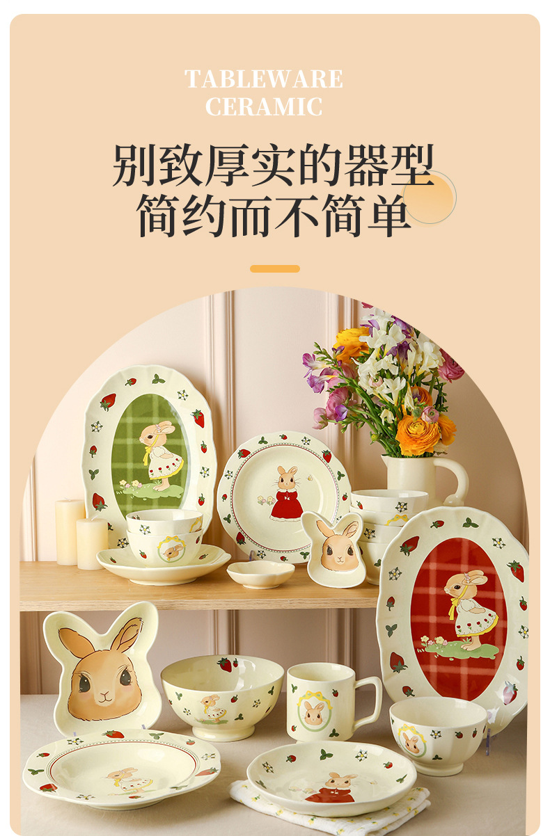 原创设计蒂芙尼兔陶瓷餐具碗盘子家用高颜值碗碟套装卡通儿童汤碗