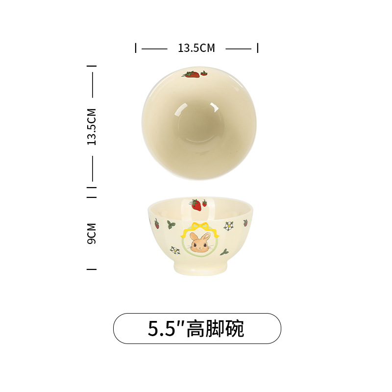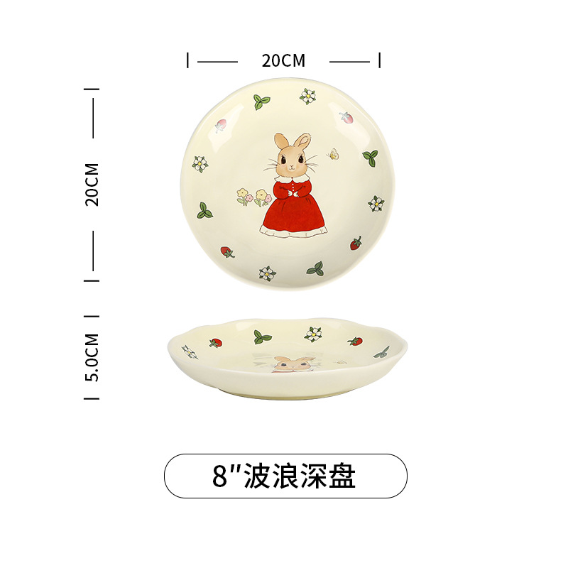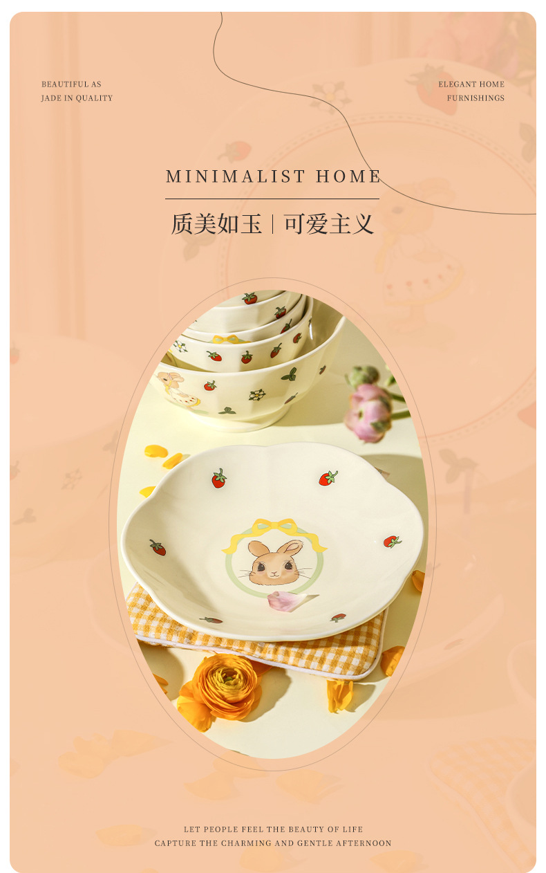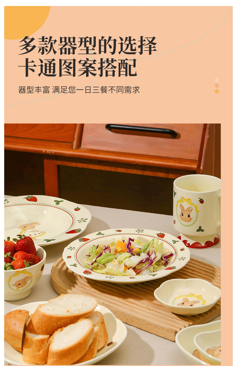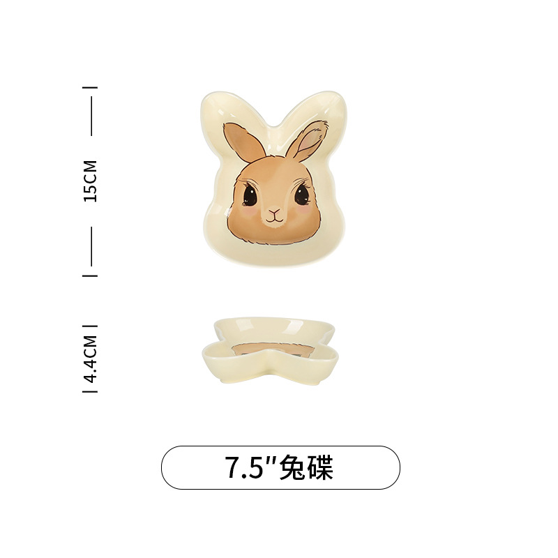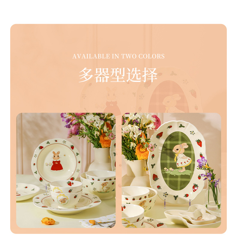 原创设计蒂芙尼兔陶瓷餐具碗盘子家用高颜值碗碟套装卡通儿童汤碗