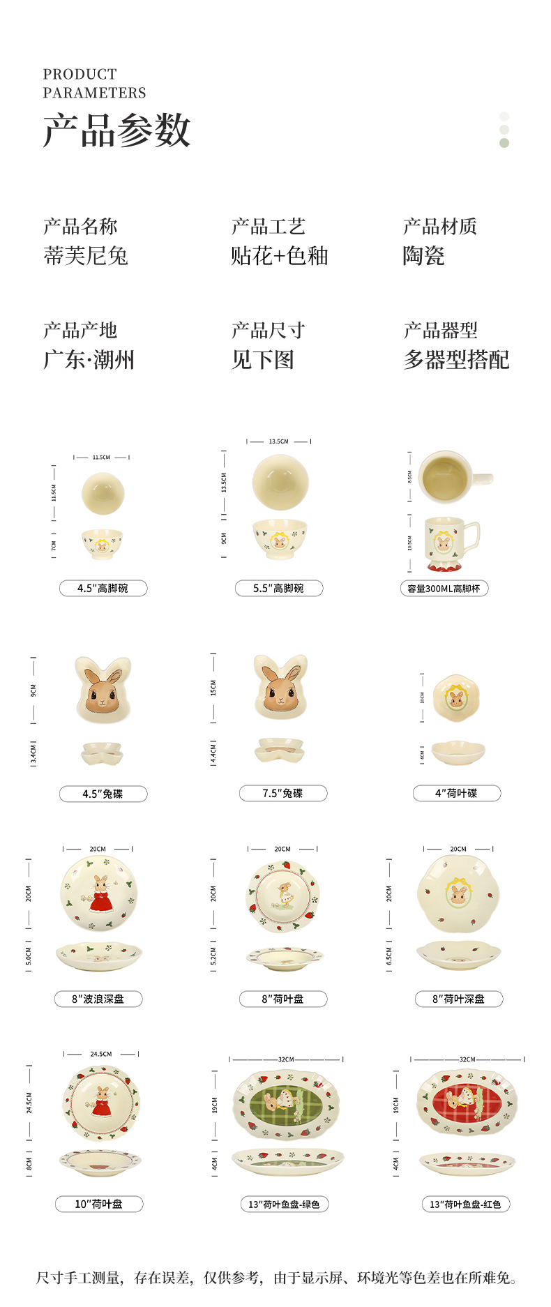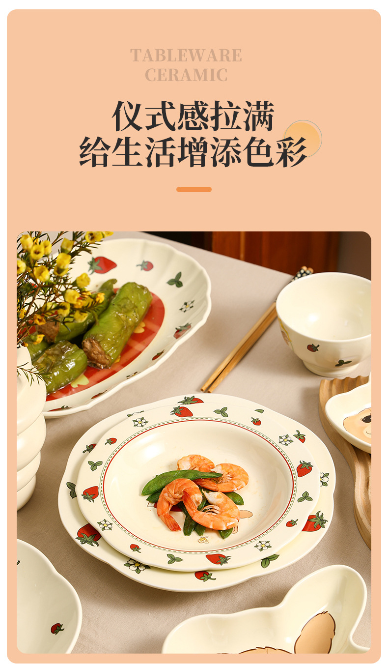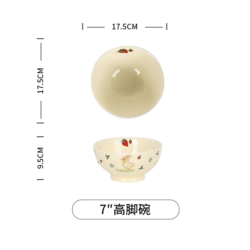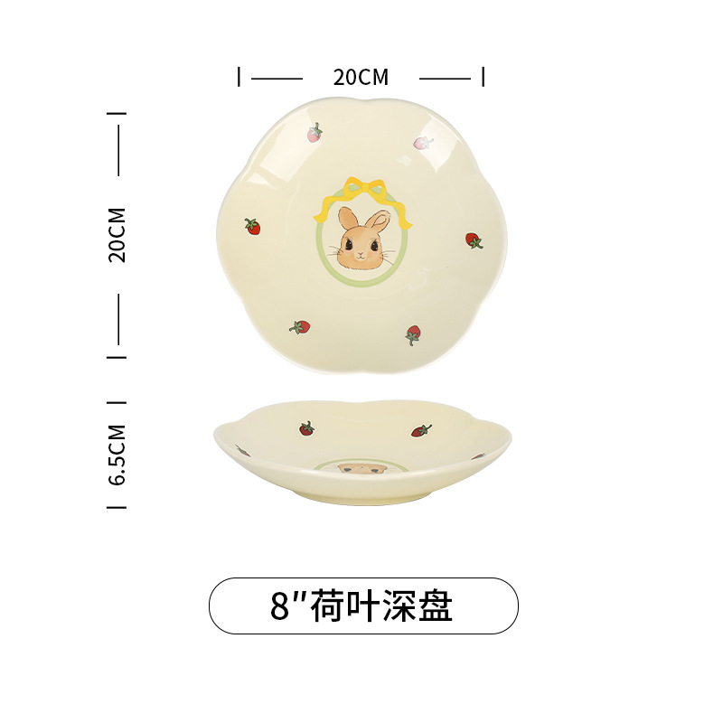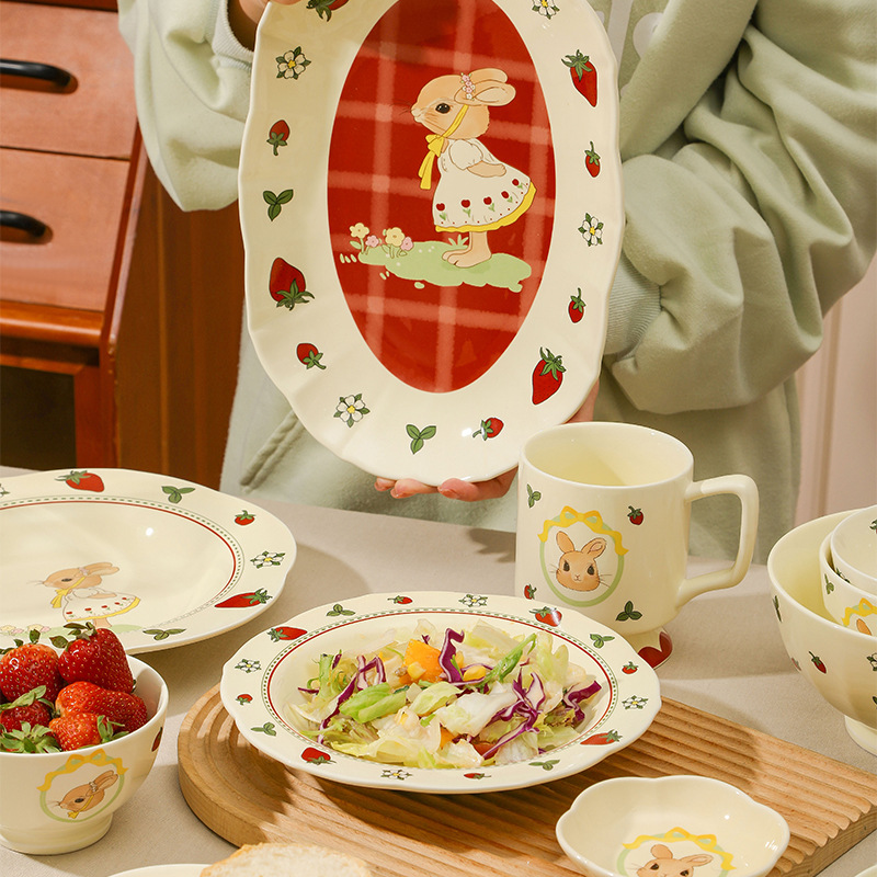 原创设计蒂芙尼兔陶瓷餐具碗盘子家用高颜值碗碟套装卡通儿童汤碗