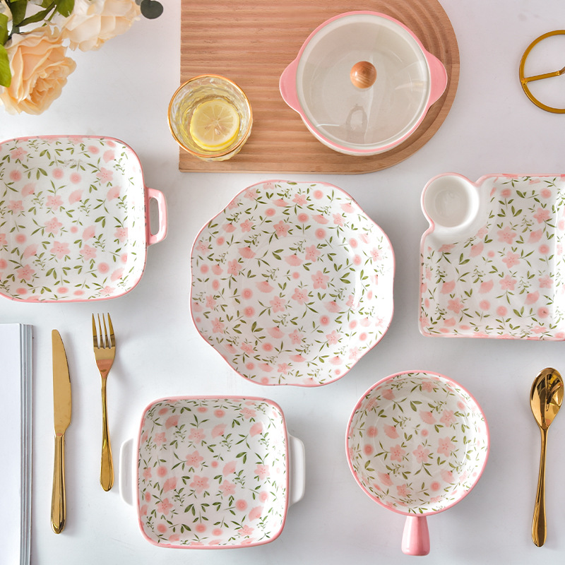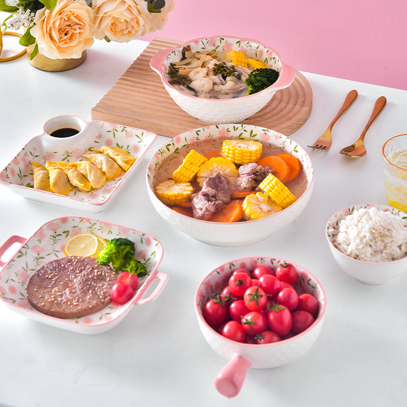 xiaohongshu creative ceramic bowl ins style cute dinnerware suit home instant noodle bowl soup bowl plate bowl dish wholesale