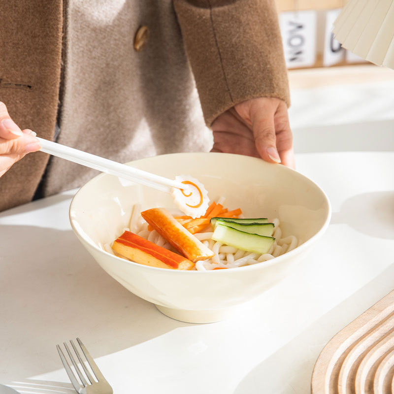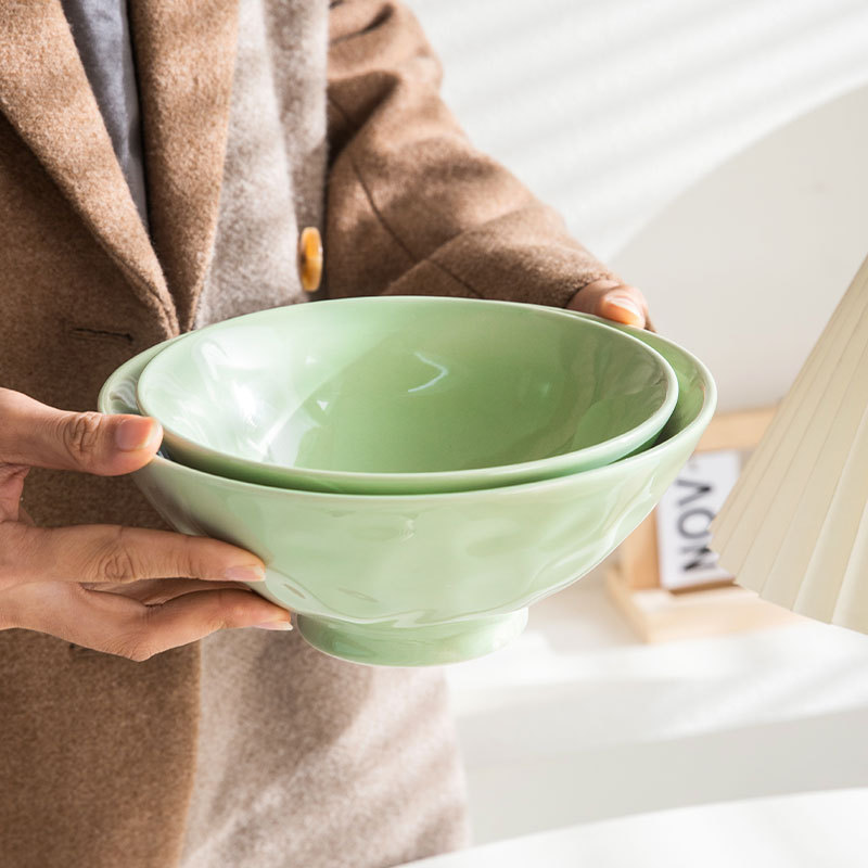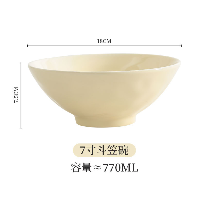 ins cream style good-looking ceramic bowl soup bowl household large rain-hat shaped bowl instant noodle bowl especially beautiful tableware