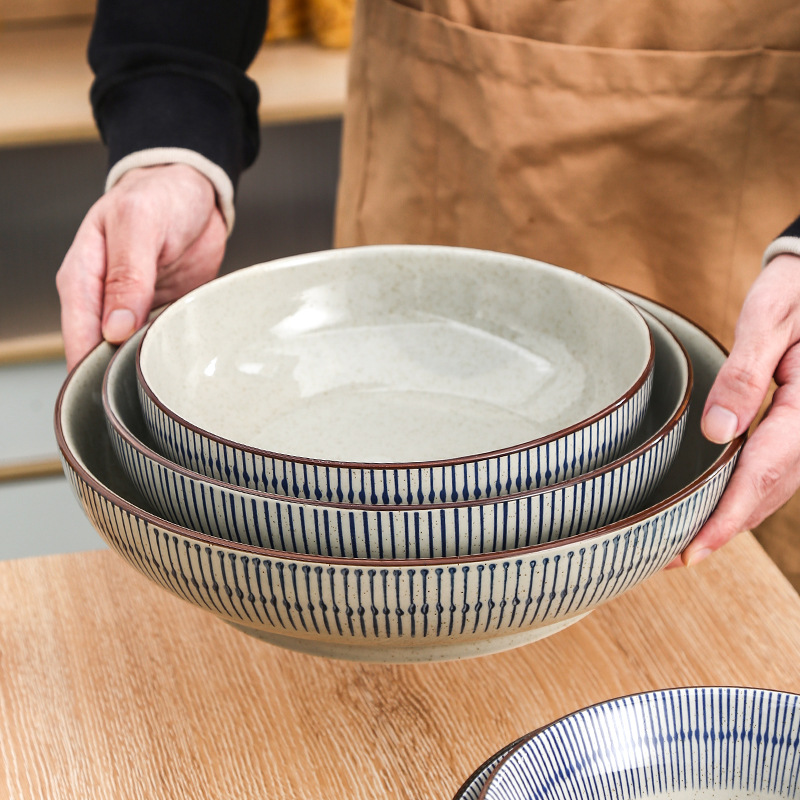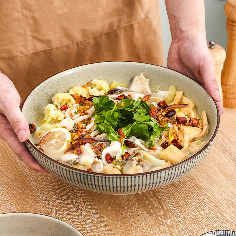 boiled fish with pickled cabbage and chili large basin bowl ceramic bowl dish household large bowl big soup bowl soup plate retro japanese style tableware set wholesale