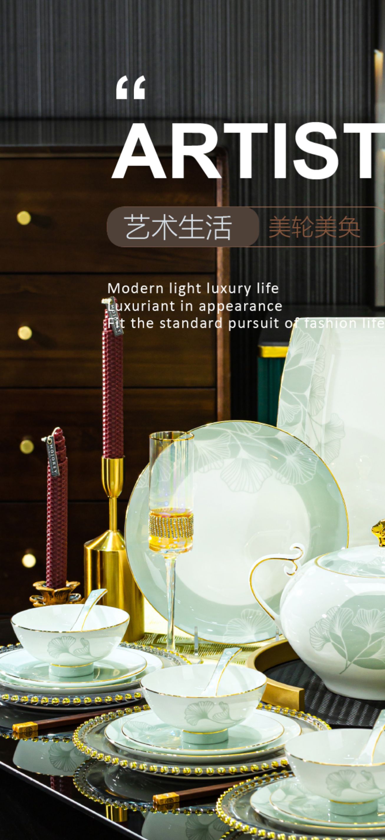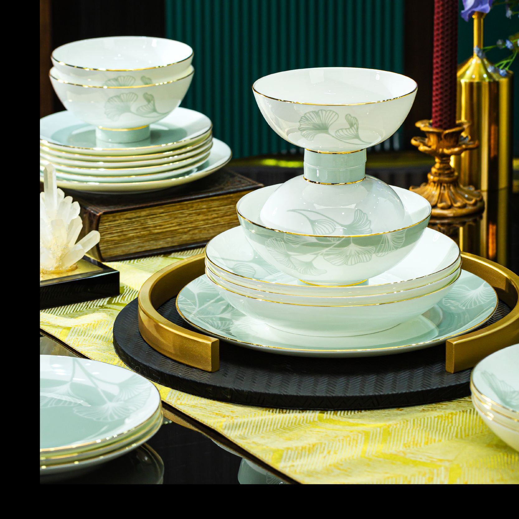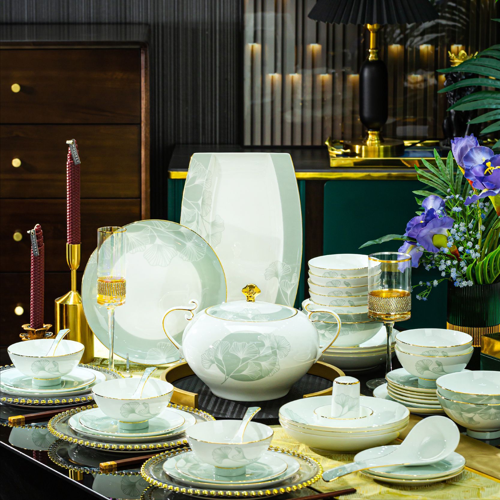 景德镇骨瓷餐具套装高端餐具套组家用碗碟盘组合新婚乔迁礼品批发