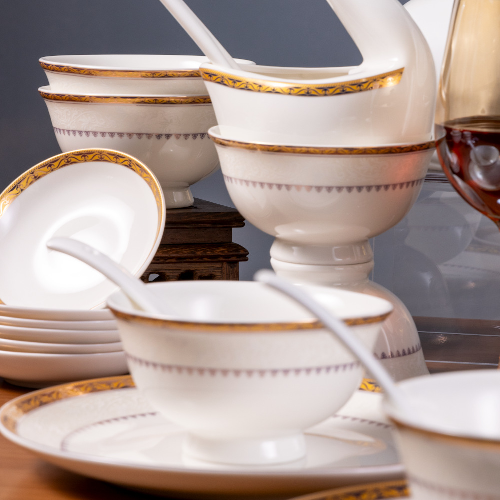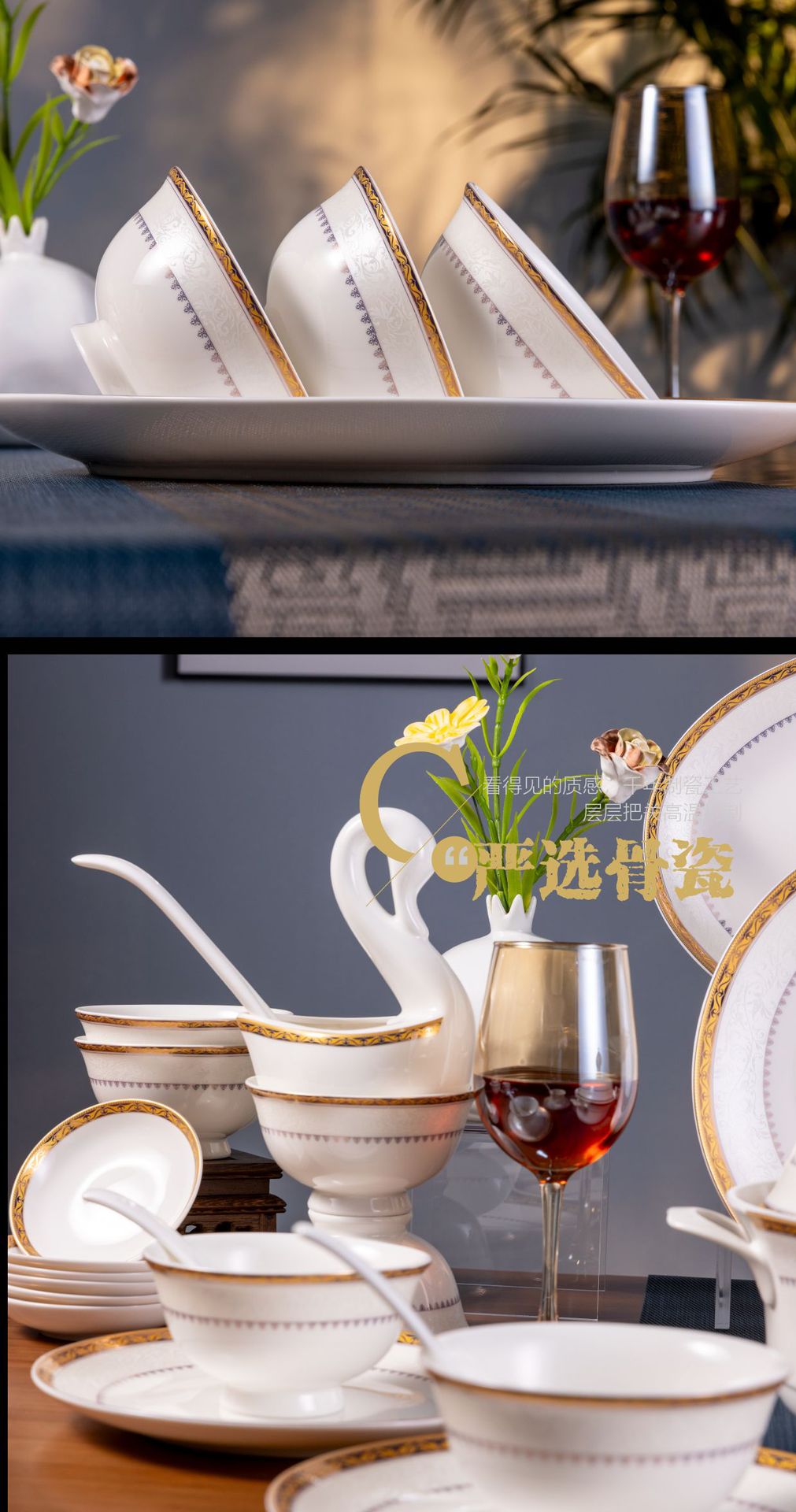 景德镇高端骨釉下瓷餐具礼品套装家用碗碟盘组合欧式餐具套组批发