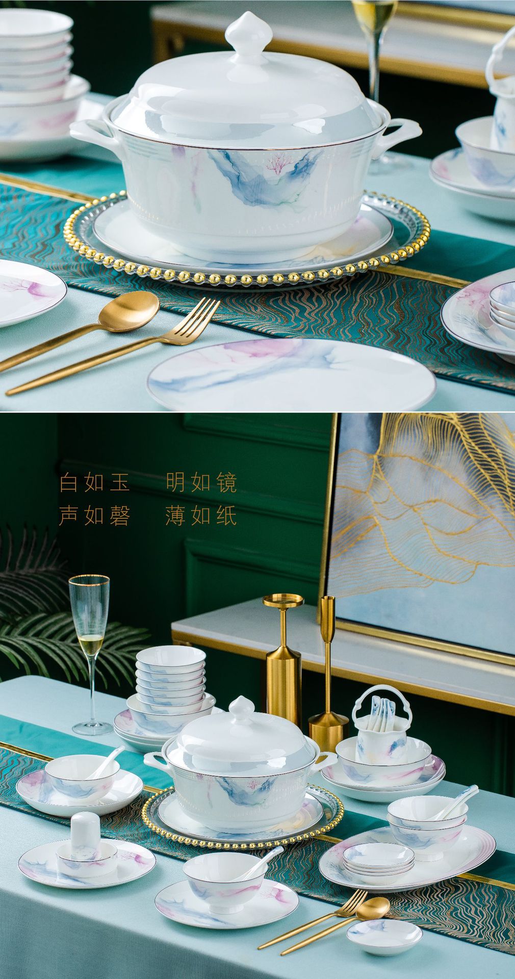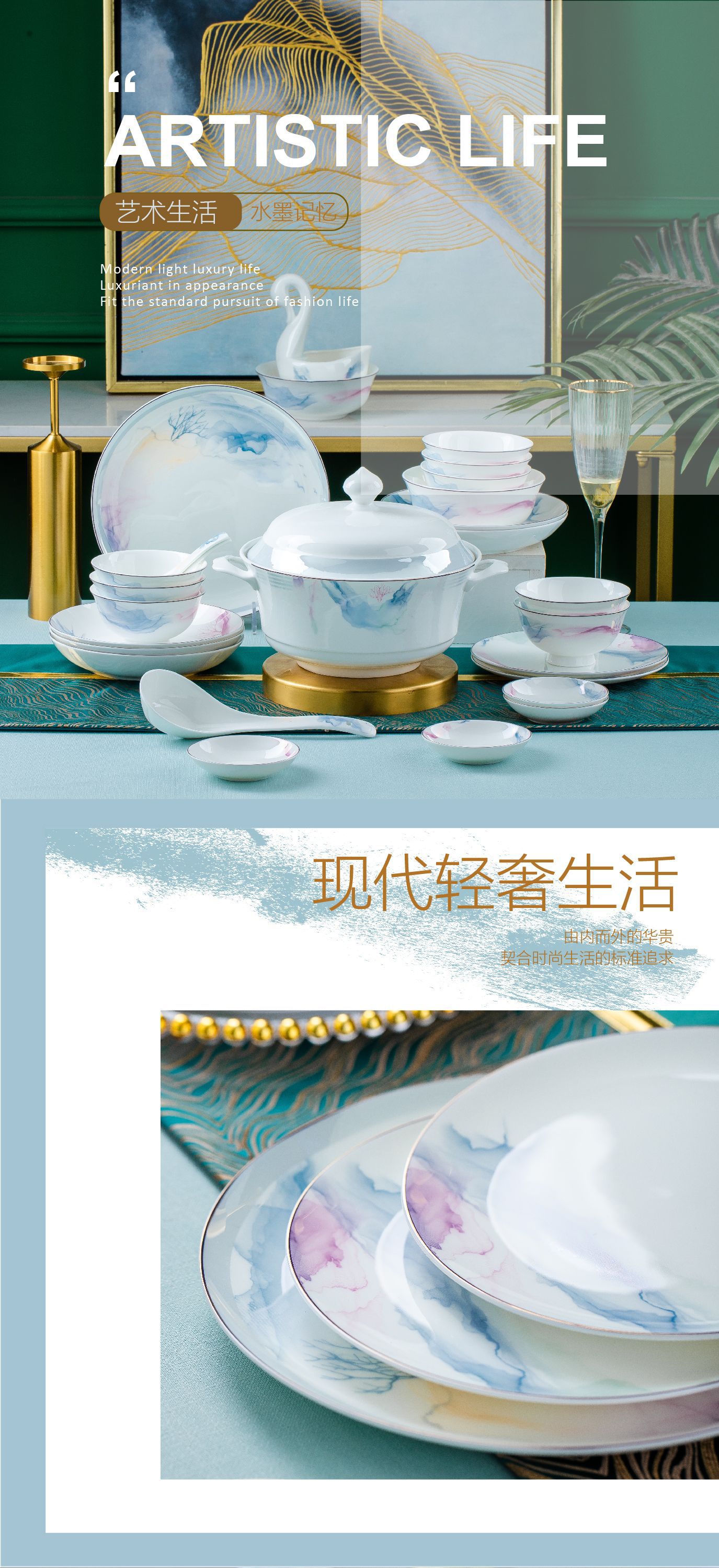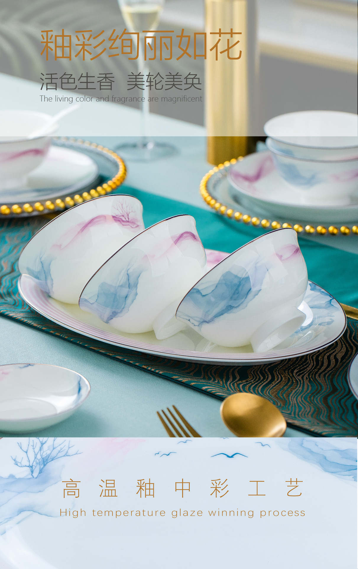 景德镇骨瓷餐具套装 家用现代简约陶瓷碗碟盘子套组乔迁礼品批发