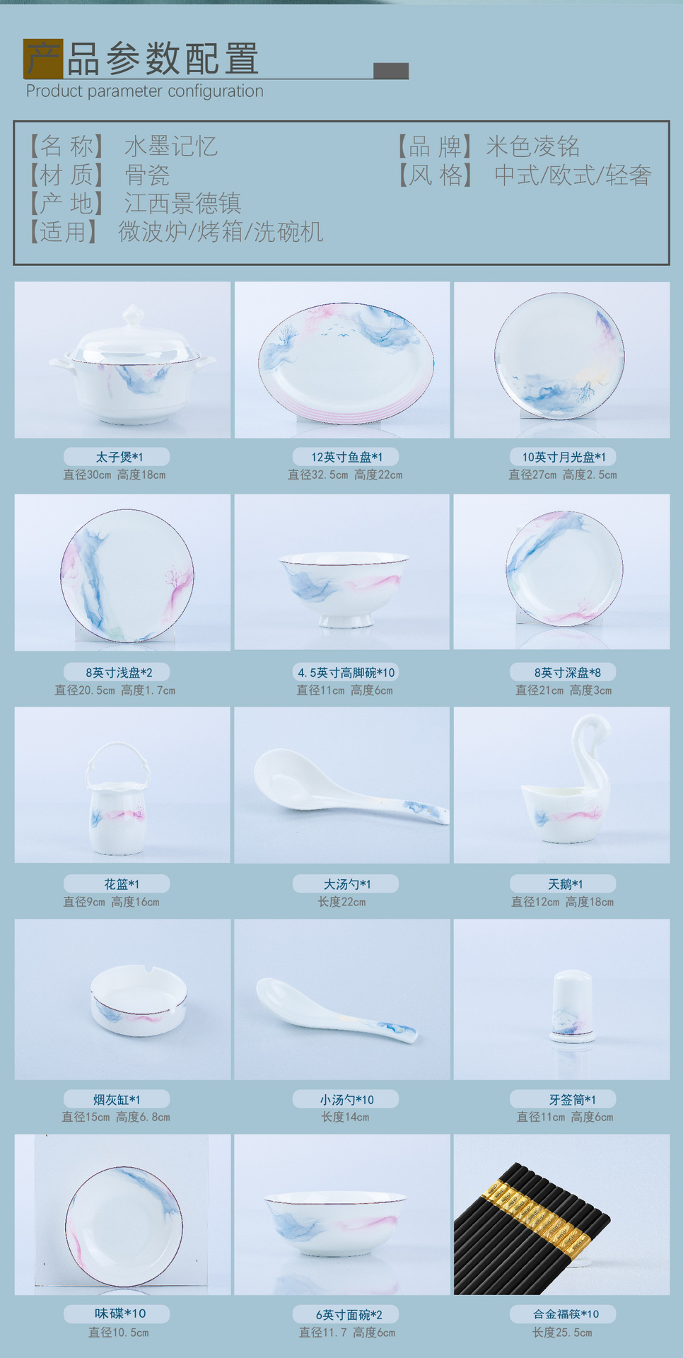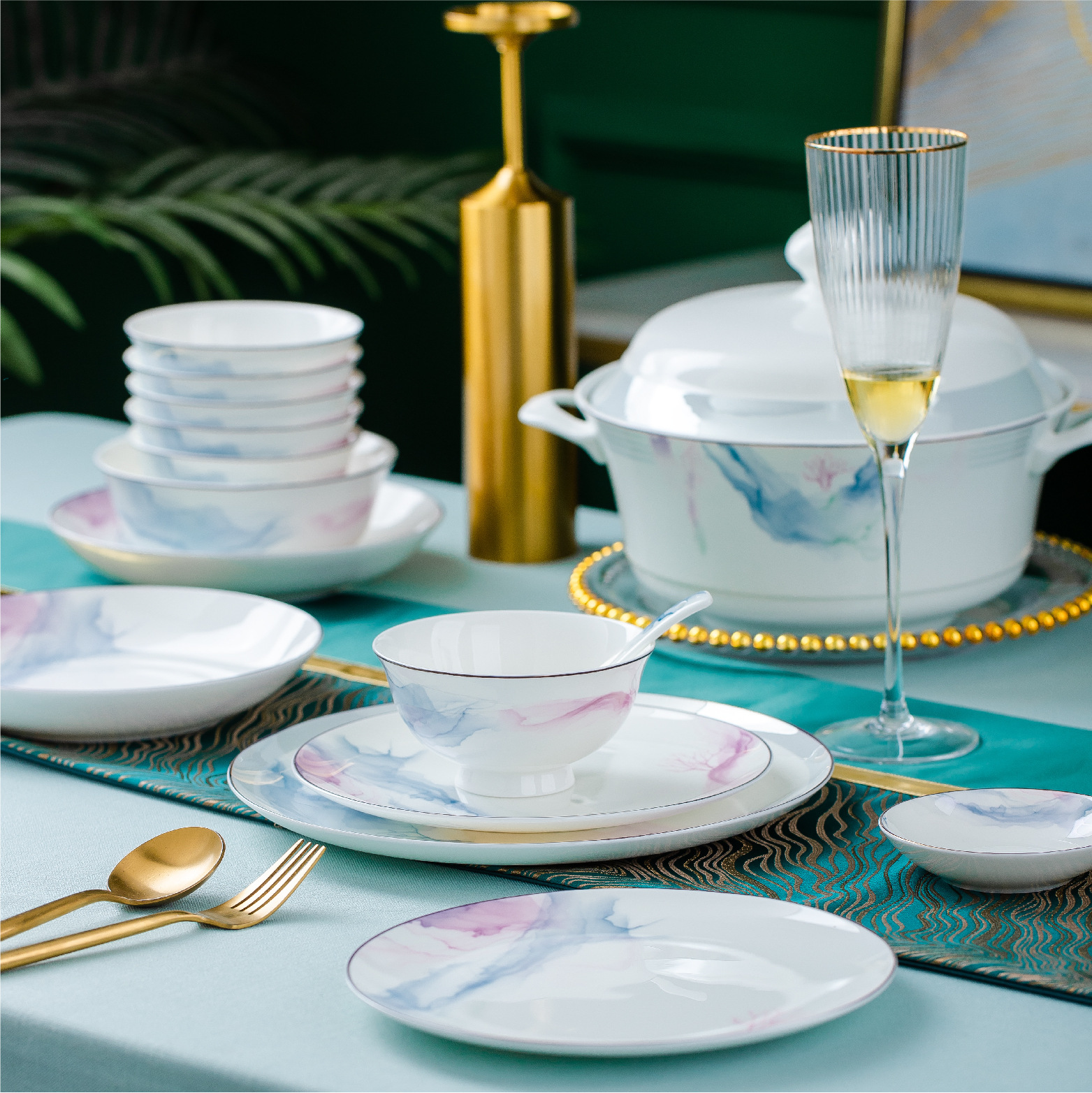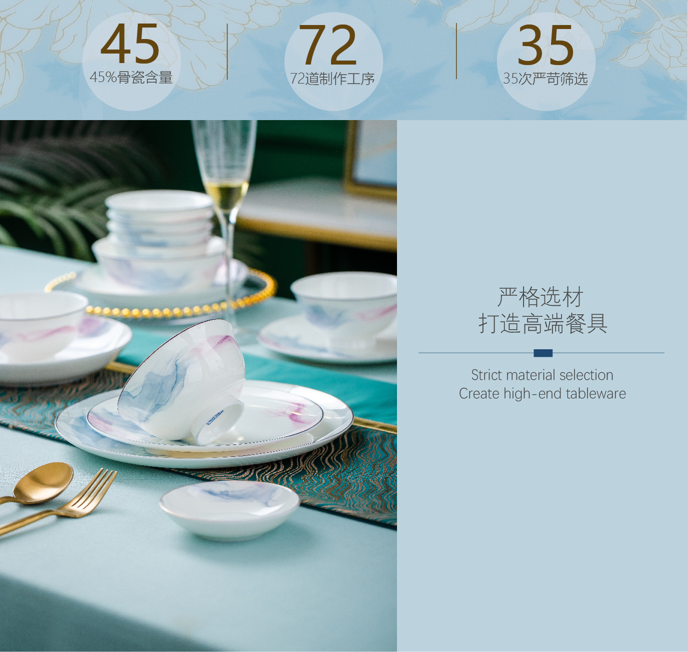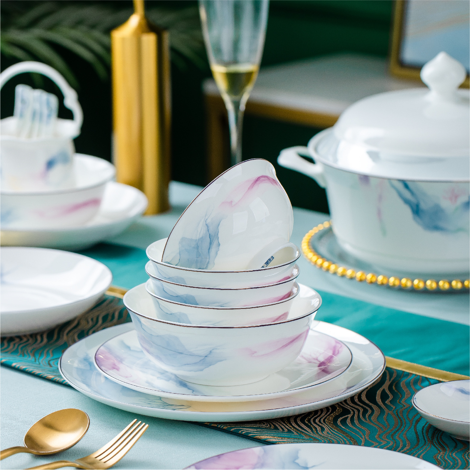 景德镇骨瓷餐具套装 家用现代简约陶瓷碗碟盘子套组乔迁礼品批发