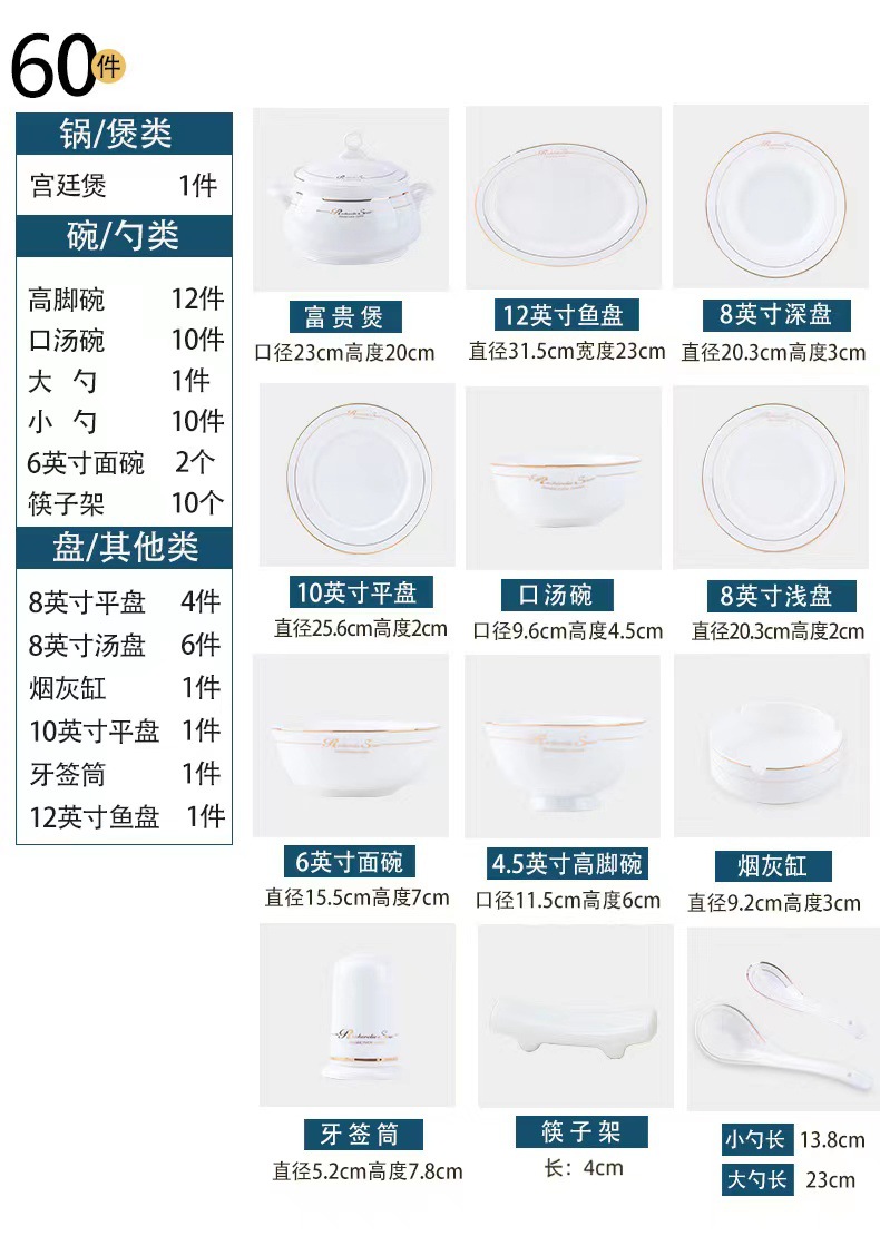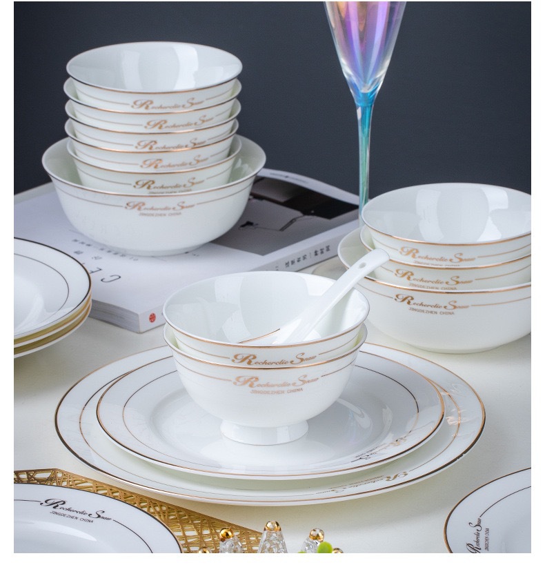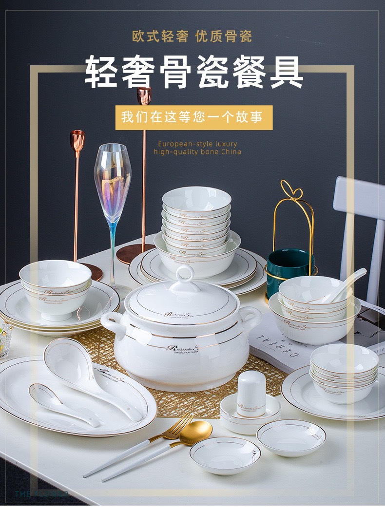 景德镇骨瓷餐具套装家用碗碟盘子套组乔迁轻奢餐具组合礼品批发