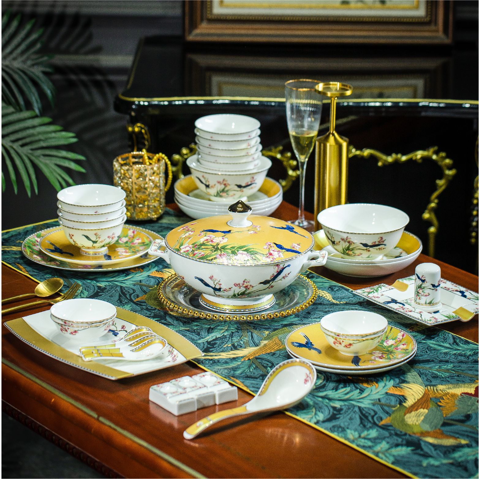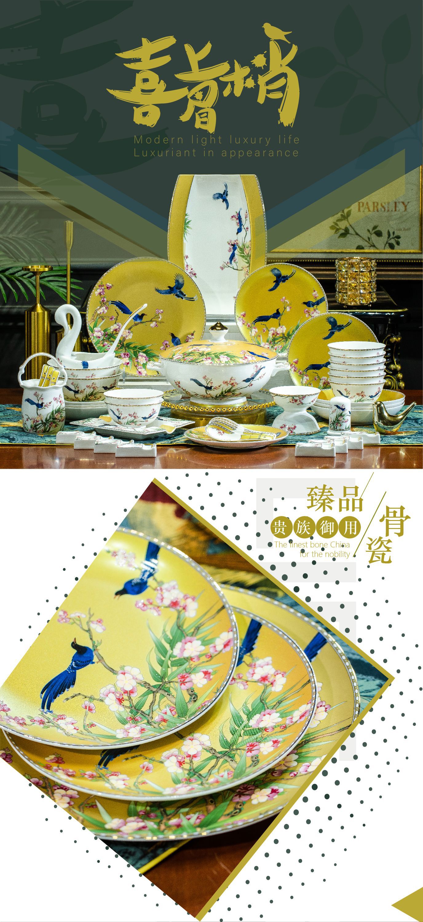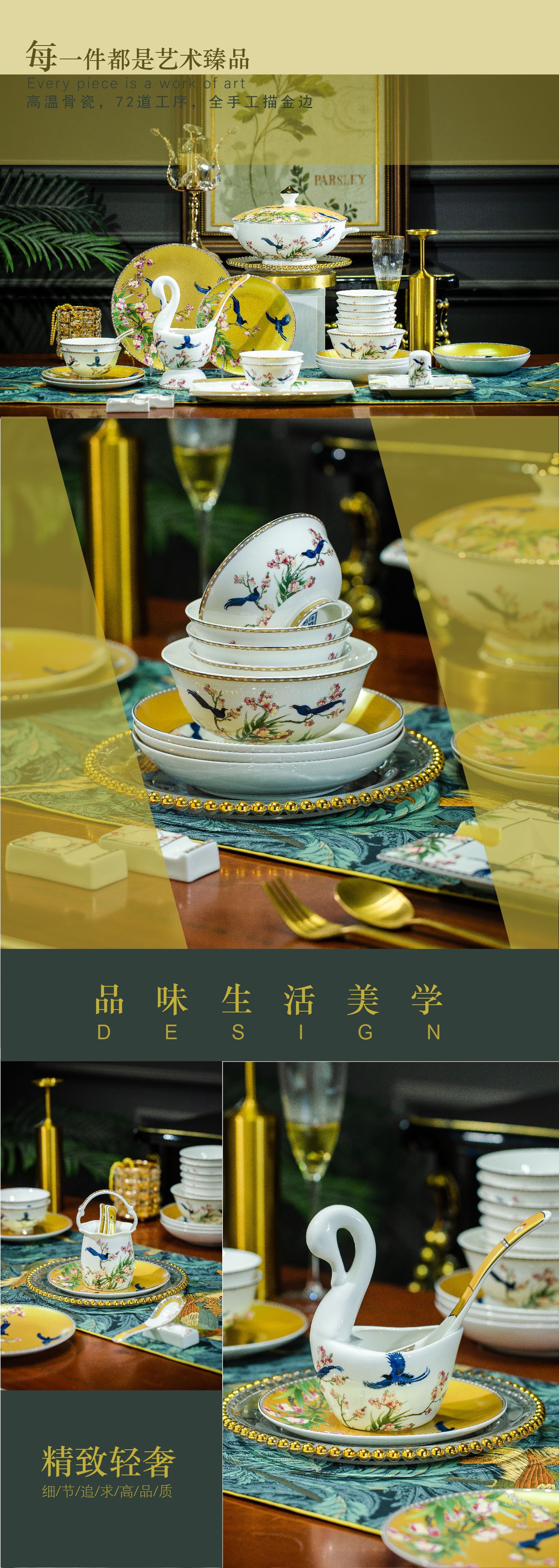 景德镇高端骨瓷餐具套装碗碟盘子批发乔迁新婚礼品家用餐具套装