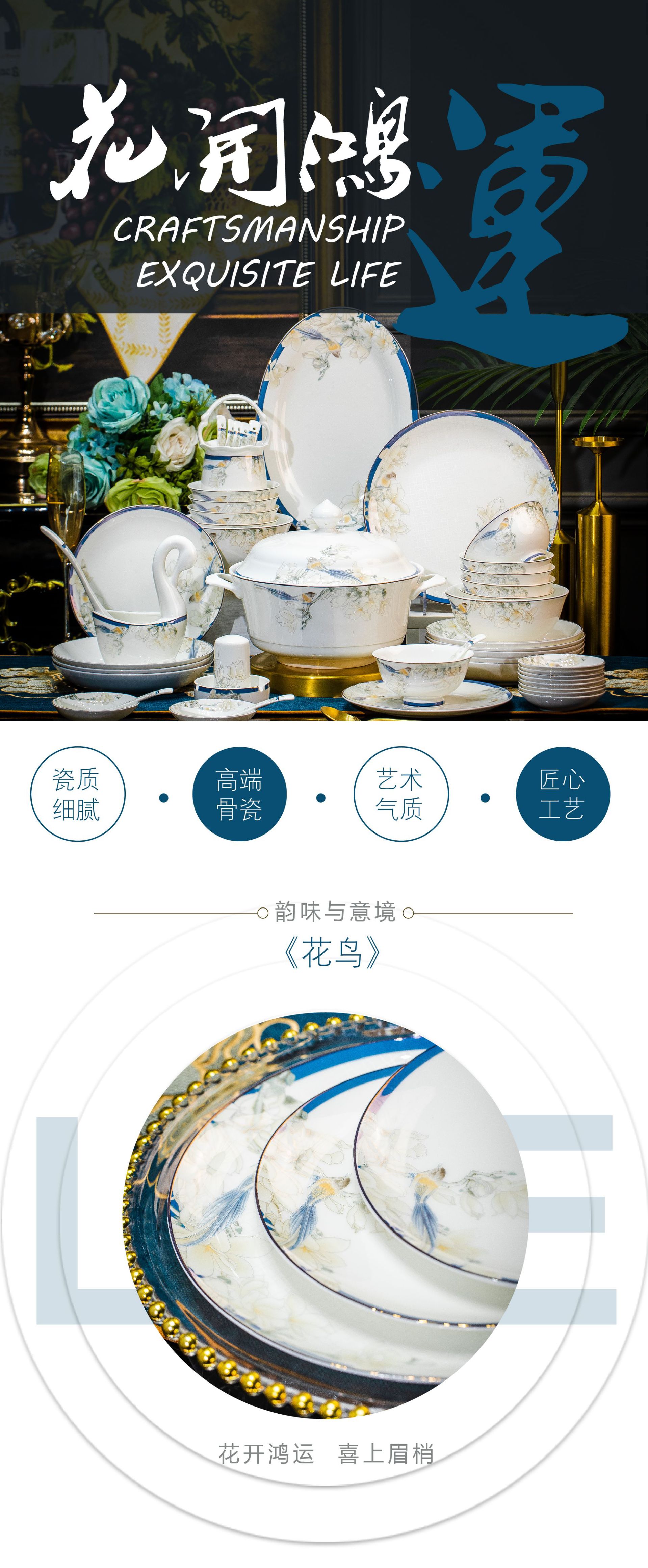碗碟套装家用简约欧式陶瓷碗盘子全套组合景德镇骨瓷餐具礼品批发