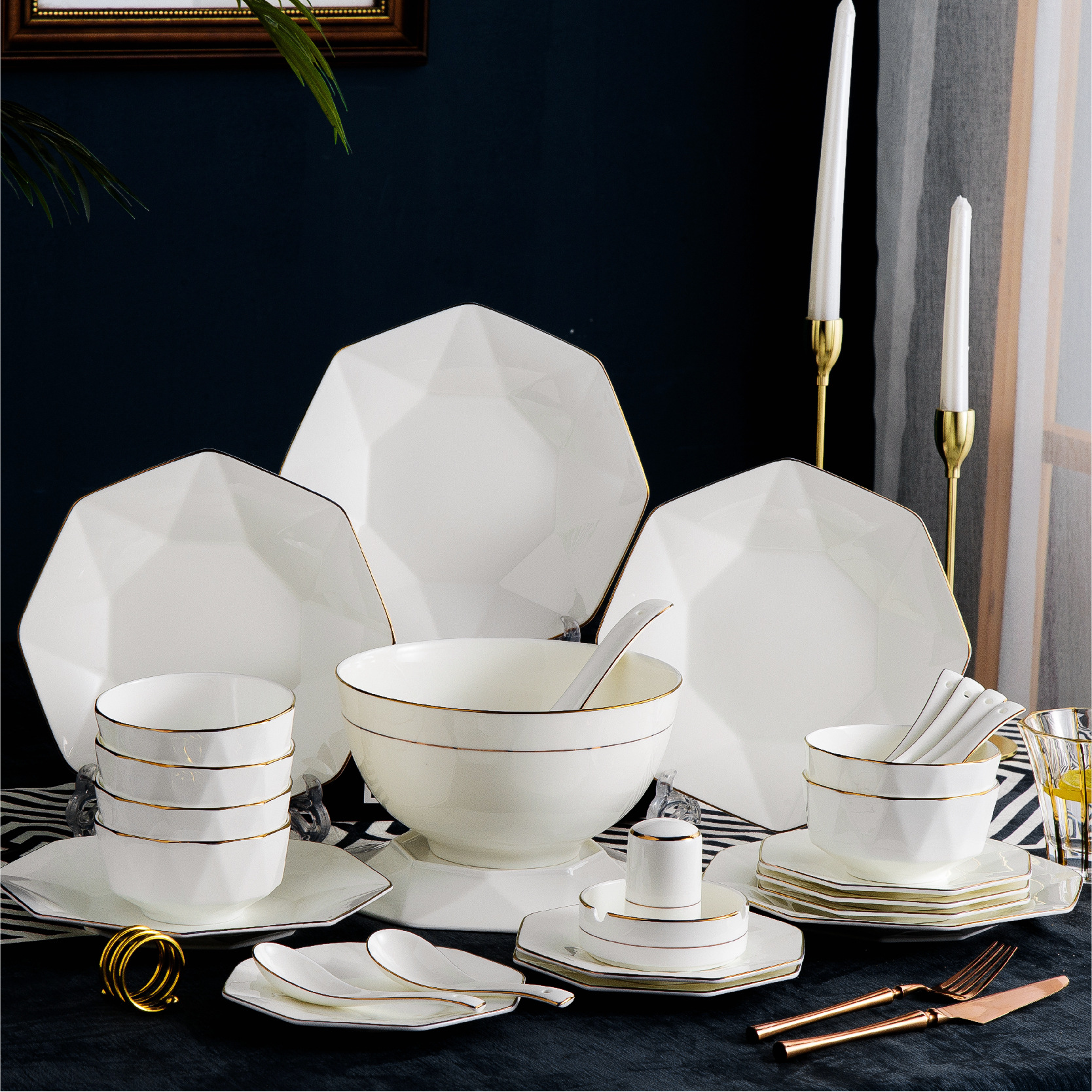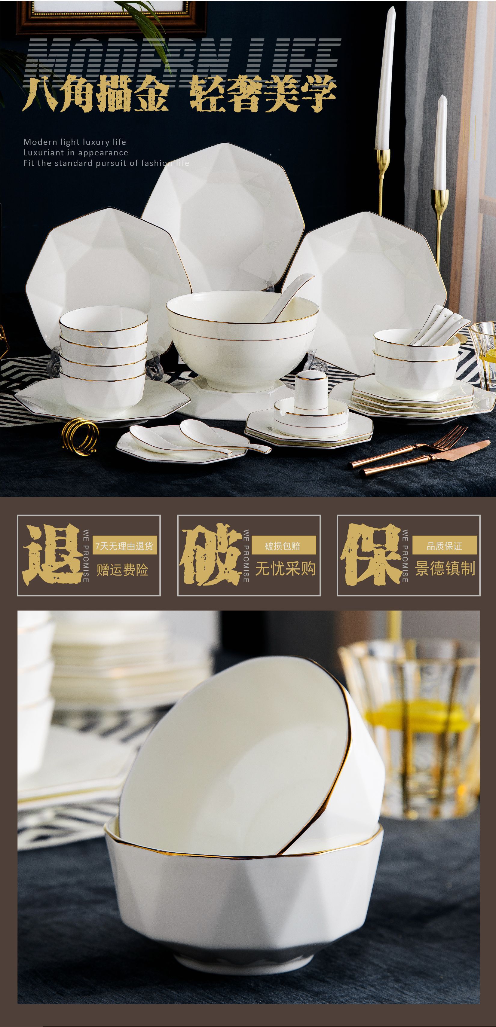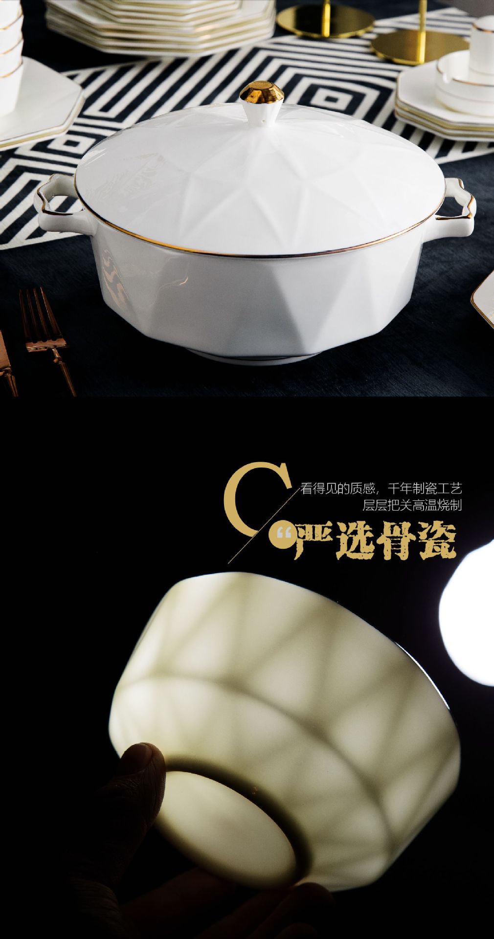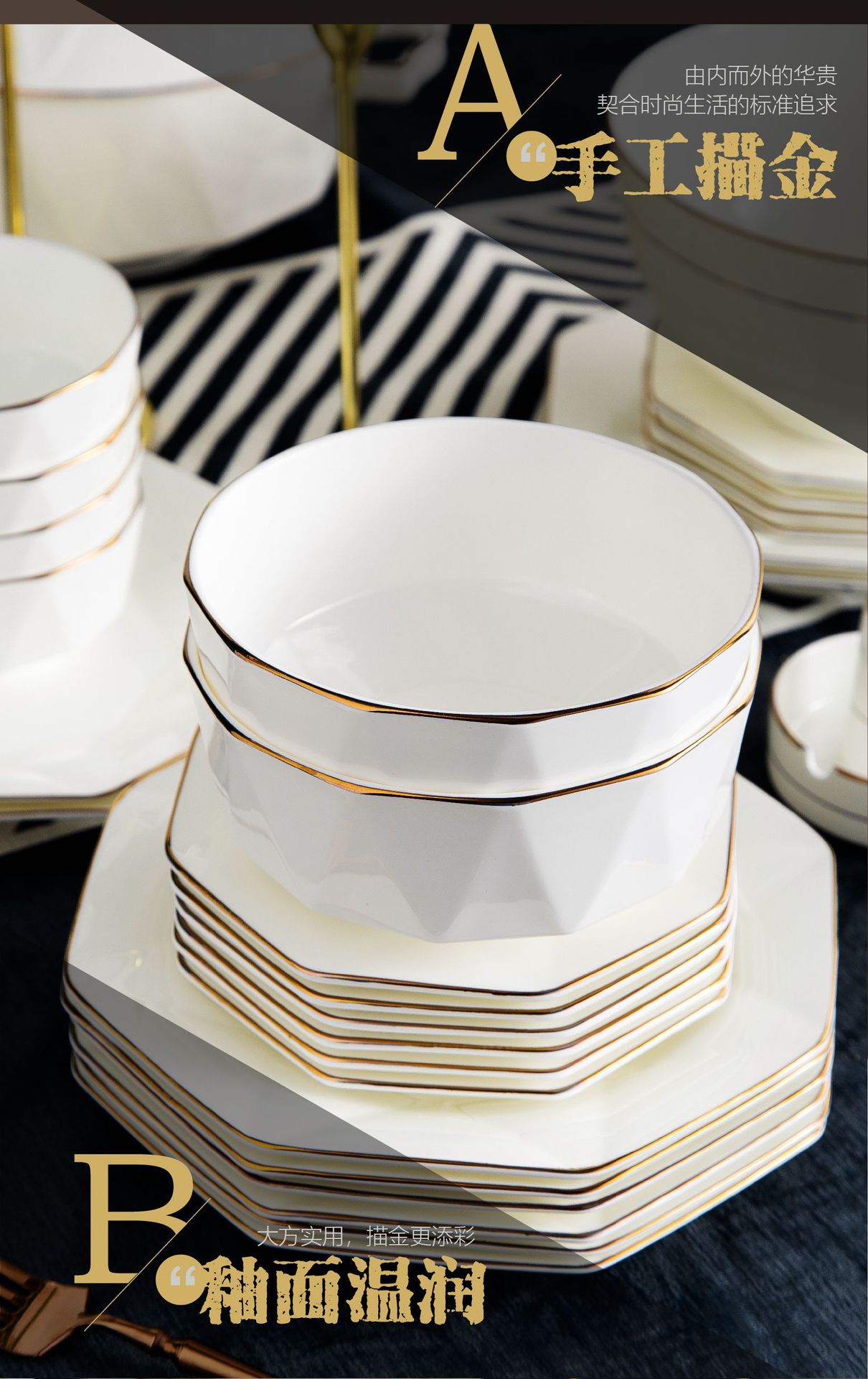 景德镇骨瓷餐具套装家用碗盘子组合轻奢简约乔迁陶瓷餐具套组