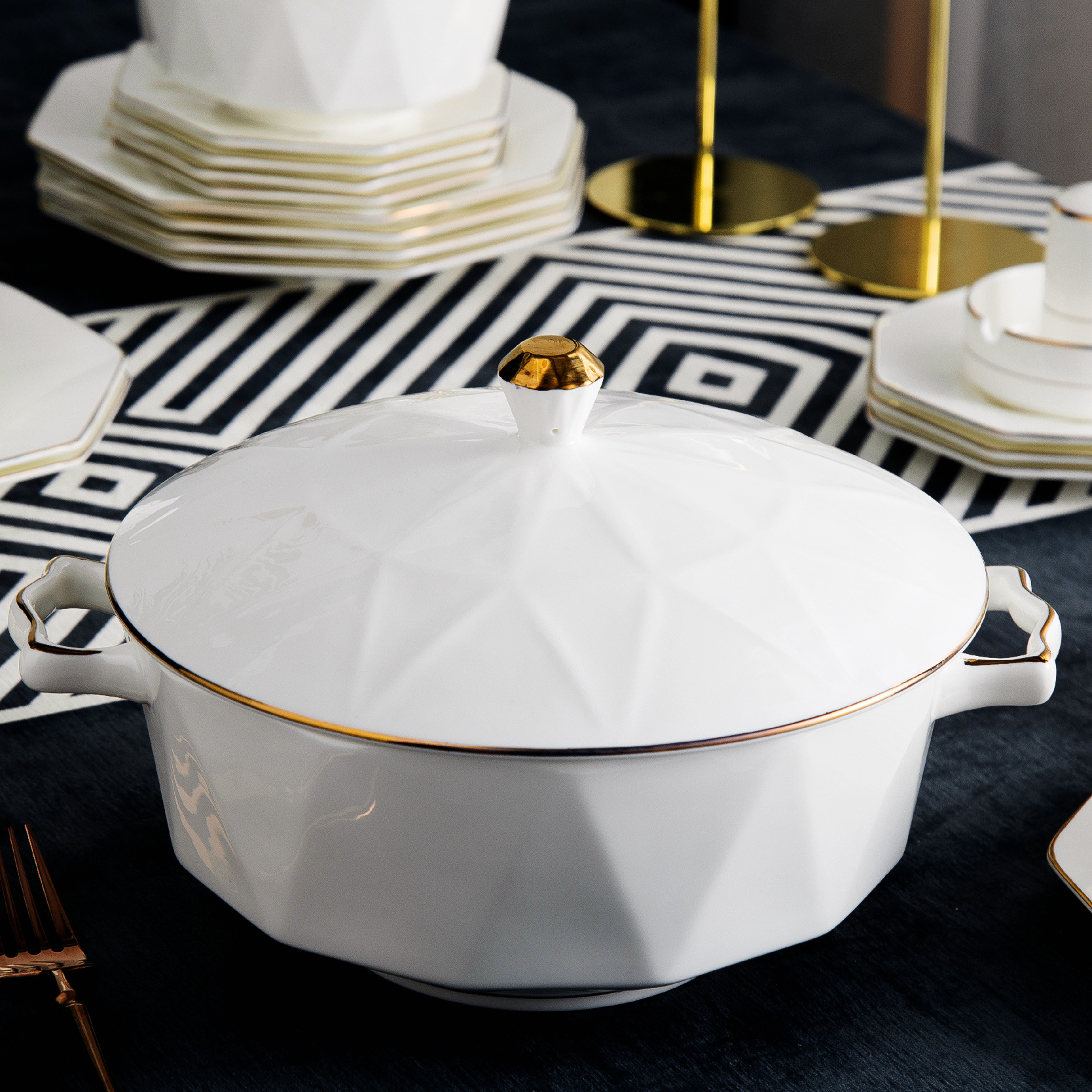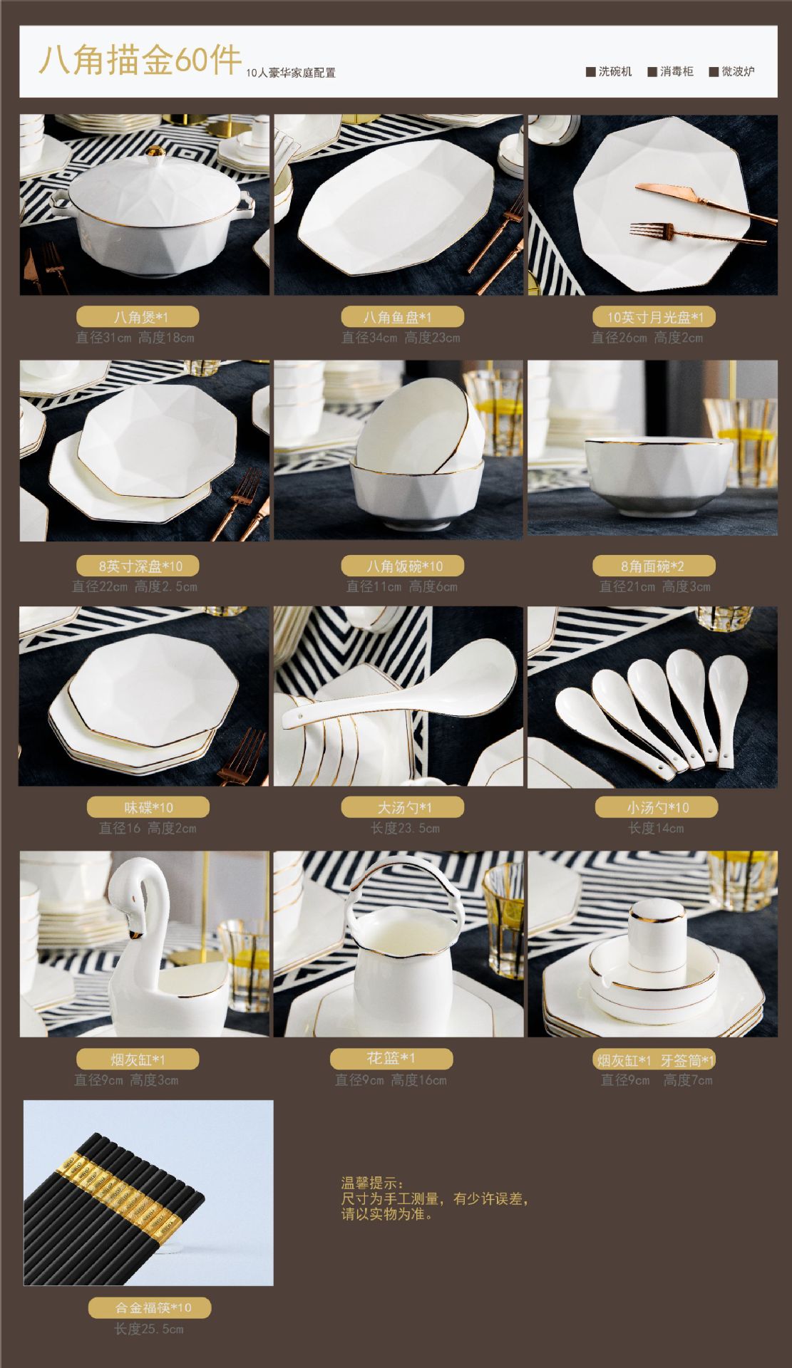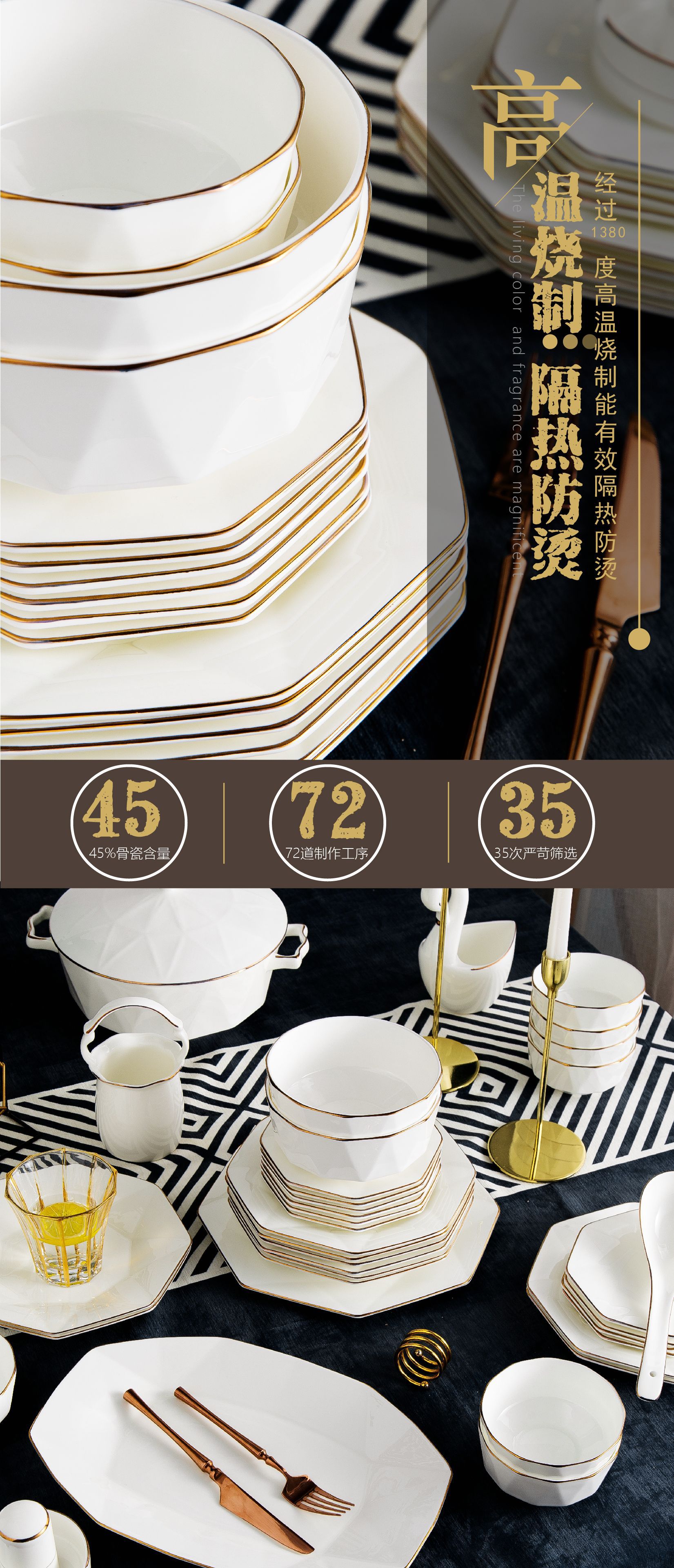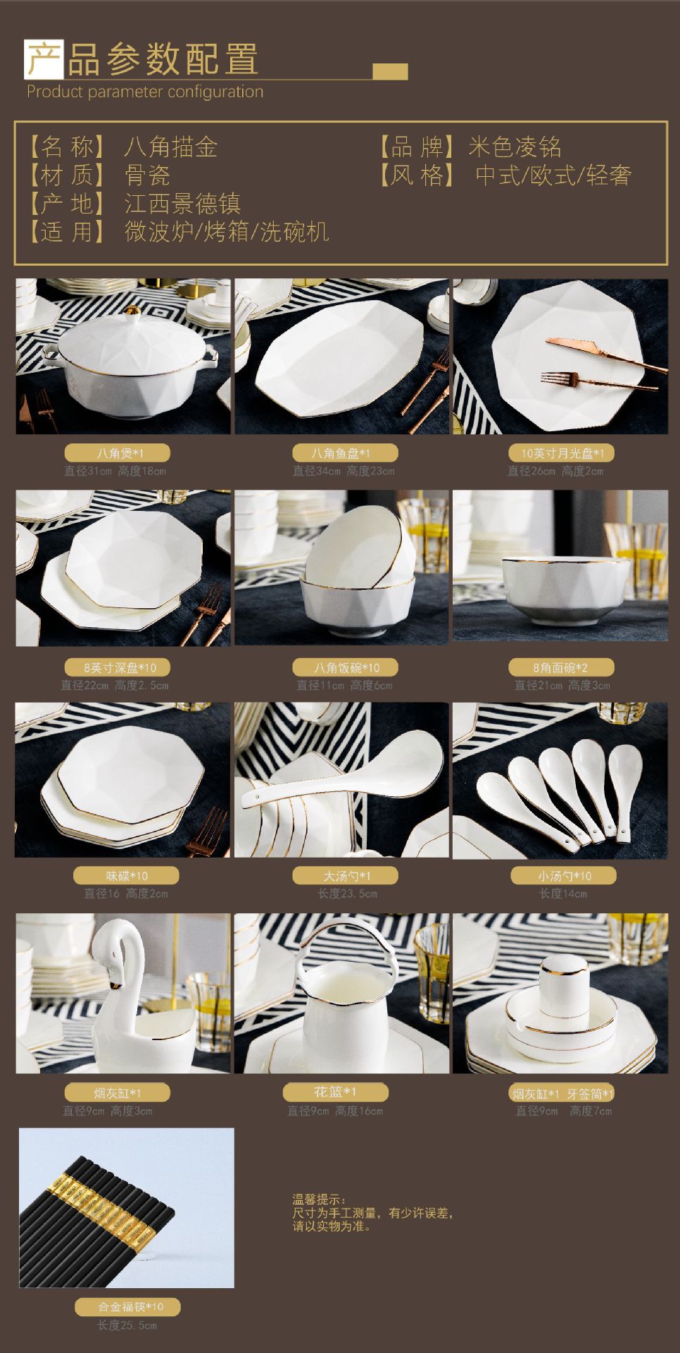 景德镇骨瓷餐具套装家用碗盘子组合轻奢简约乔迁陶瓷餐具套组