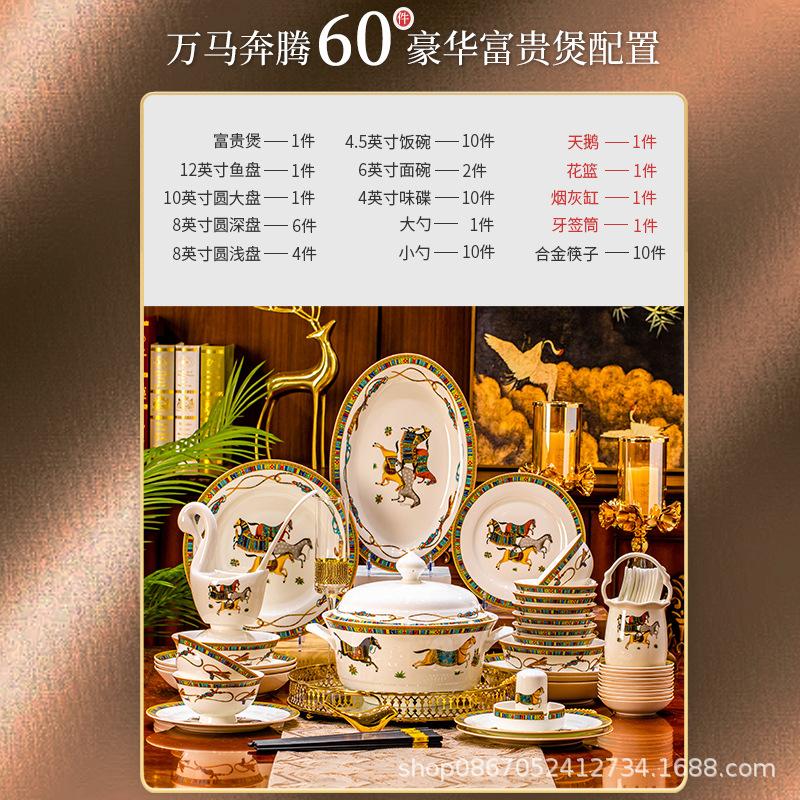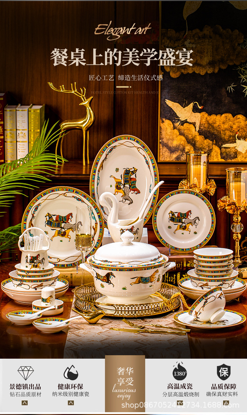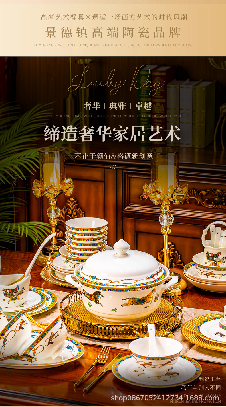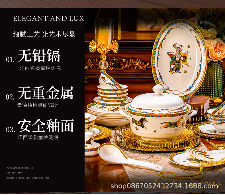 碗碟餐具套装公司礼品批发景德镇陶瓷碗骨瓷餐具欧式碗盘家用送礼