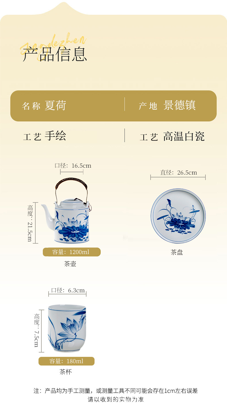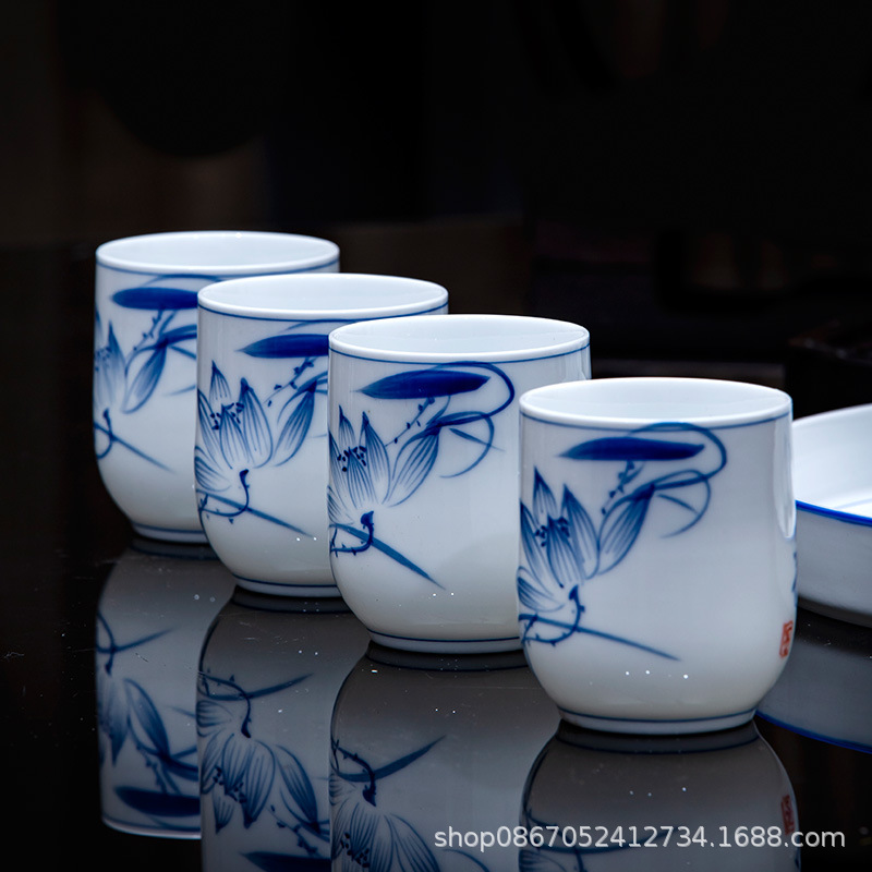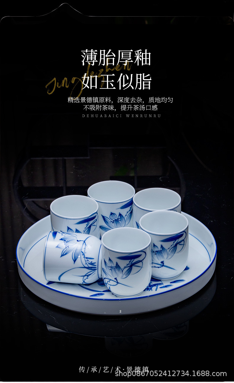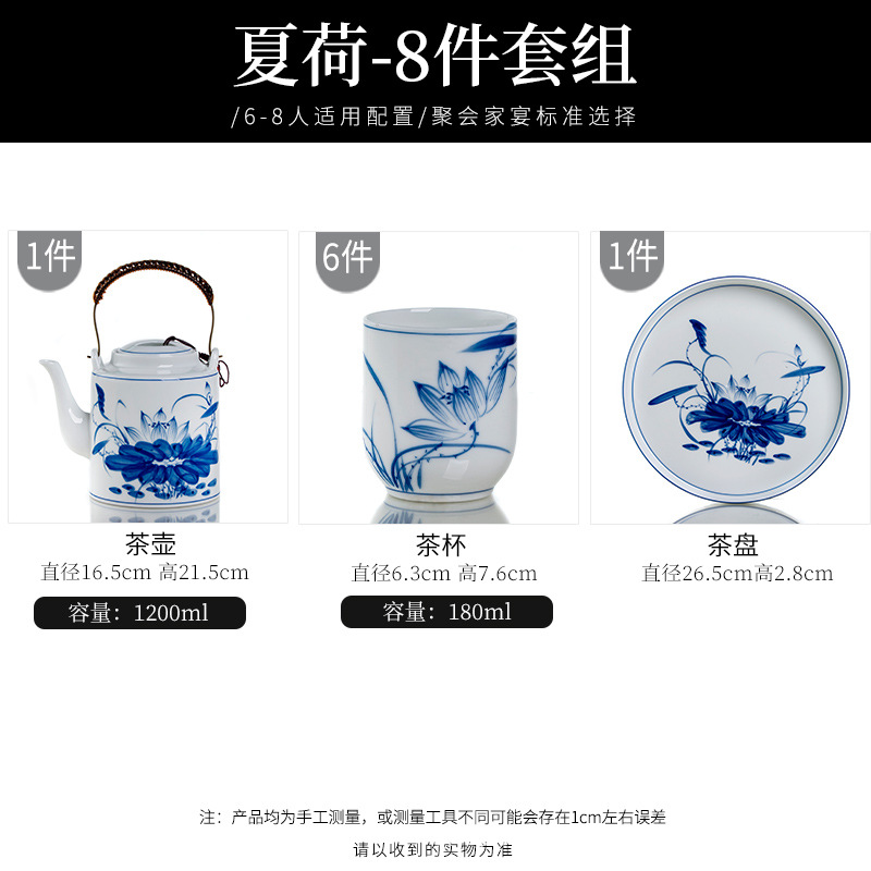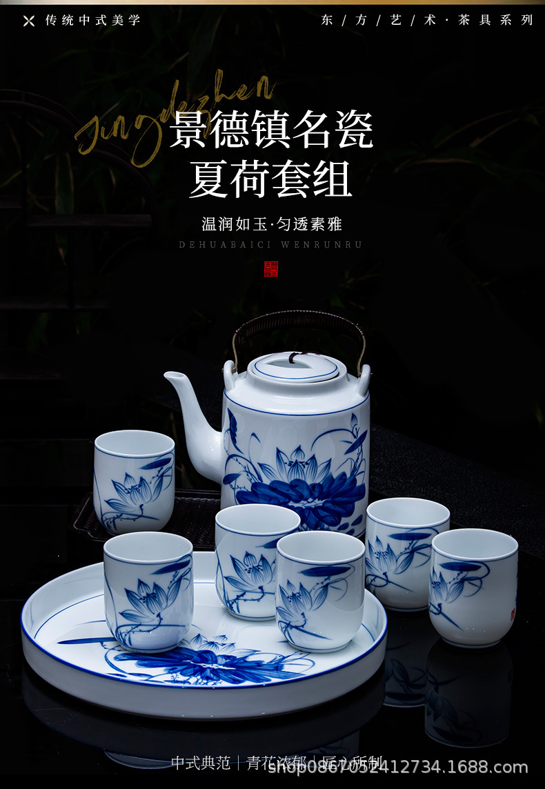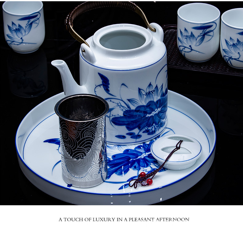 手绘青花瓷茶具套装家用会客办公中式景德镇陶瓷提梁茶壶茶杯批发