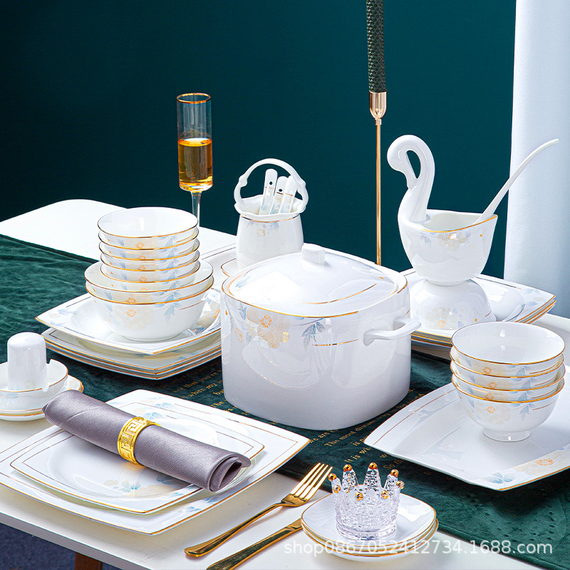 碗盘碗筷批发 景德镇陶瓷骨瓷家用餐具轻奢碗盘饭碗面碗餐具礼品