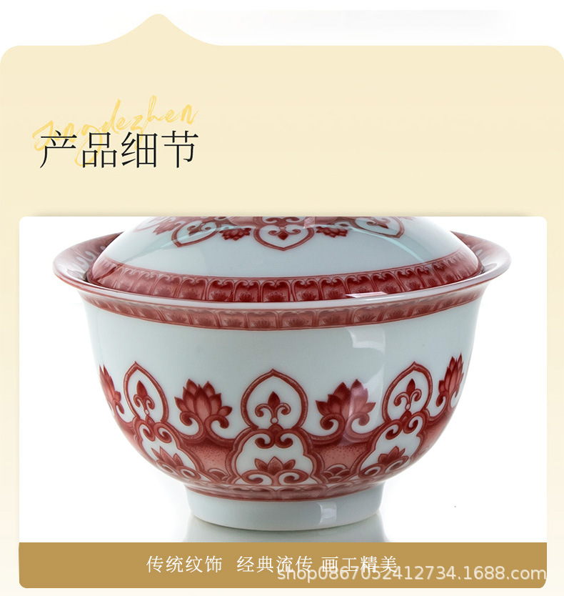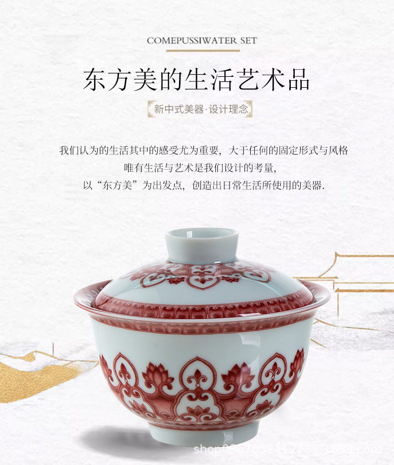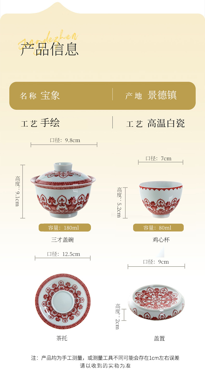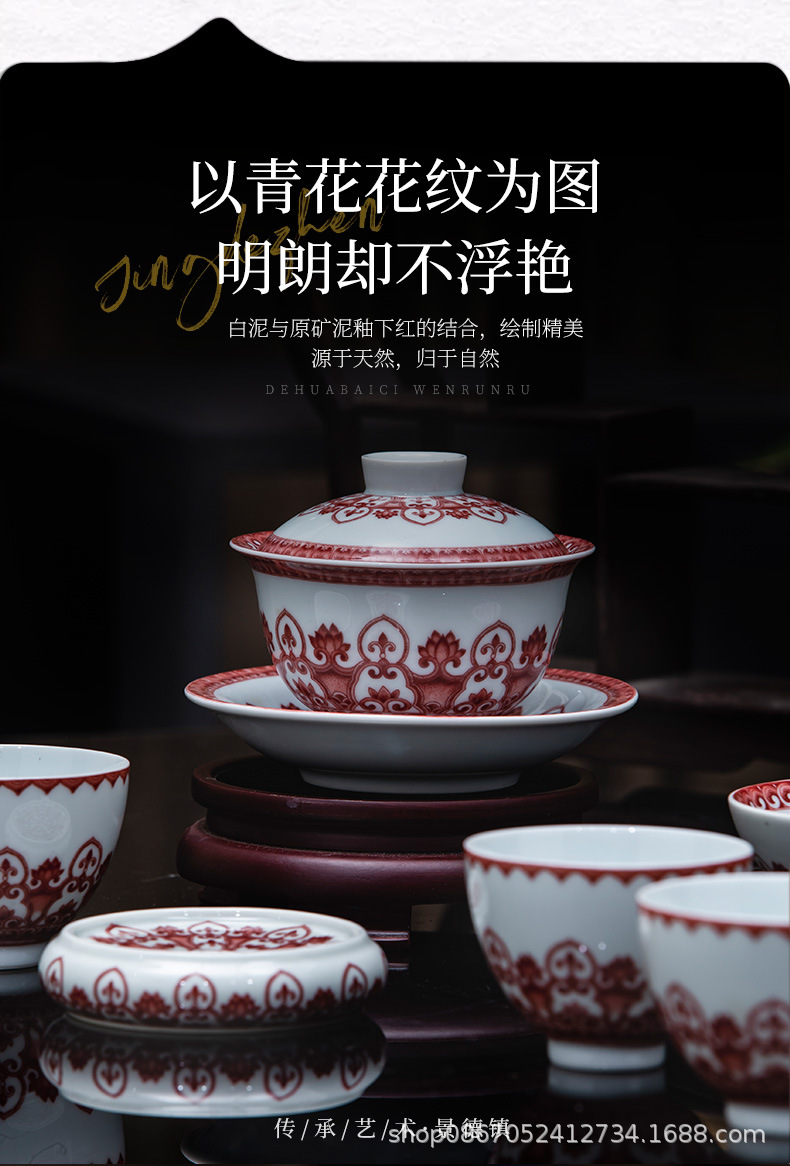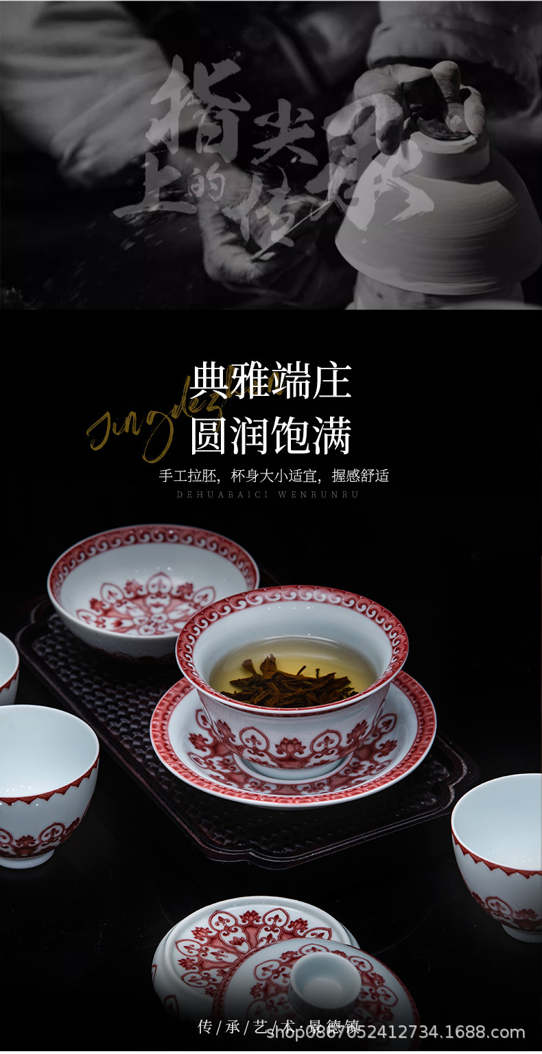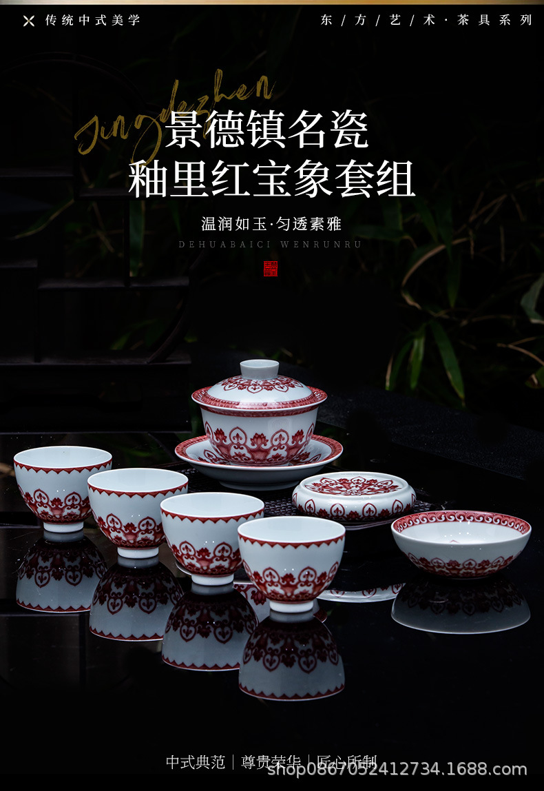 景德镇釉里红宝象手工仿古功夫茶具批发礼品三才盖碗高端不烫手