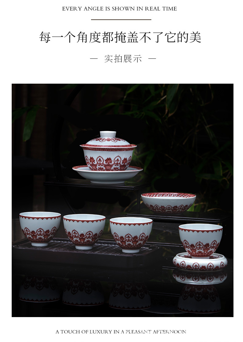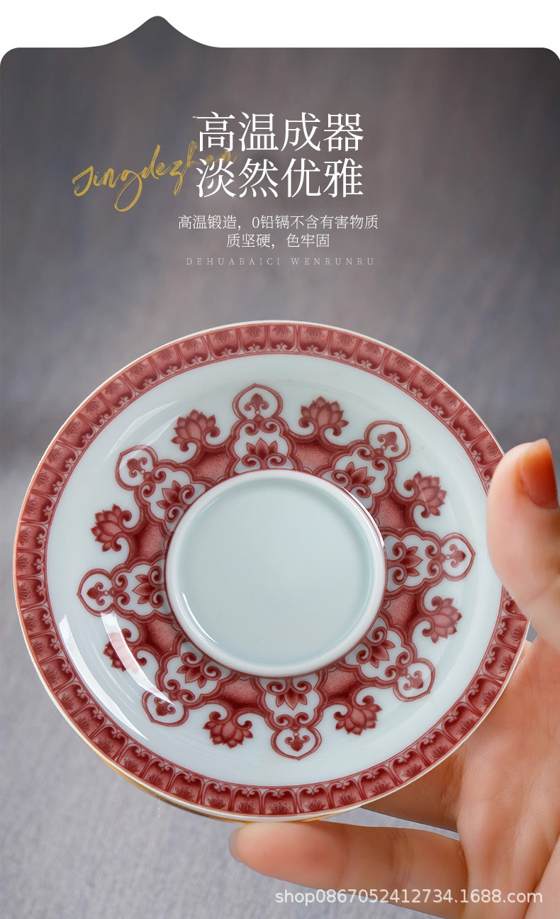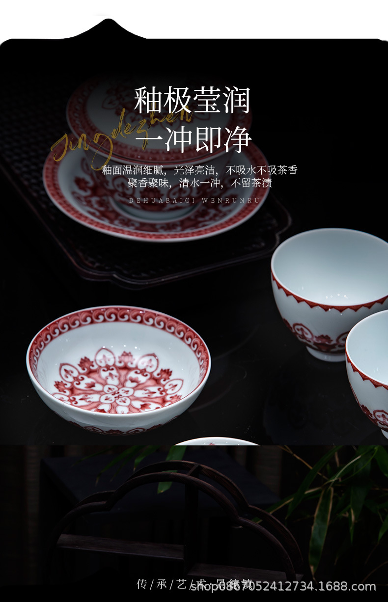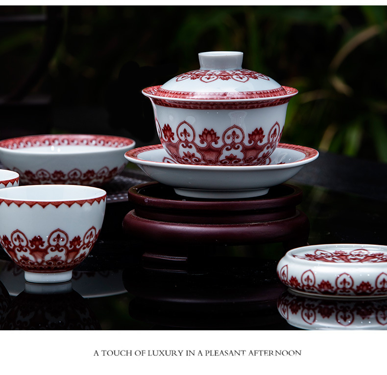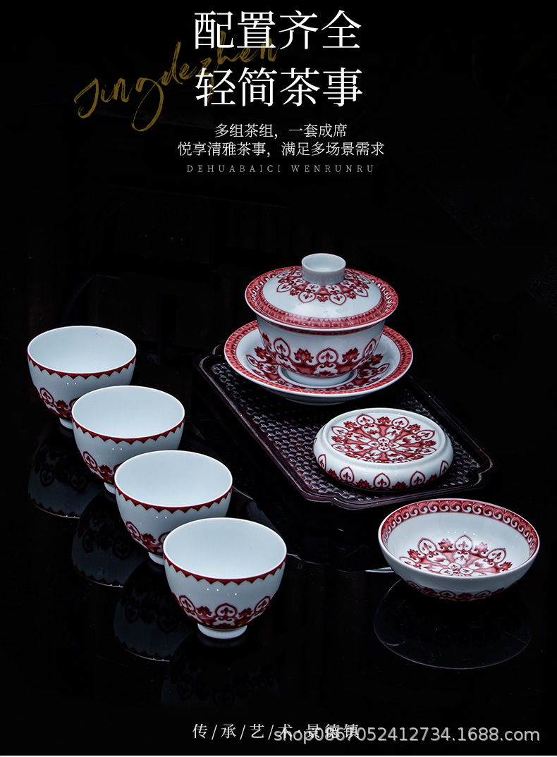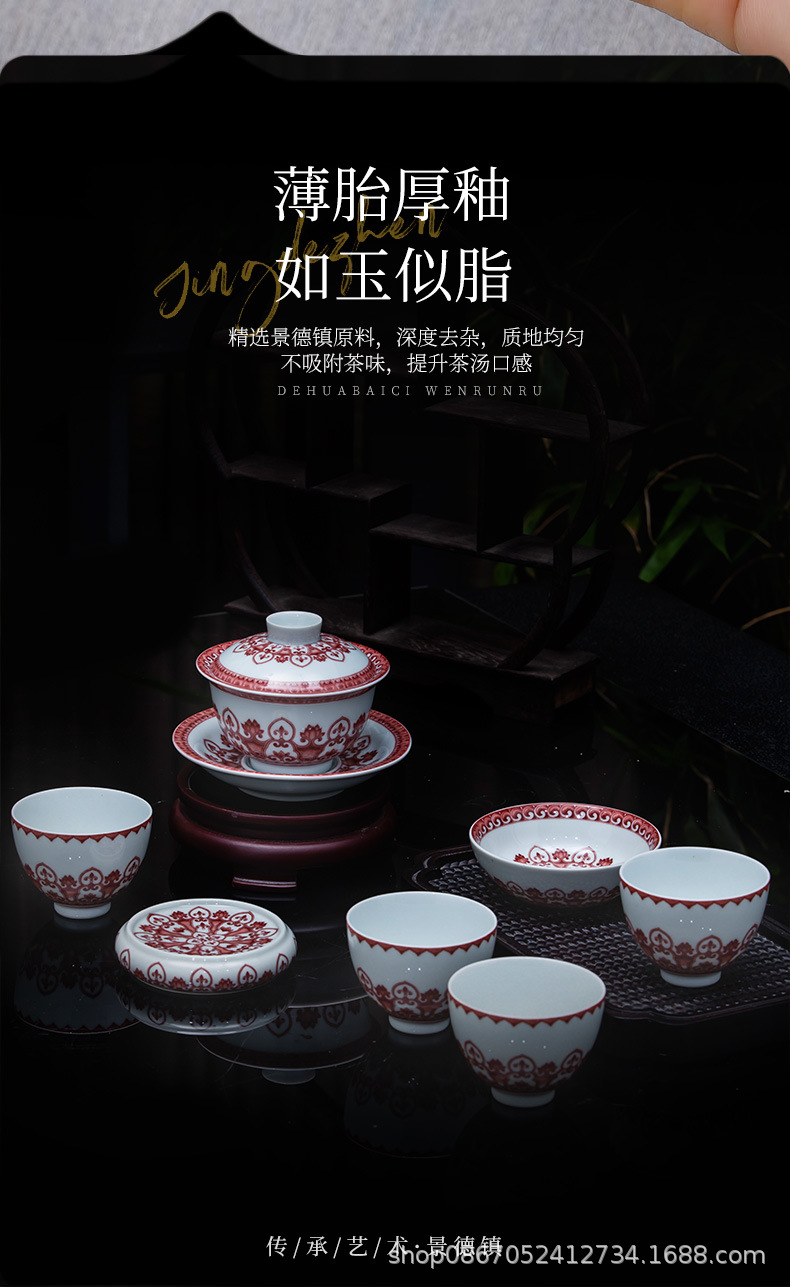 景德镇釉里红宝象手工仿古功夫茶具批发礼品三才盖碗高端不烫手